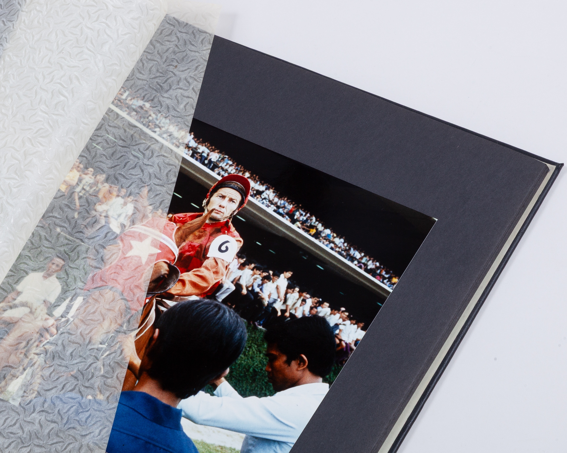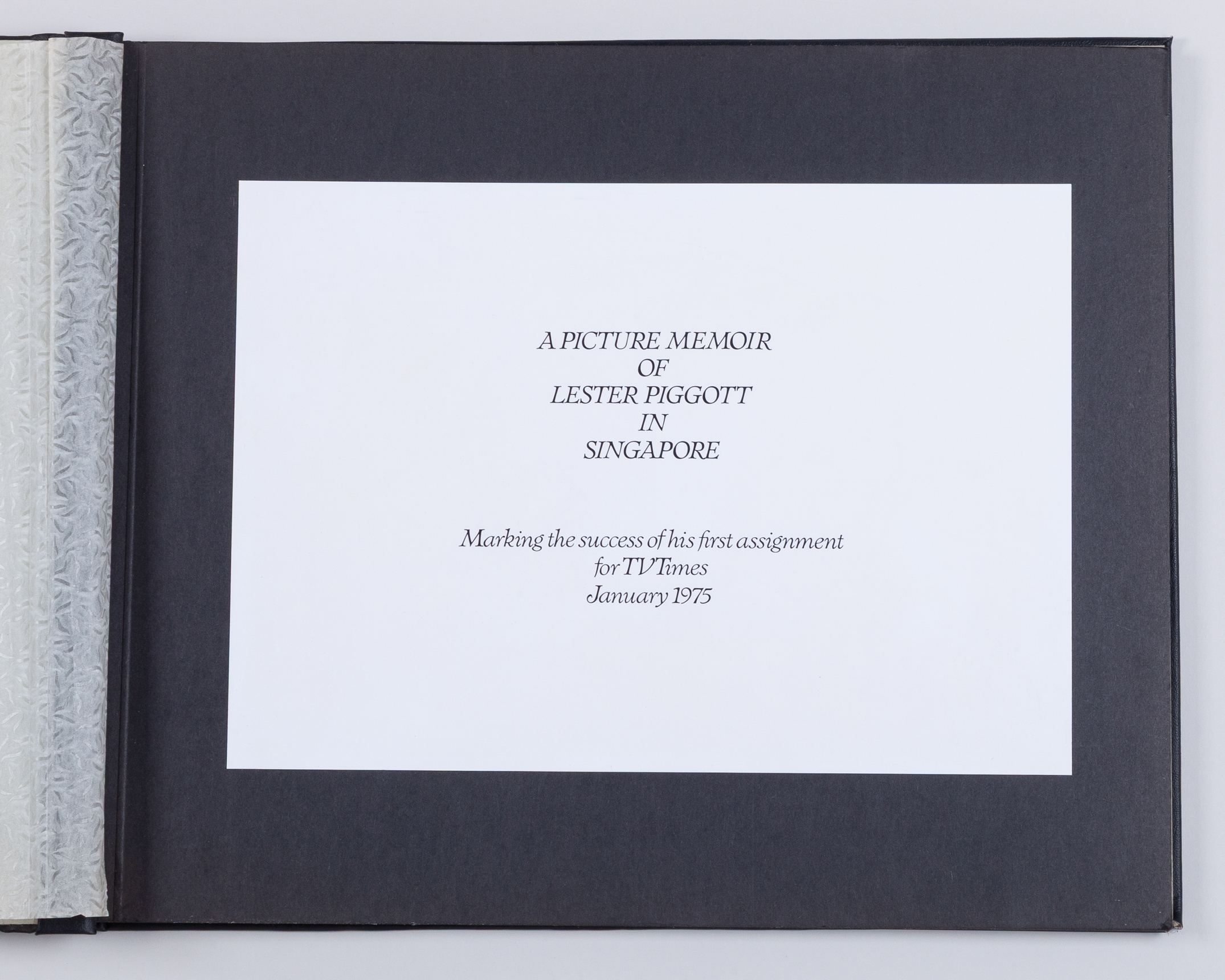 produced privately by TV Times magazine for Lester Piggott who covered the jockey's tour of Singapore for the publication, a series of high quality photographs featuring Lester at the races and during down time, in a black Rexine A1 size album