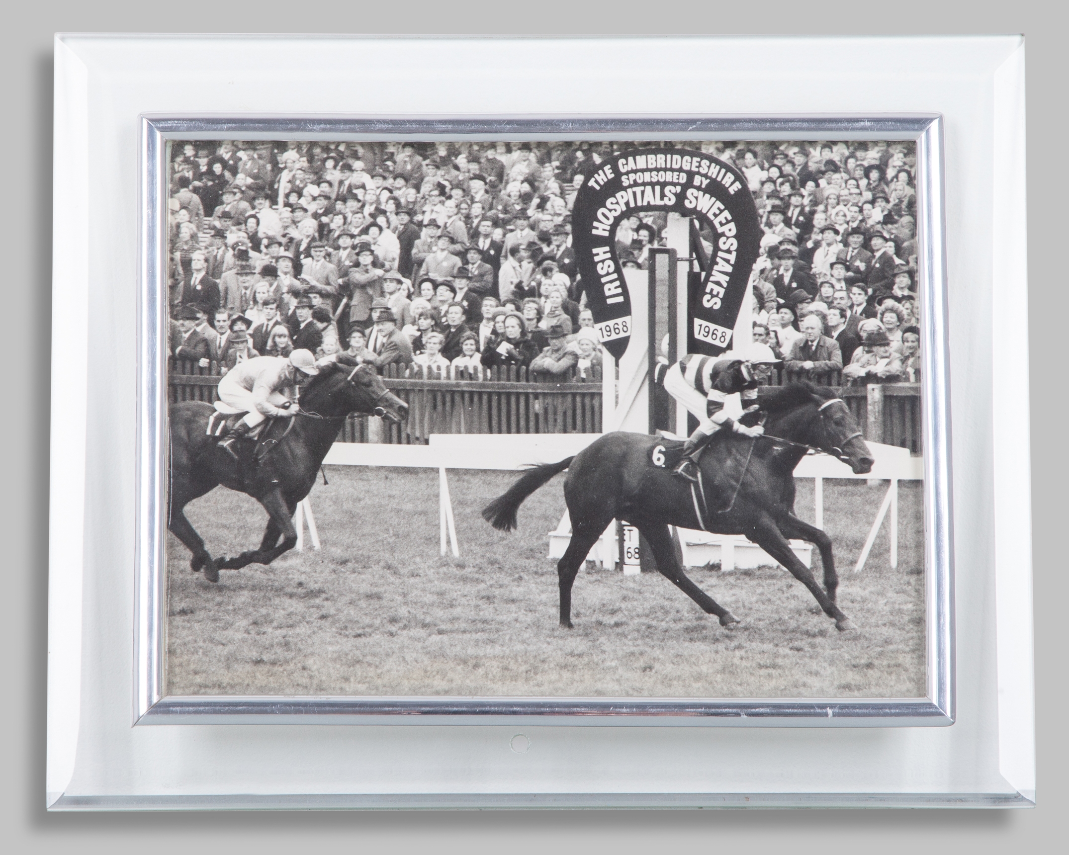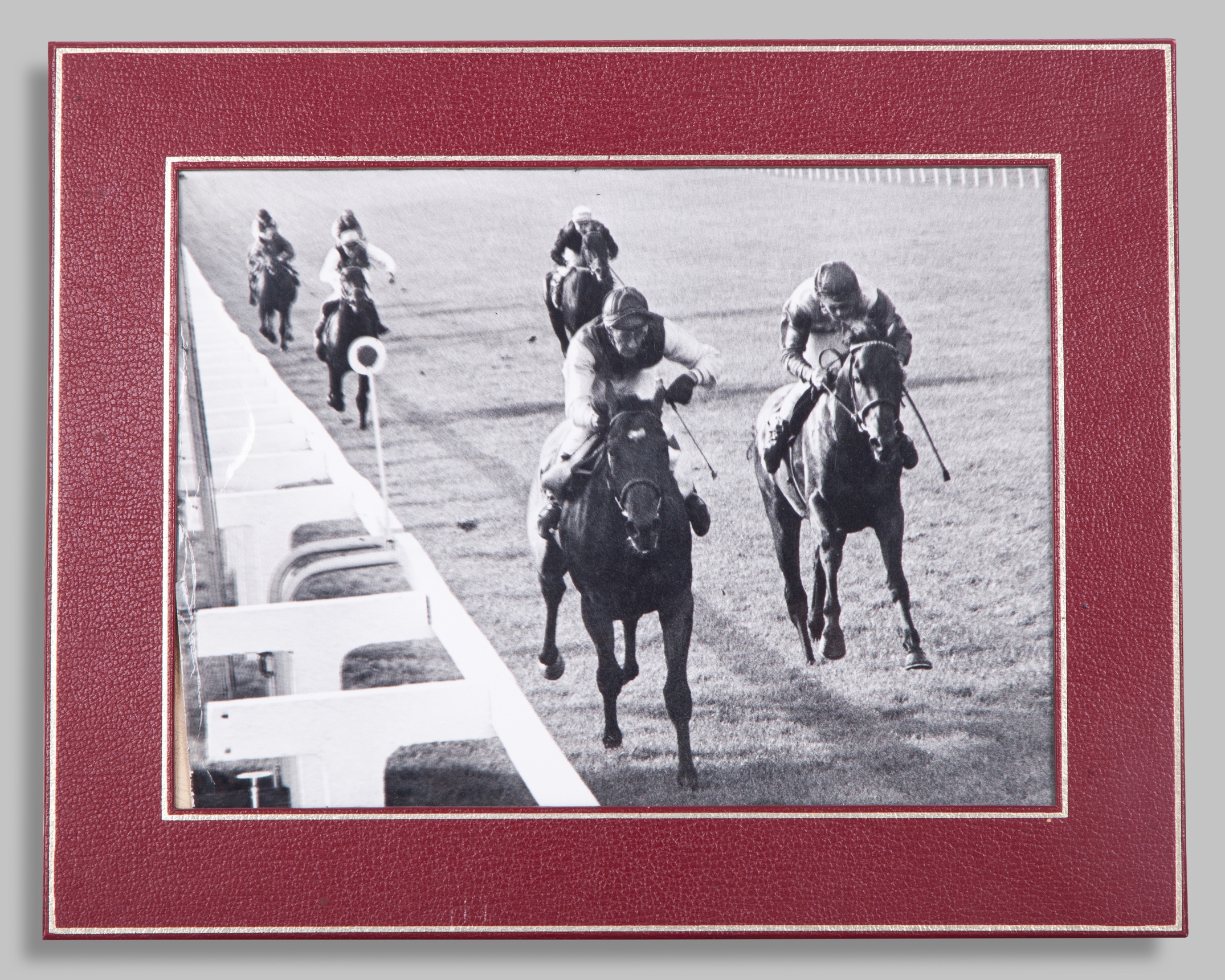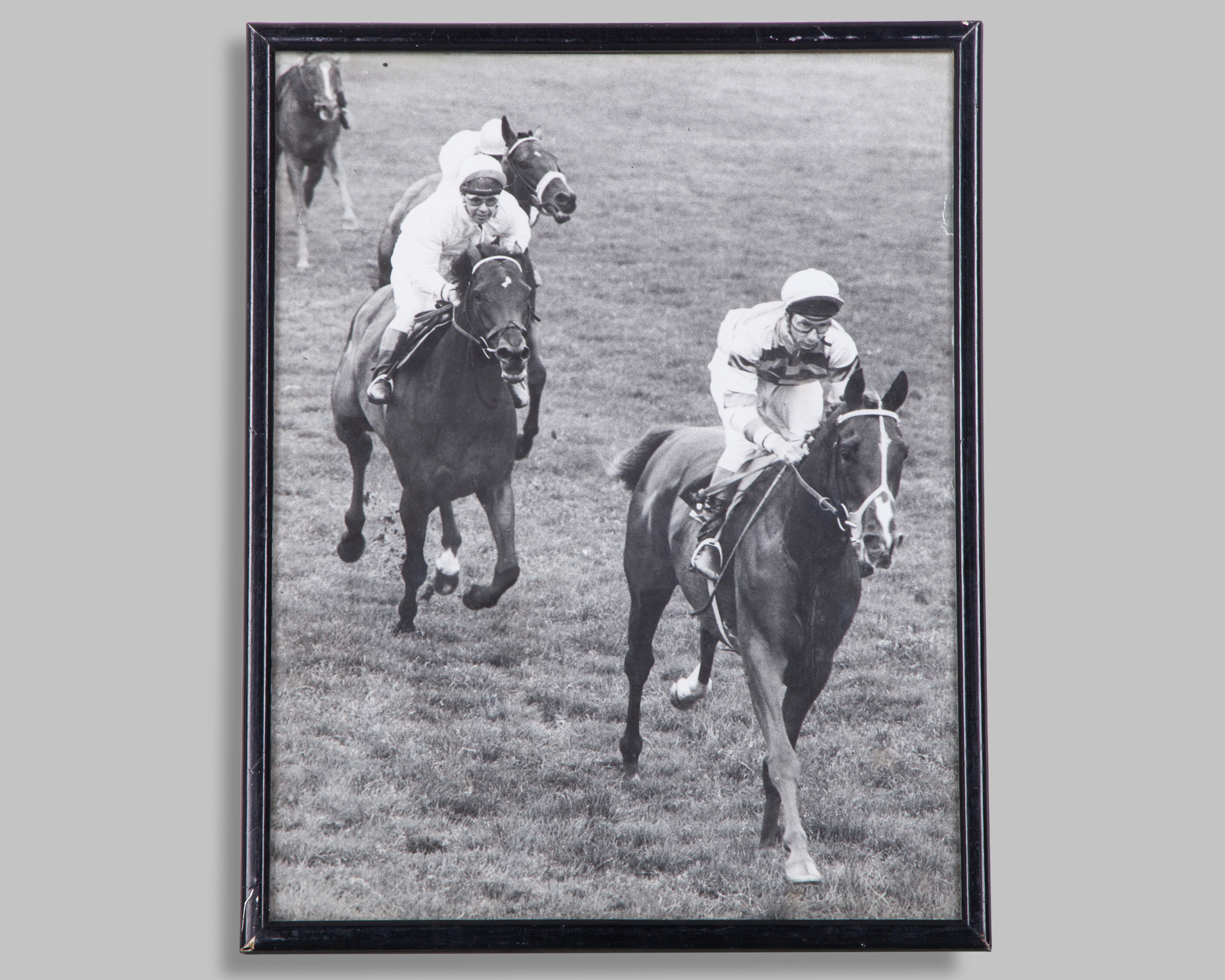 Group of twelve framed b&w photographs of the jockey Lester Piggott,