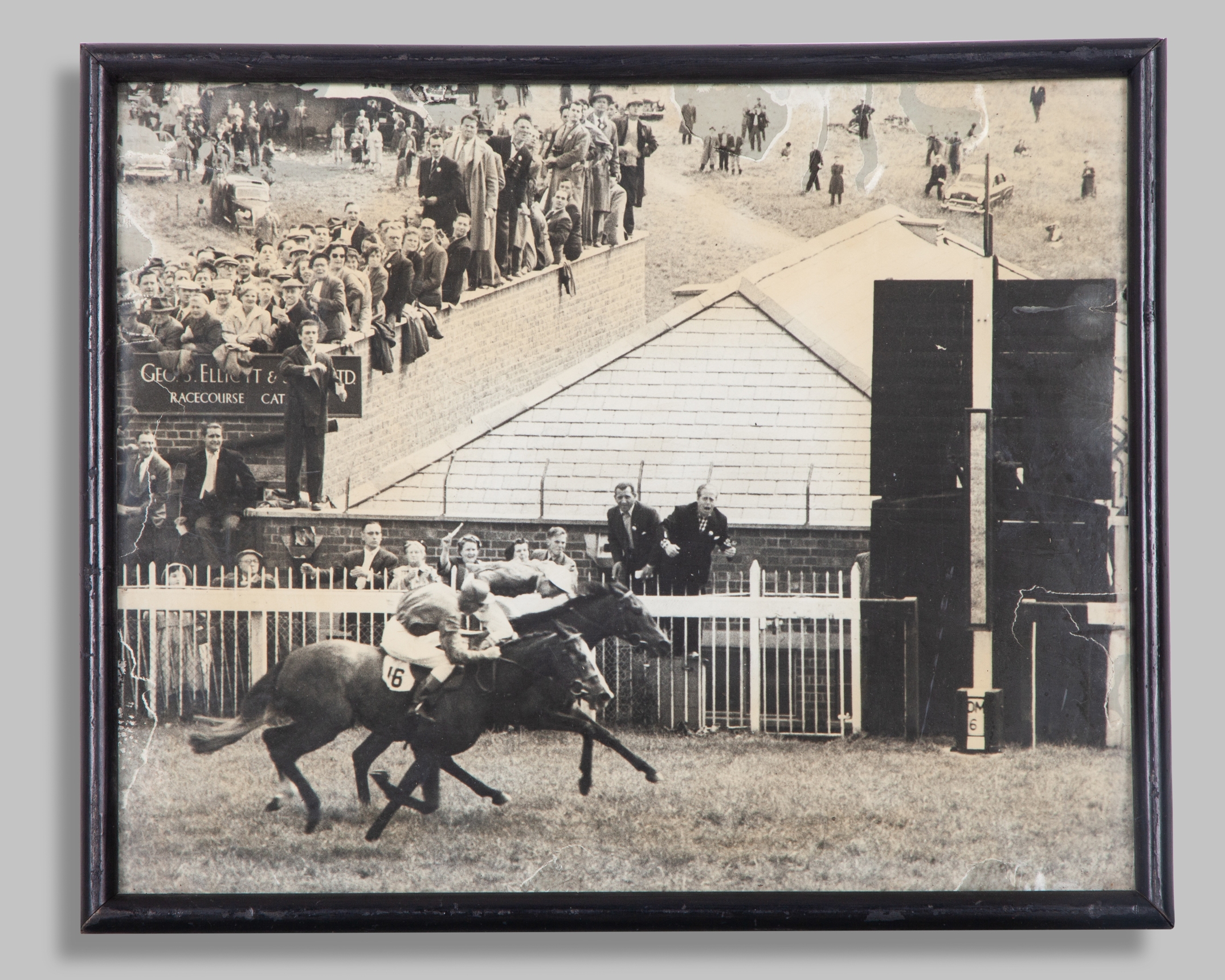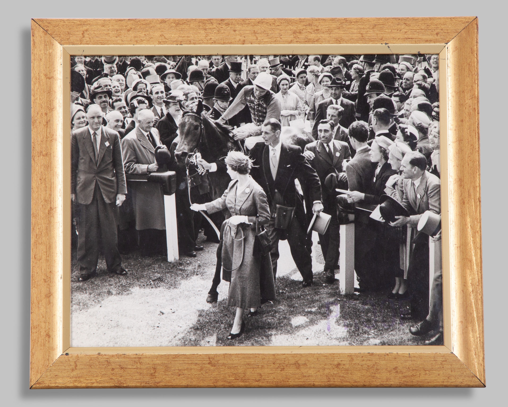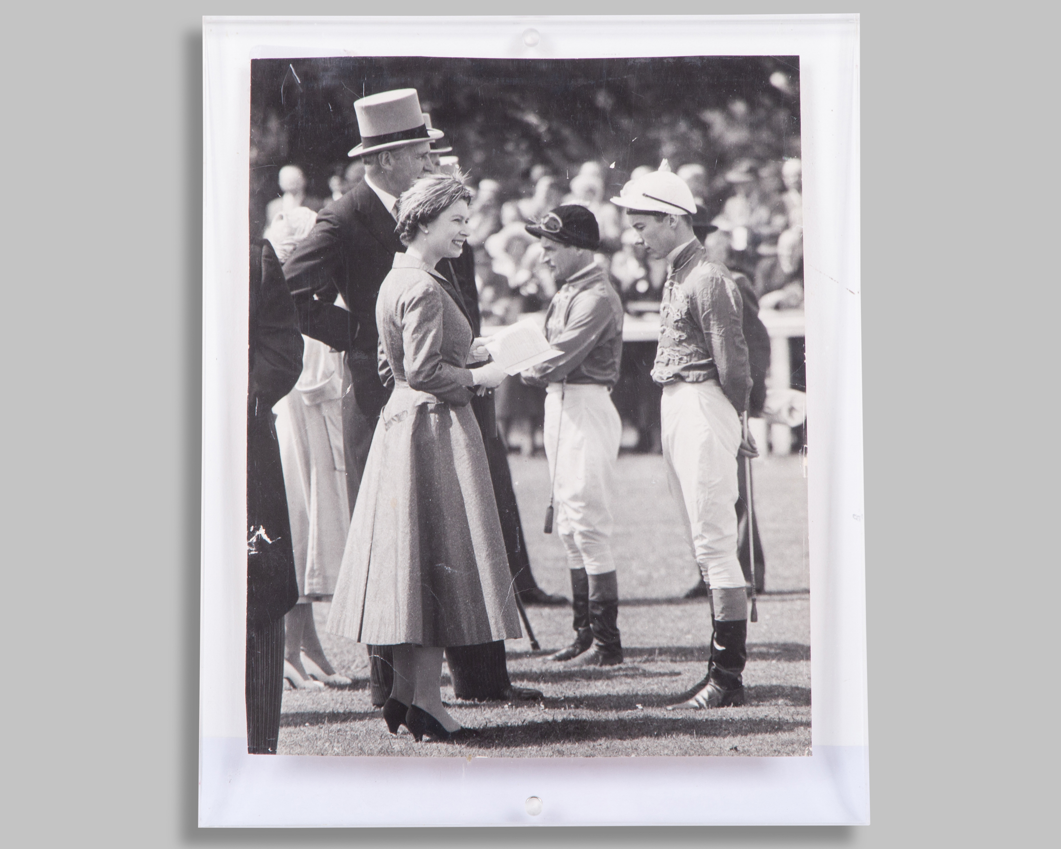 Group of twelve framed b&w photographs of the jockey Lester Piggott,