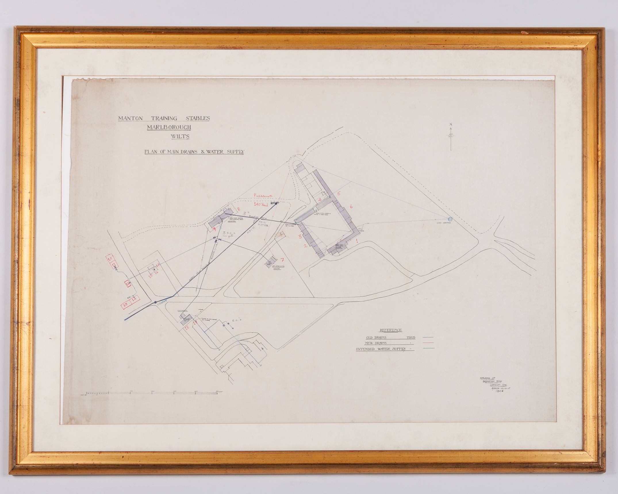 A blueprints and two architectural drawings for the historic Manton Down racing stables