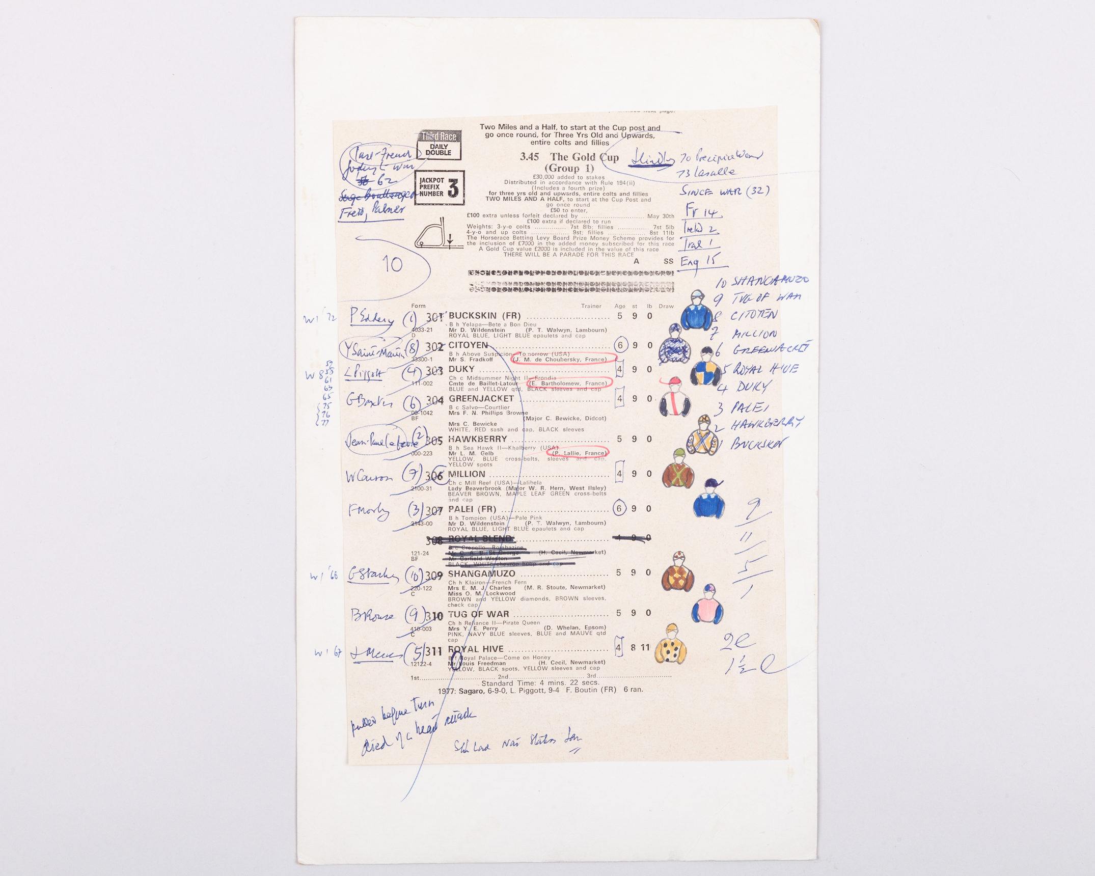 Sir Peter O'Sullevan 1978 Ascot Gold Cup broadcast commentary card