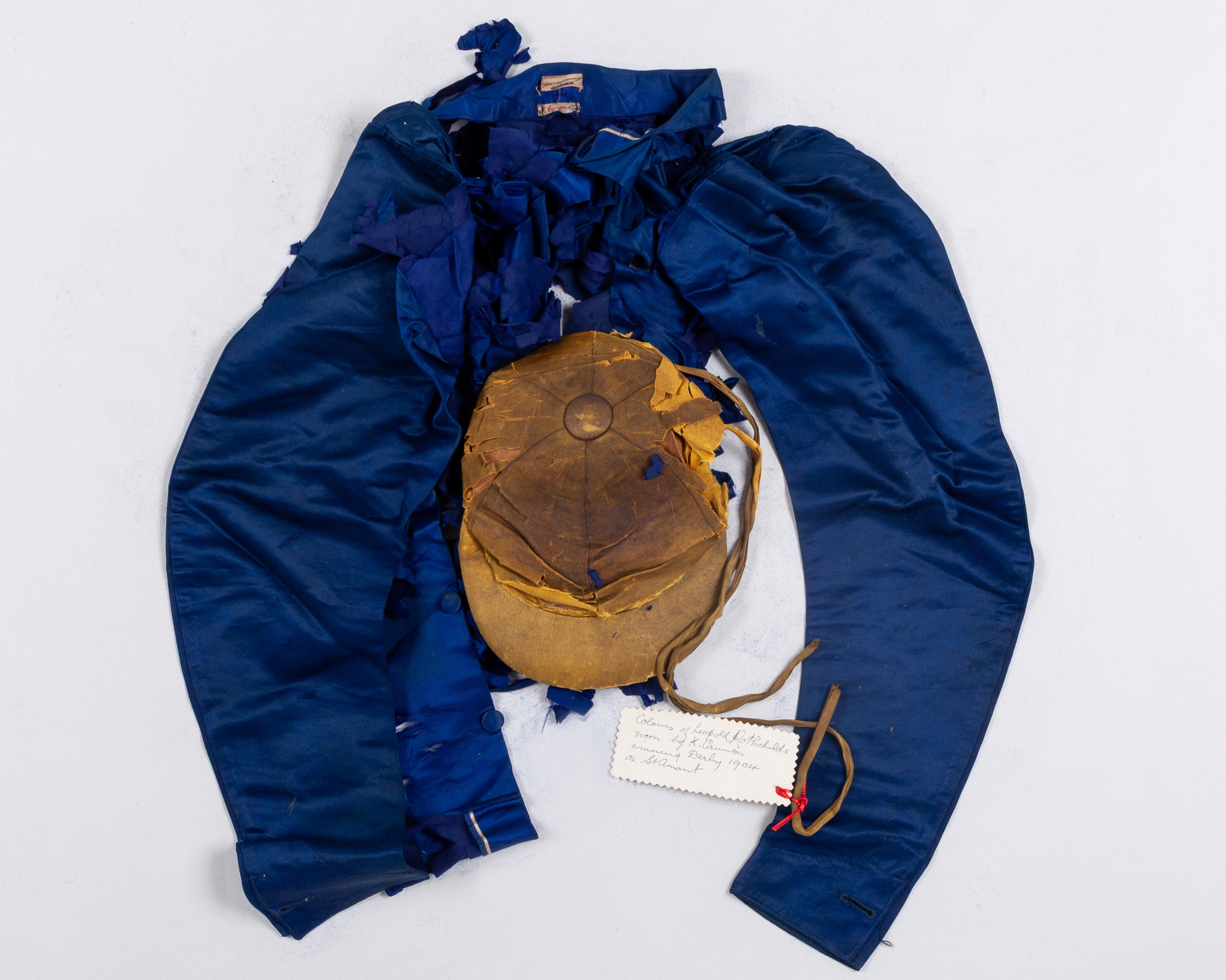 The racing colours of Leopold de Rothschild worn by the jockey Kempton Cannnon when winning the 1904 Epsom Derby on St. Amant,