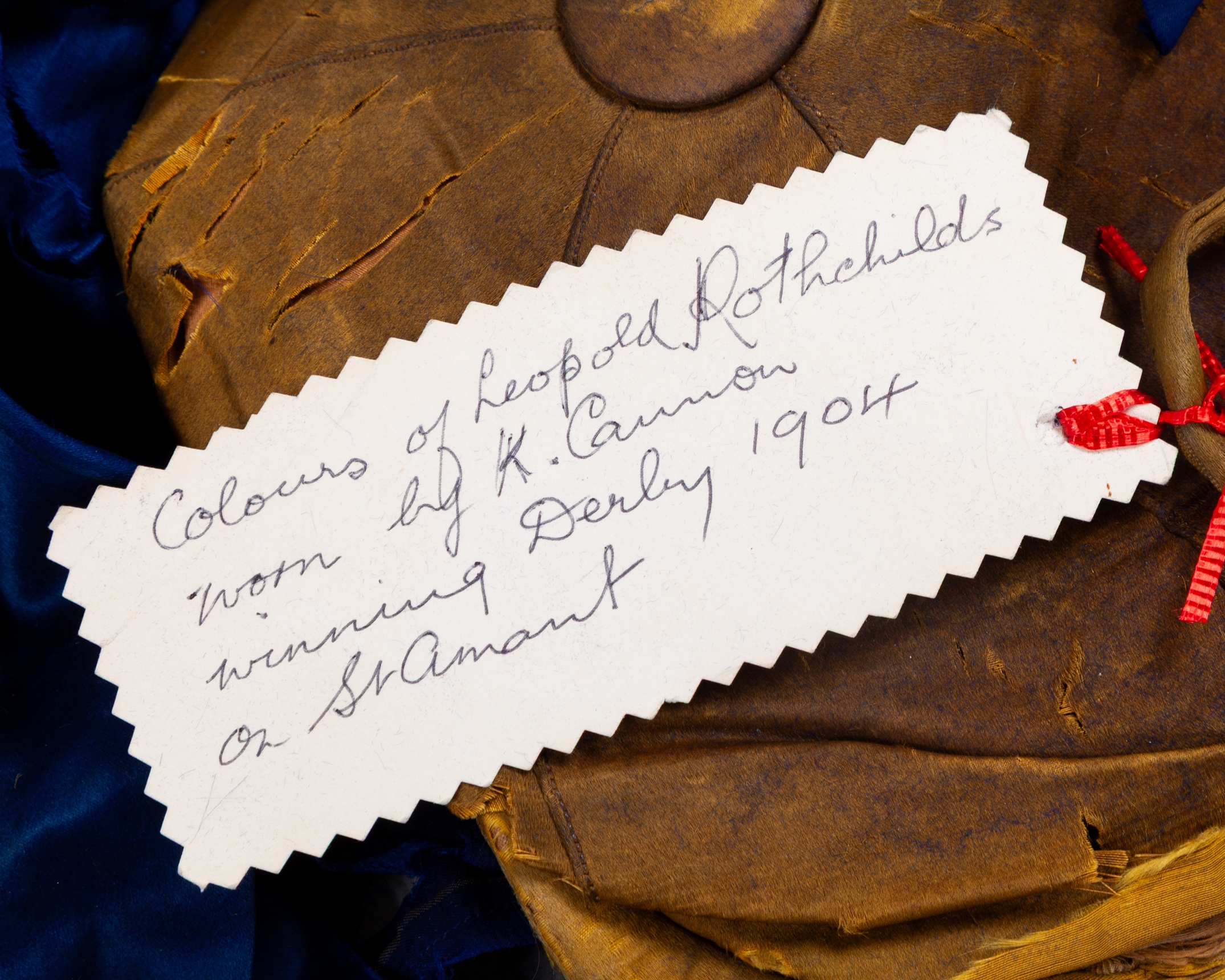Leopold de Rothschild 1904 Epsom Derby winning silks worn by Kempton Cannon on St. Amant