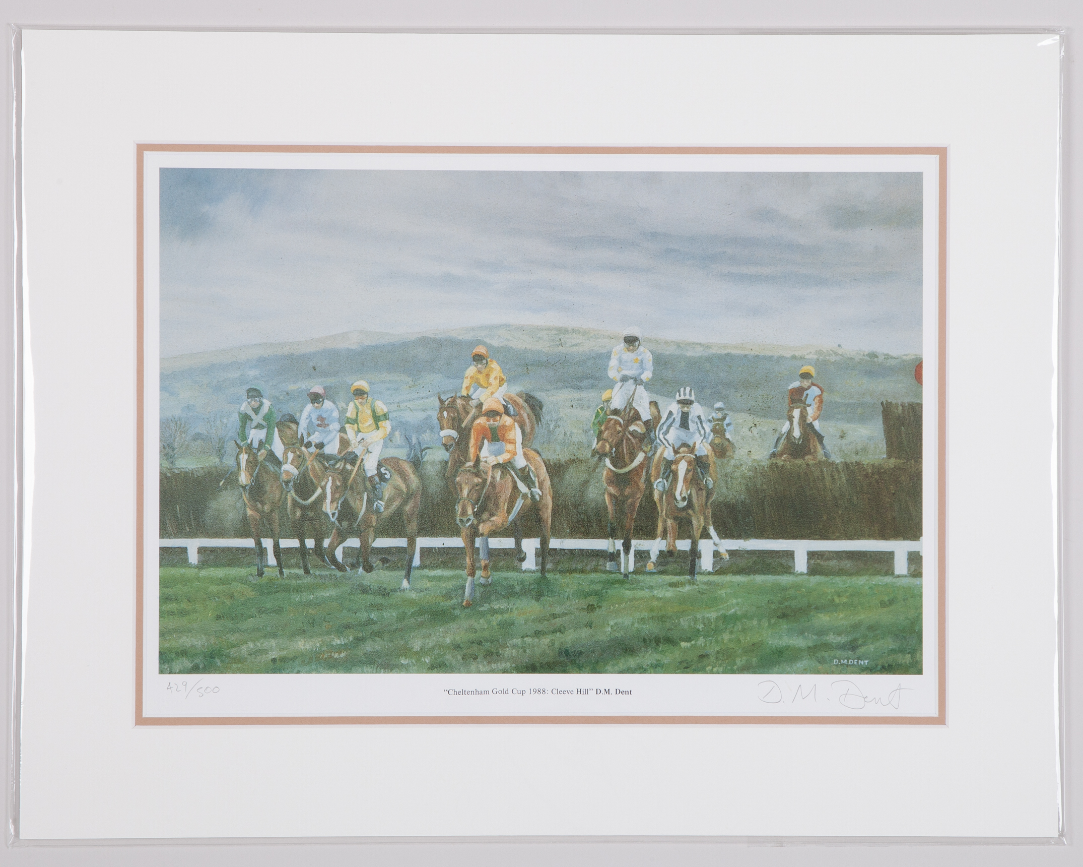 A trio of limited edition Cheltenham steeplechase prints by David Dent (British, b.1959)
