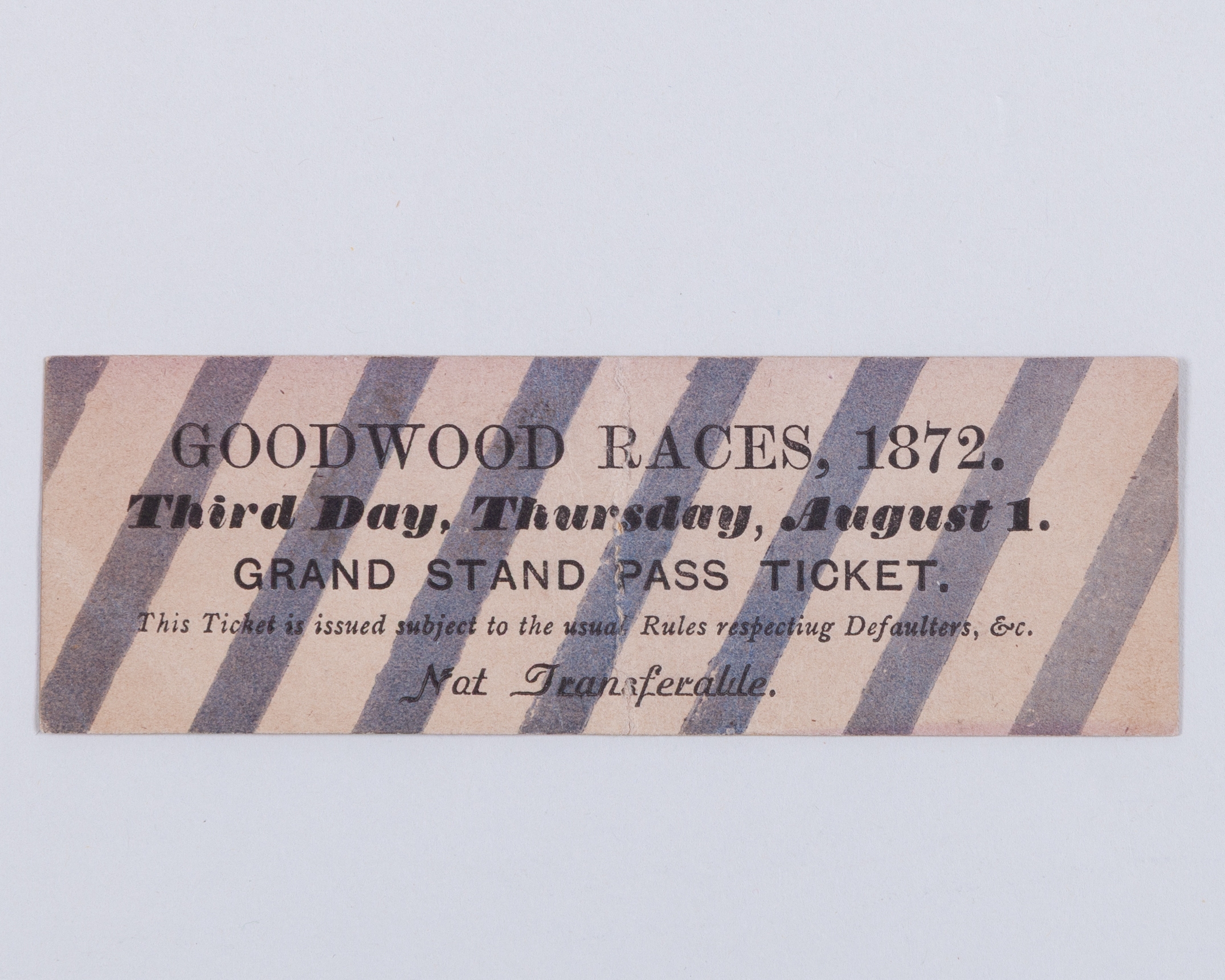 A ticket for Goodwood Races 1st August 1872 the day the Derby winner Favonius won the Goodwood Cup as a four-year-old,