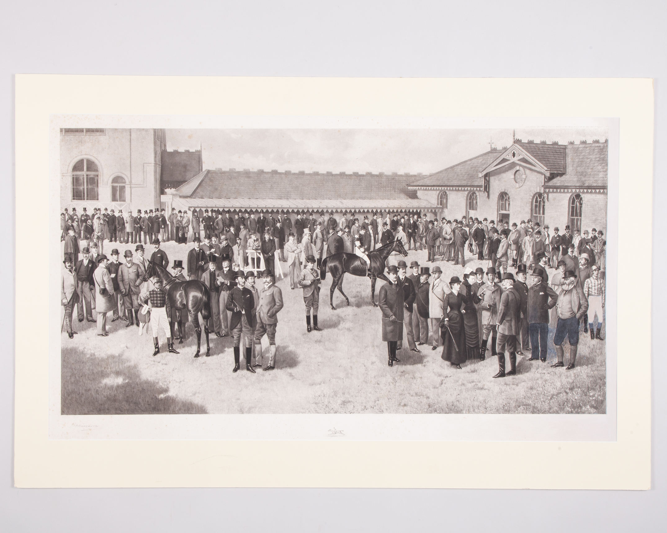 signed, photogravure, large panorama of Victorian horse racing personalities, 73 by 113cm., mounted ready for framing; sold with a key identifying the subjects (2)