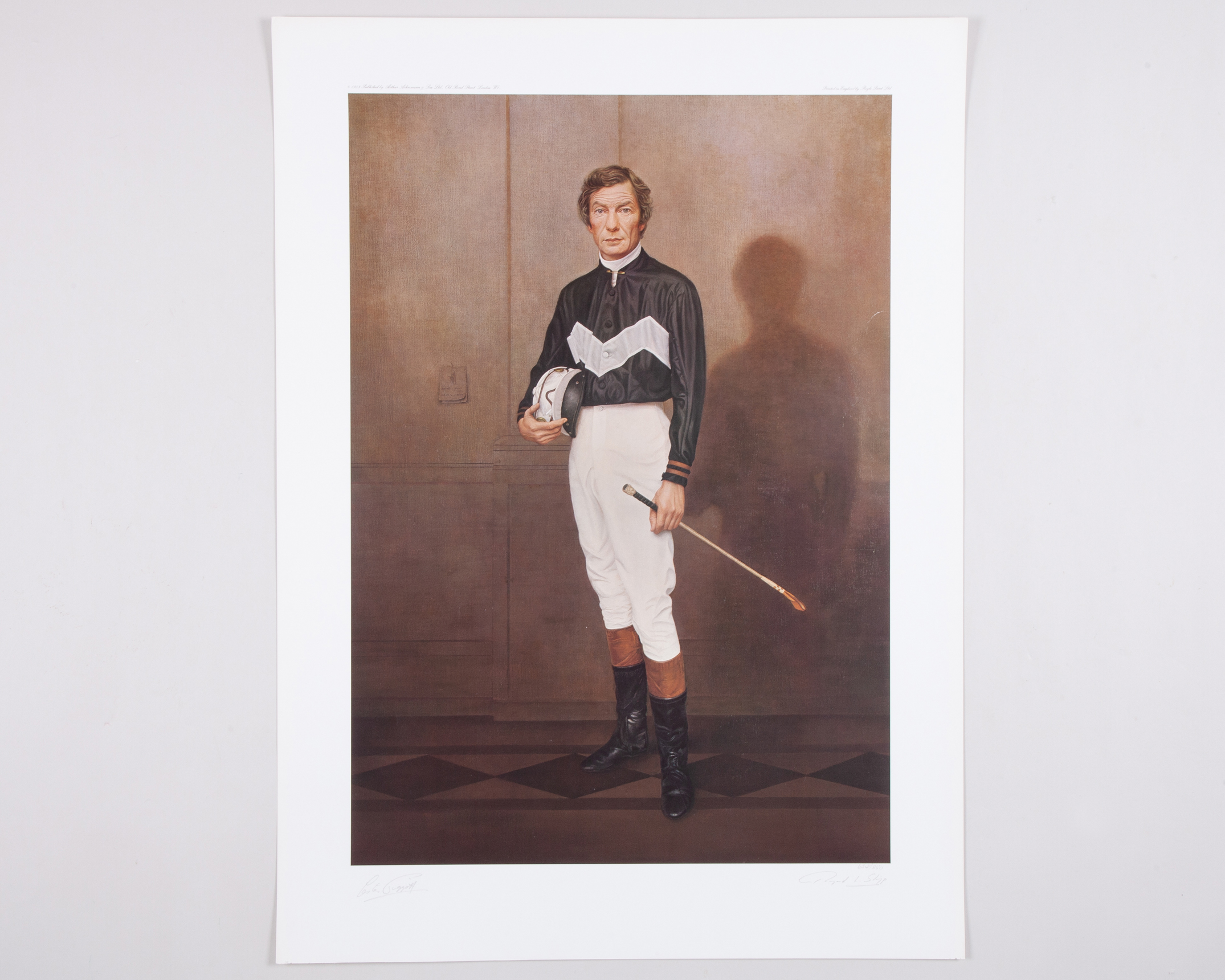 Lester Piggott signed portrait print by the artist Raymond L. Skipp,