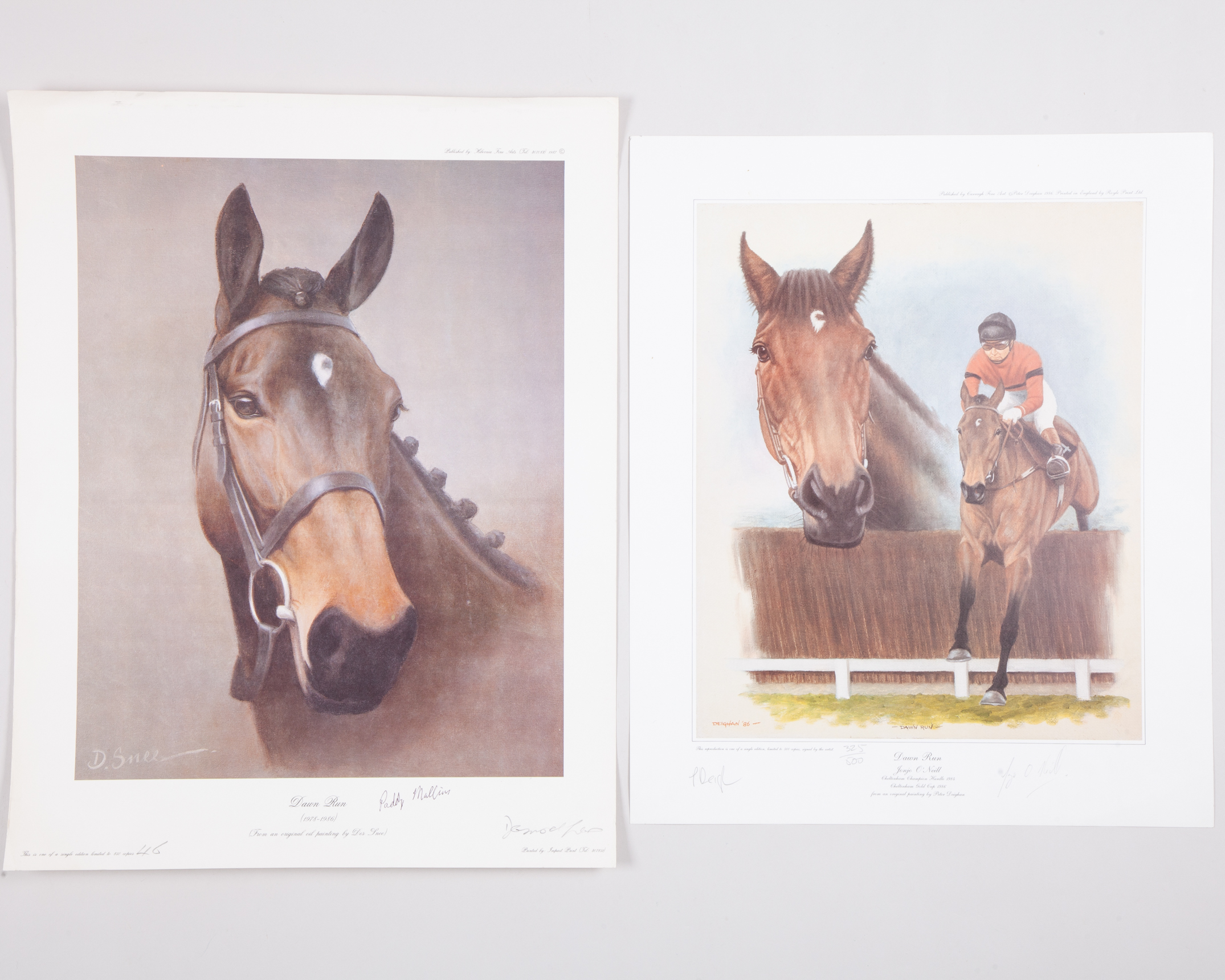 Paddy Mullins and Jonjo O'Neill signed prints of the racehorse Dawn Run,