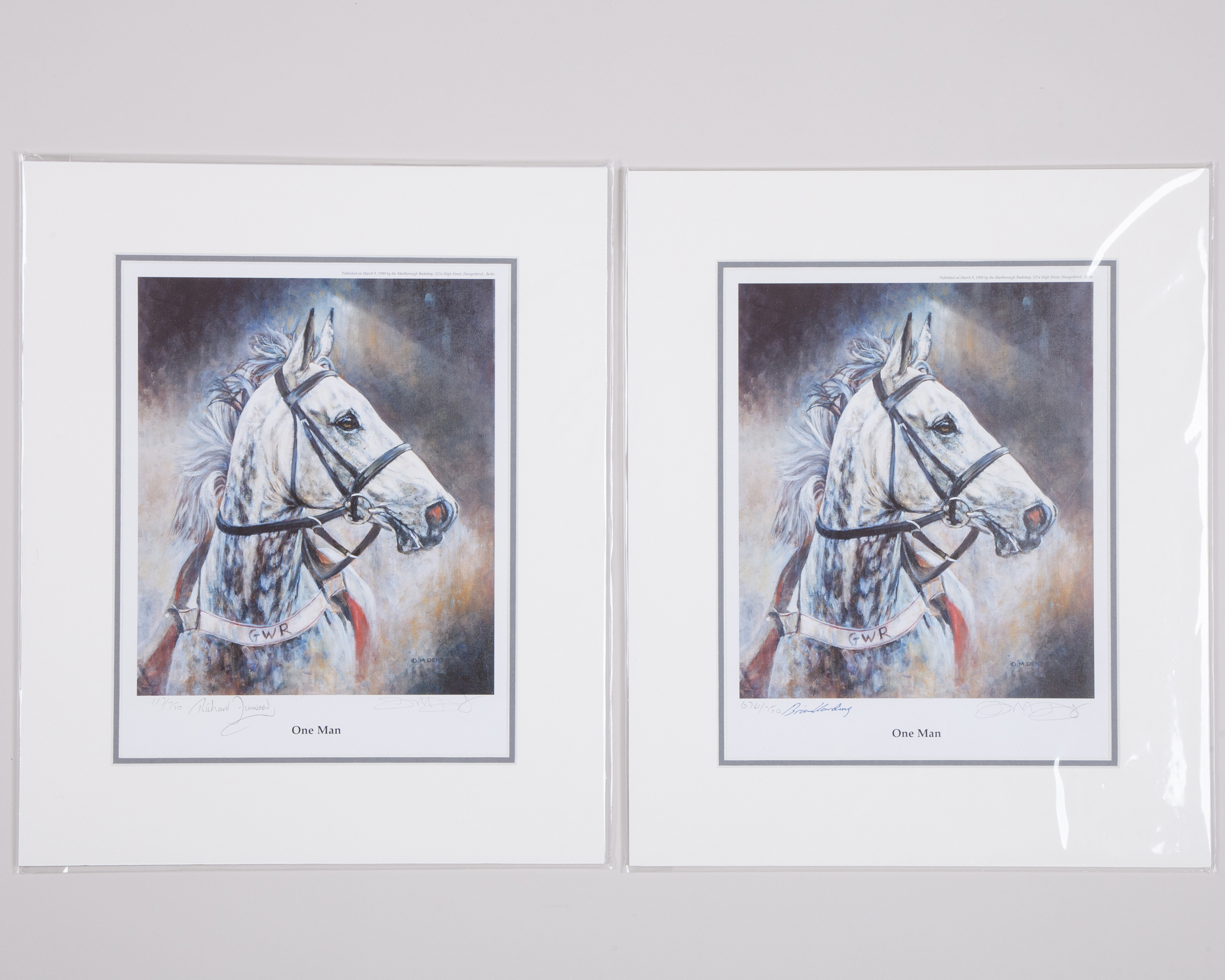 A Richard Dunwoody and Brian Harding signed pair of limited edition One Man prints by David Dent (British, b.1959),