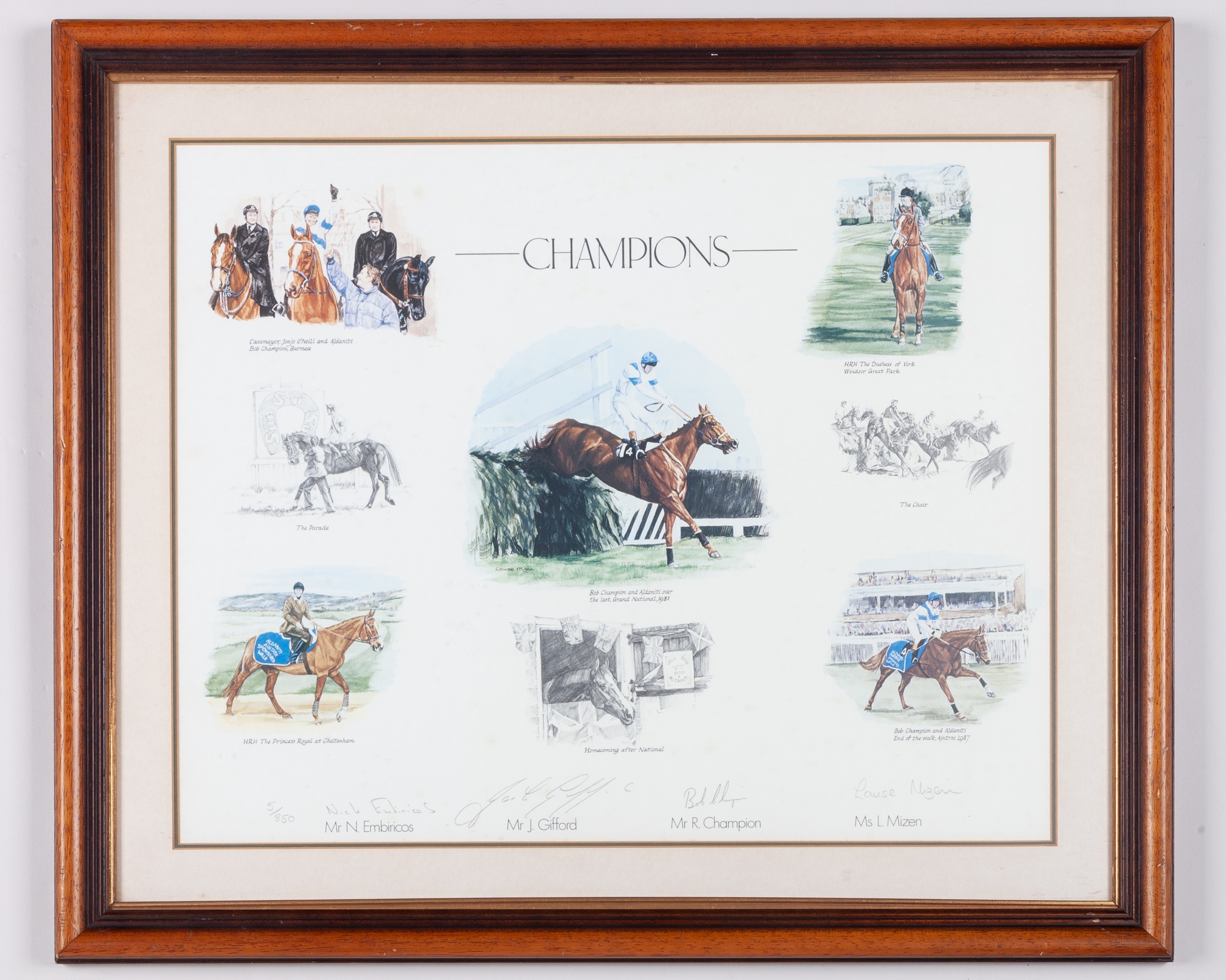 Multi-signed Aldaniti limited edition print by Louise Mizen (b.1961) titled ‘Champions’