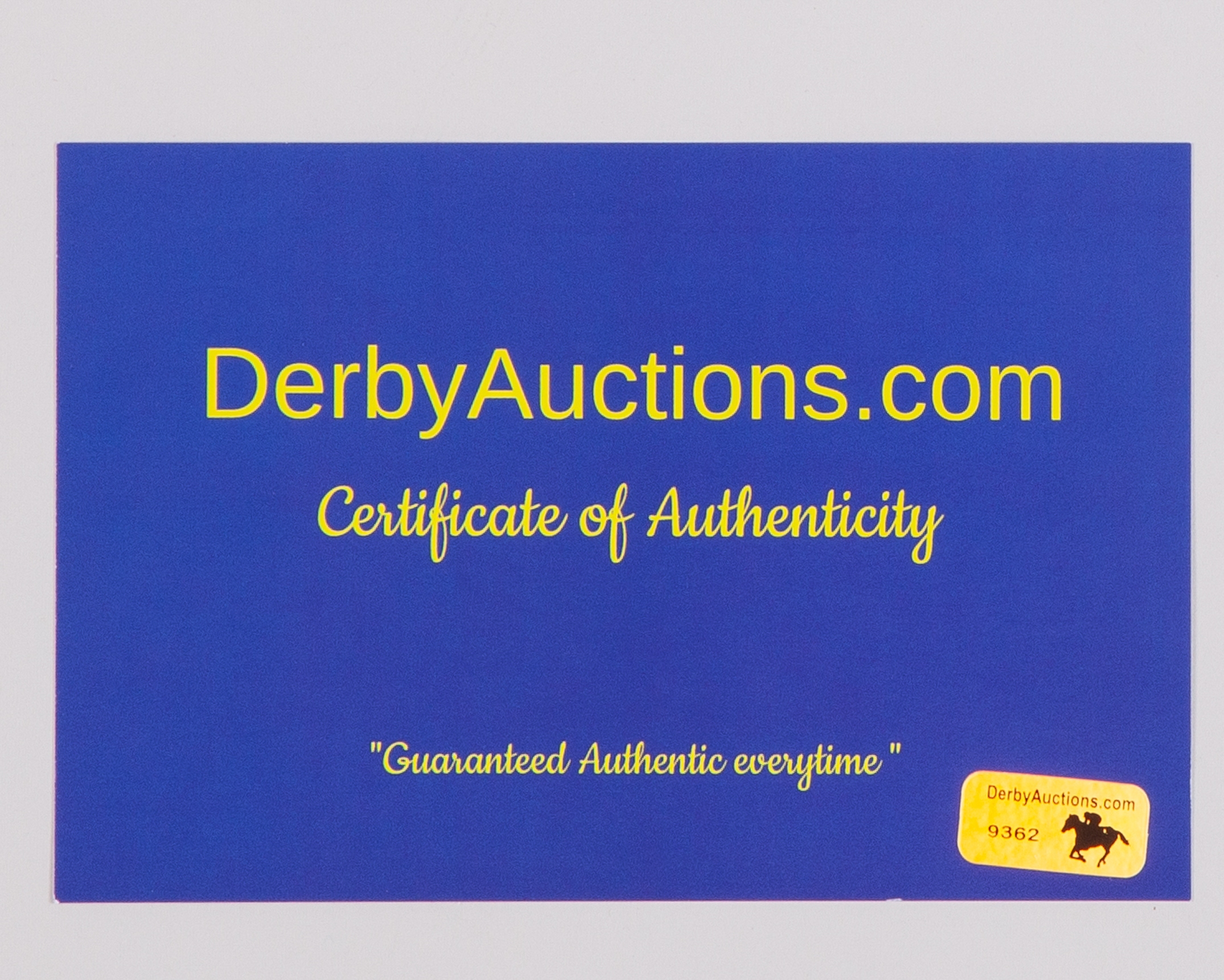 Black & white photo of Triple Crown winner Secretariat signed by jockey Ron Turcotte