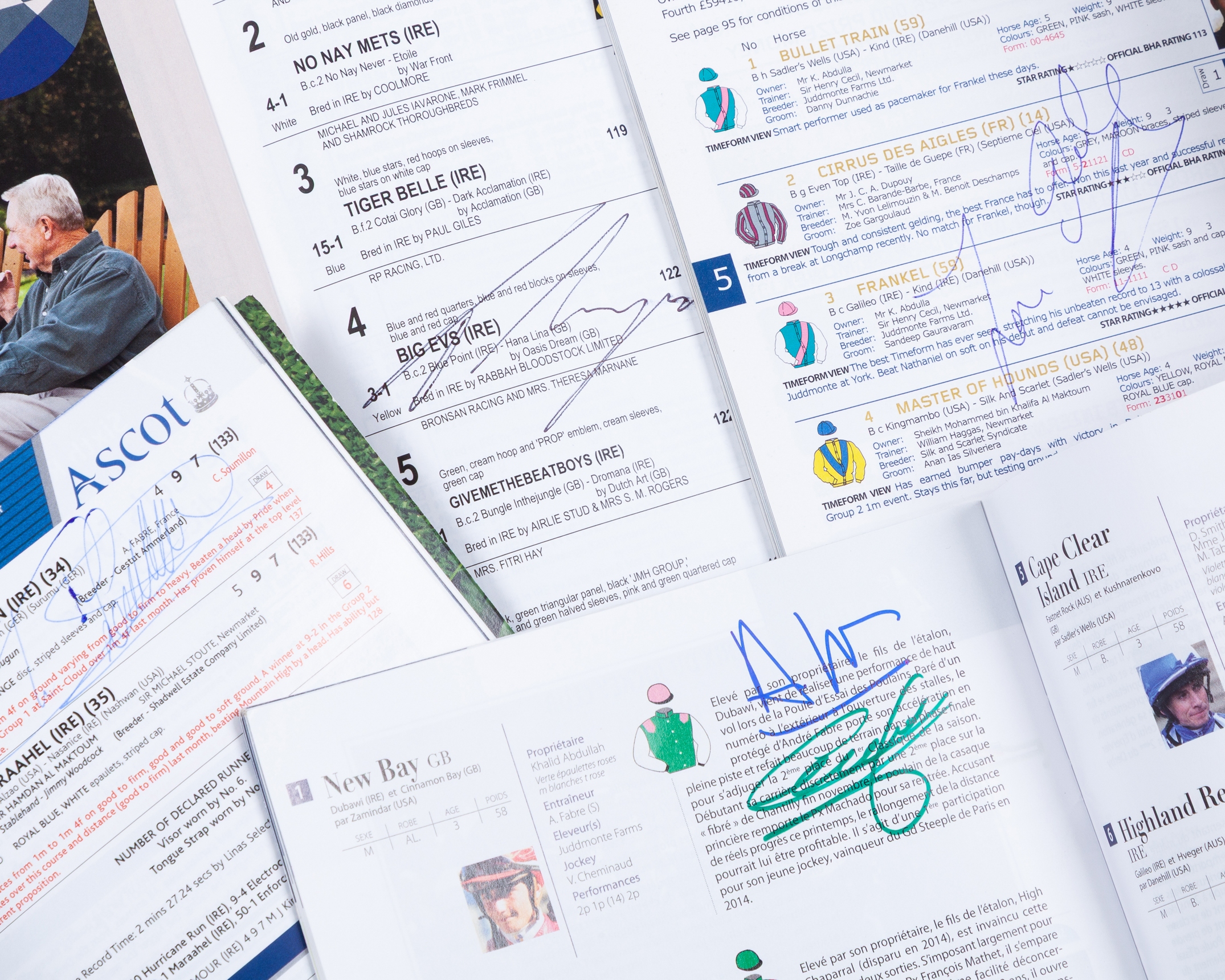 A good collection of nine autographed racecards signed by the winning jockeys/trainers