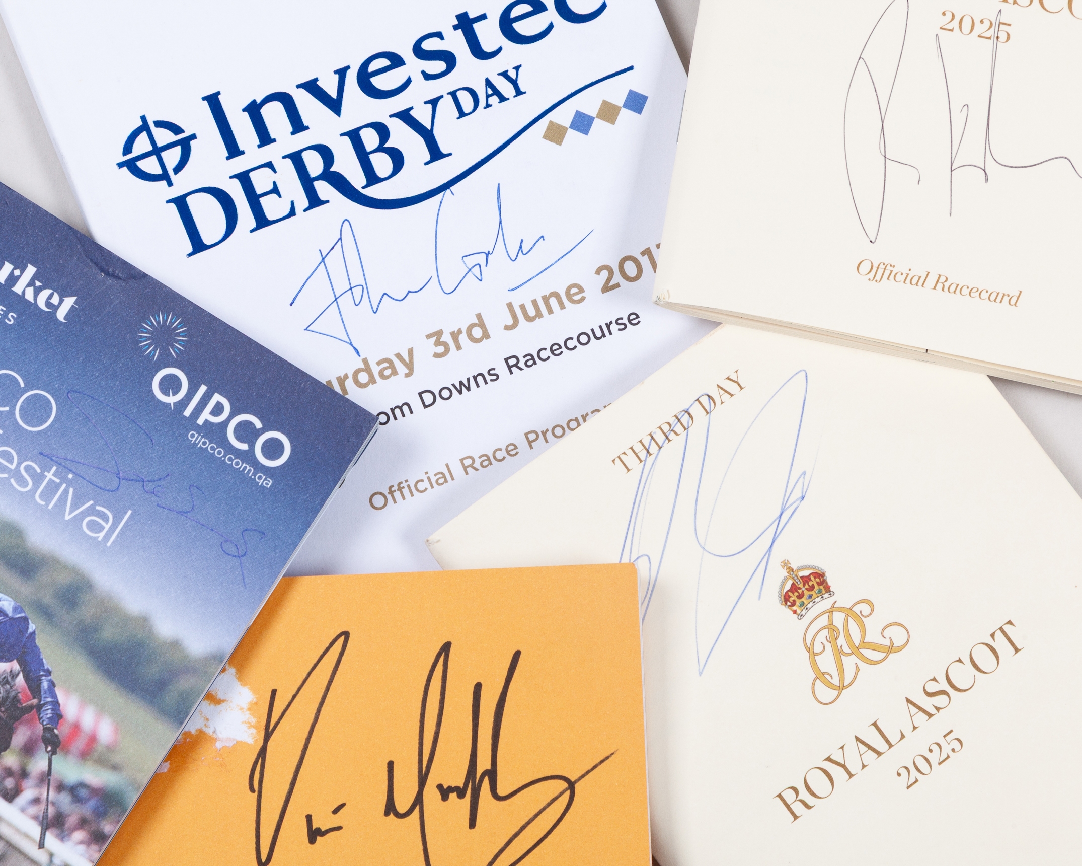 A good collection of nine autographed racecards signed by the winning jockeys/trainers,