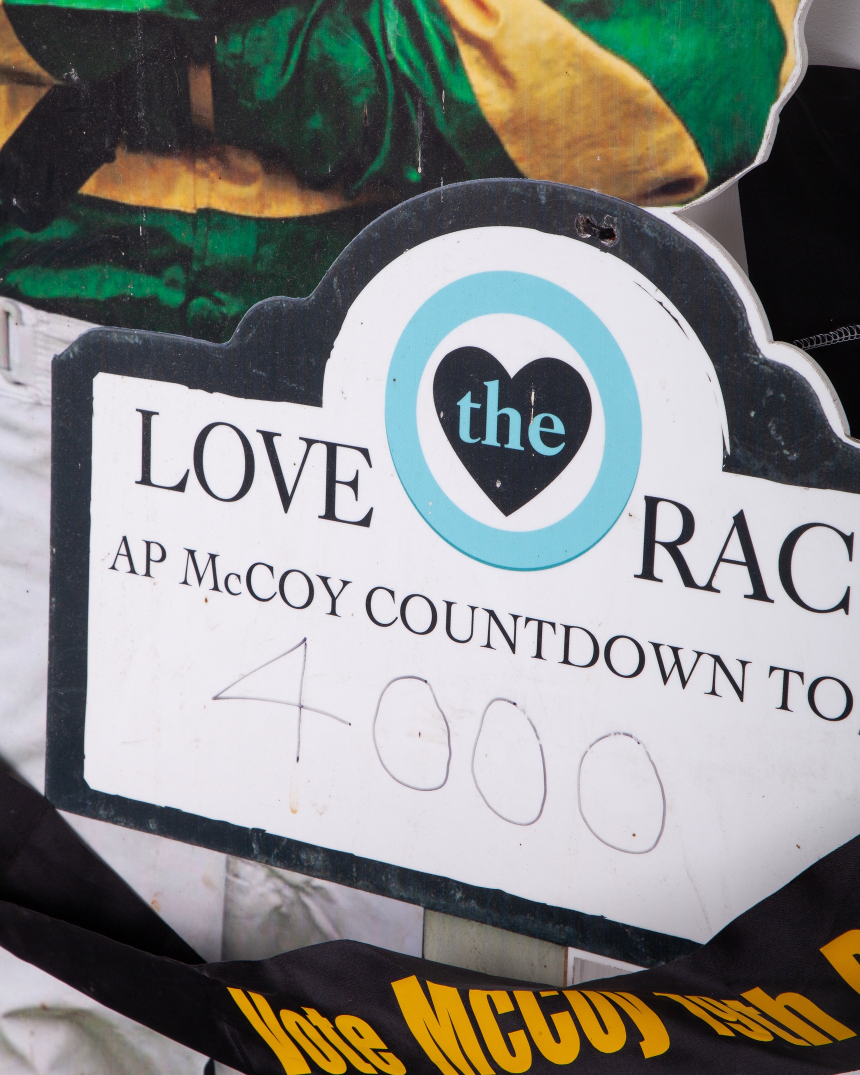Signed life-size cardboard cut-out of A P McCoy for the jockey's countdown to 4,000 winners