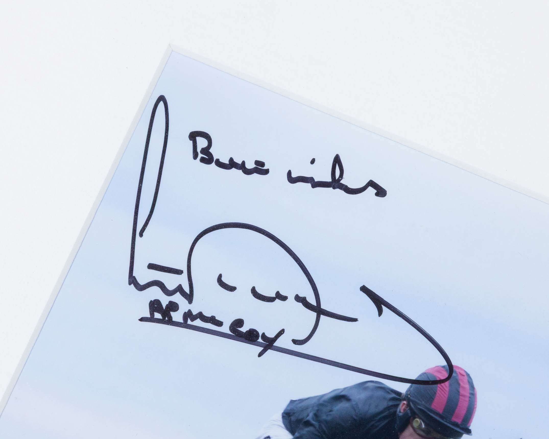 Two A P McCoy signed photo prints commemorating the fastest ever 100 winners,