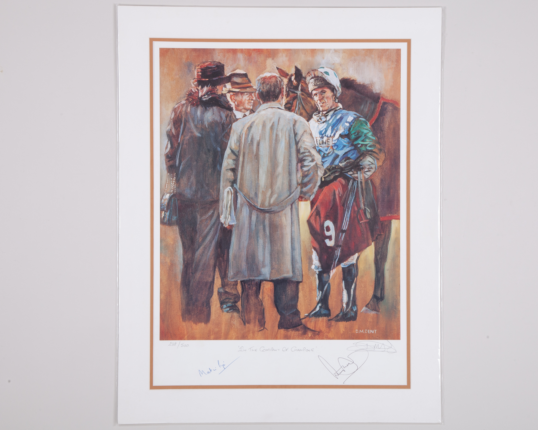 Two autographed horse racing prints by David Dent (British, b.1959),