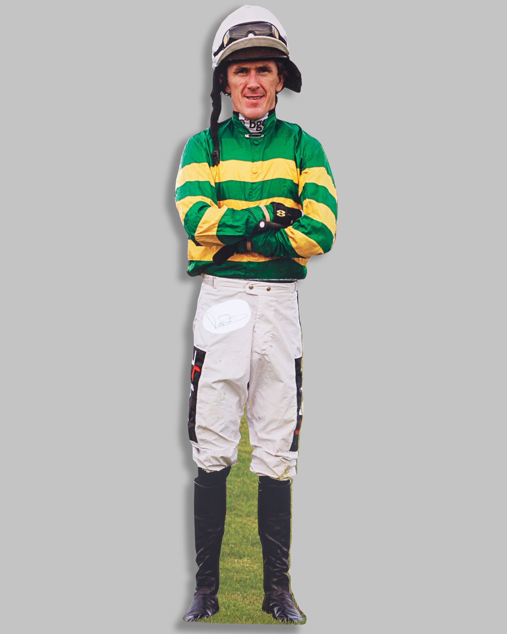 Lifesize cardboard cut-out of the jockey A P McCoy with applied autograph