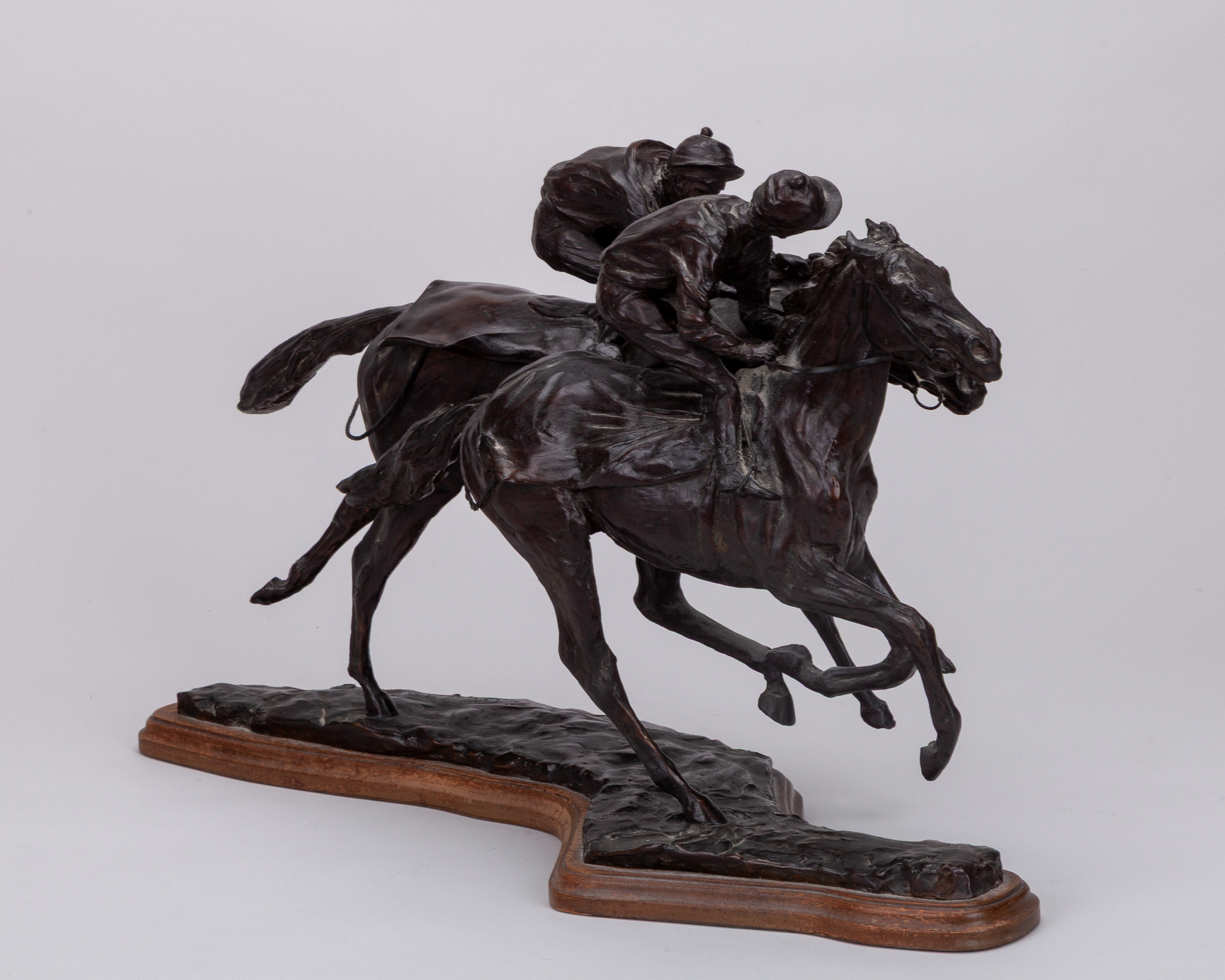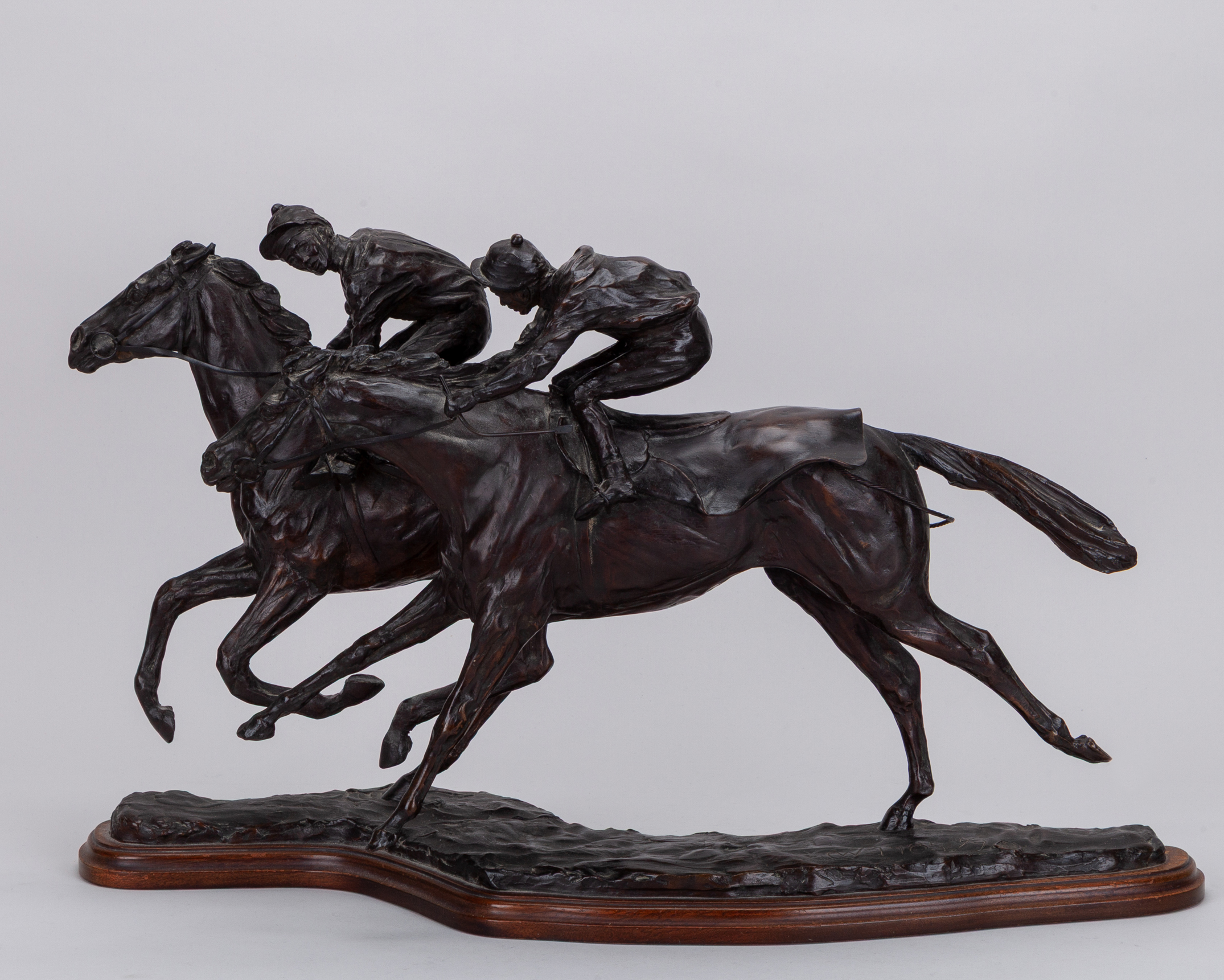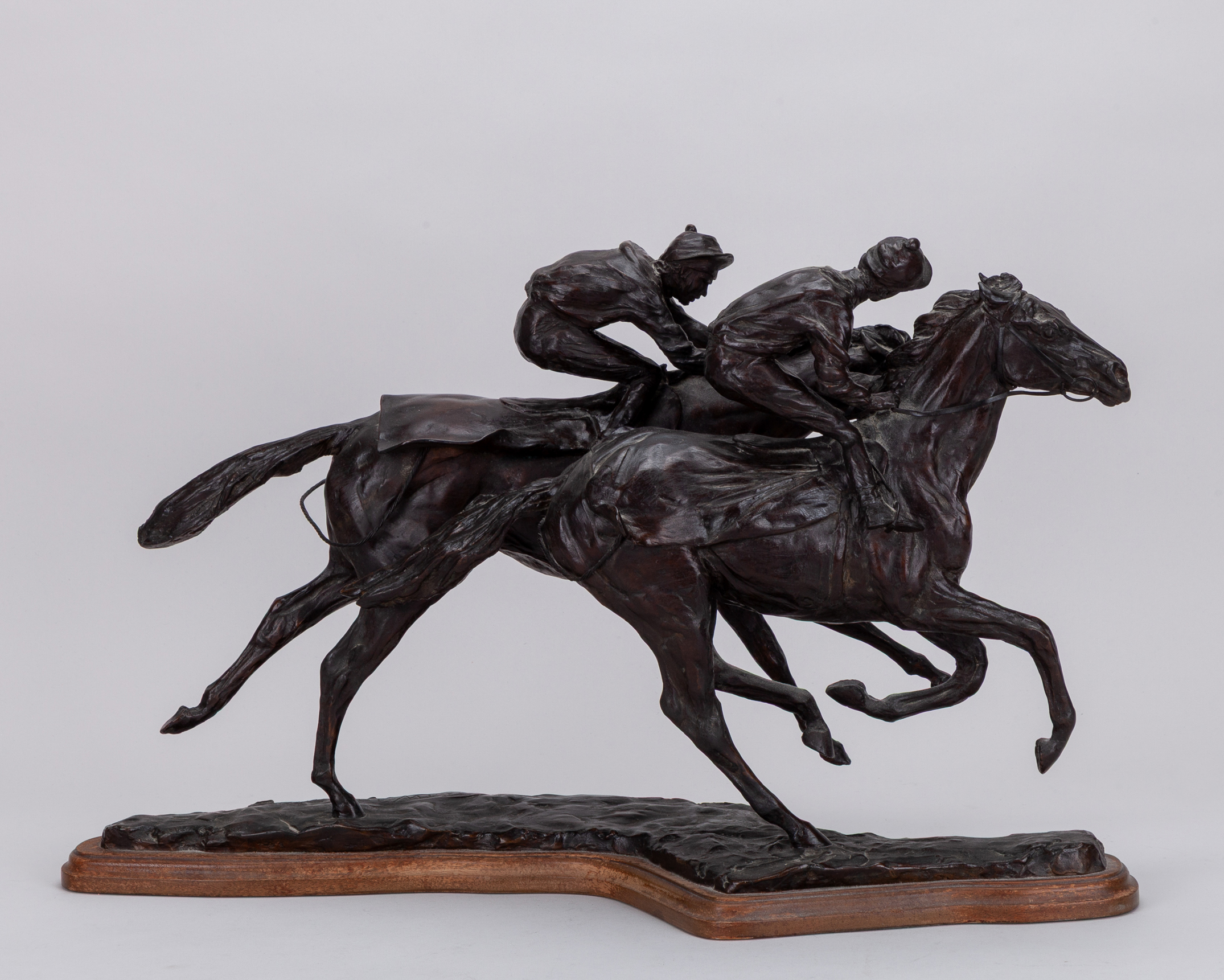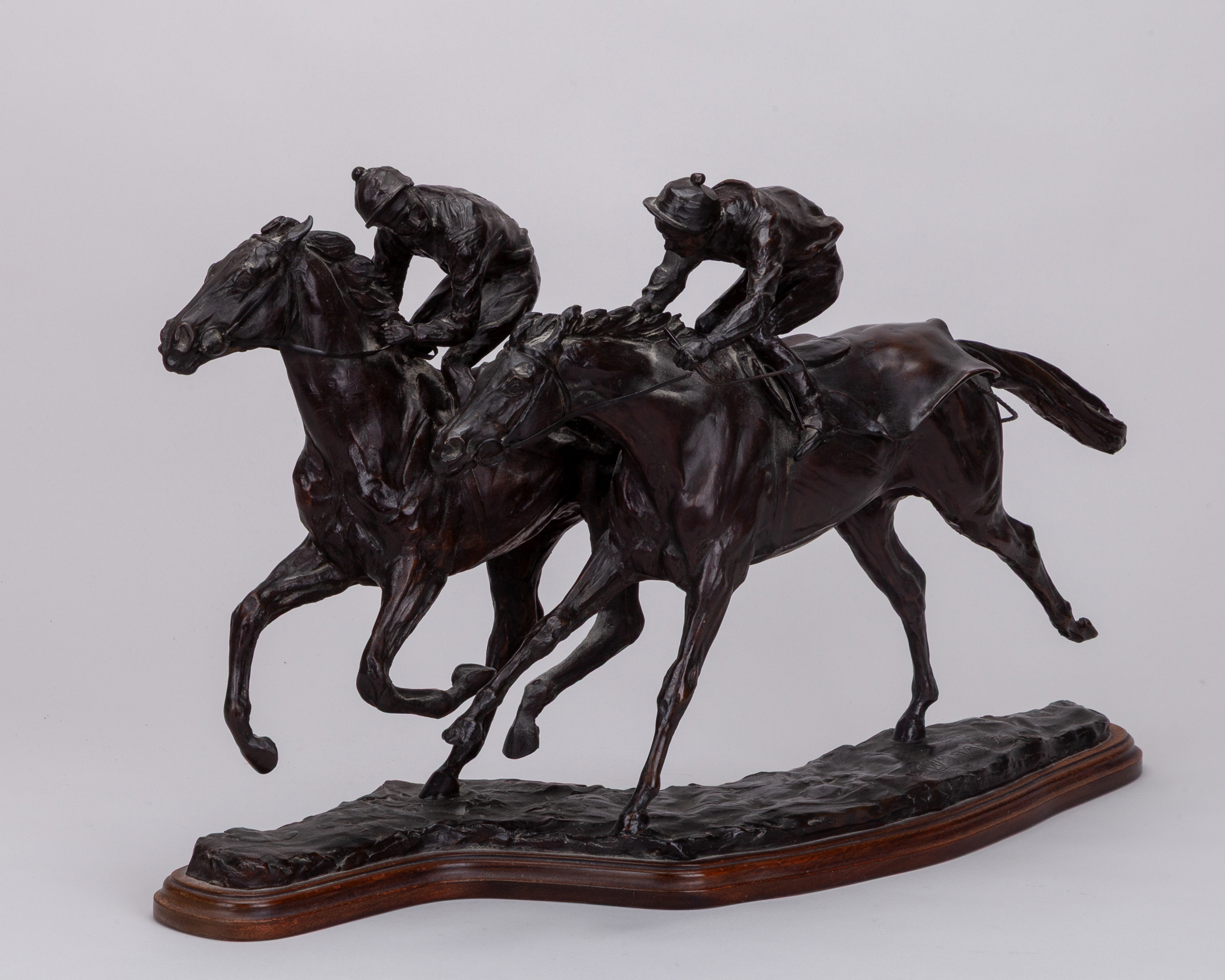 Caroline Wallace (British, contemporary) horse racing bronze “Fast Work”