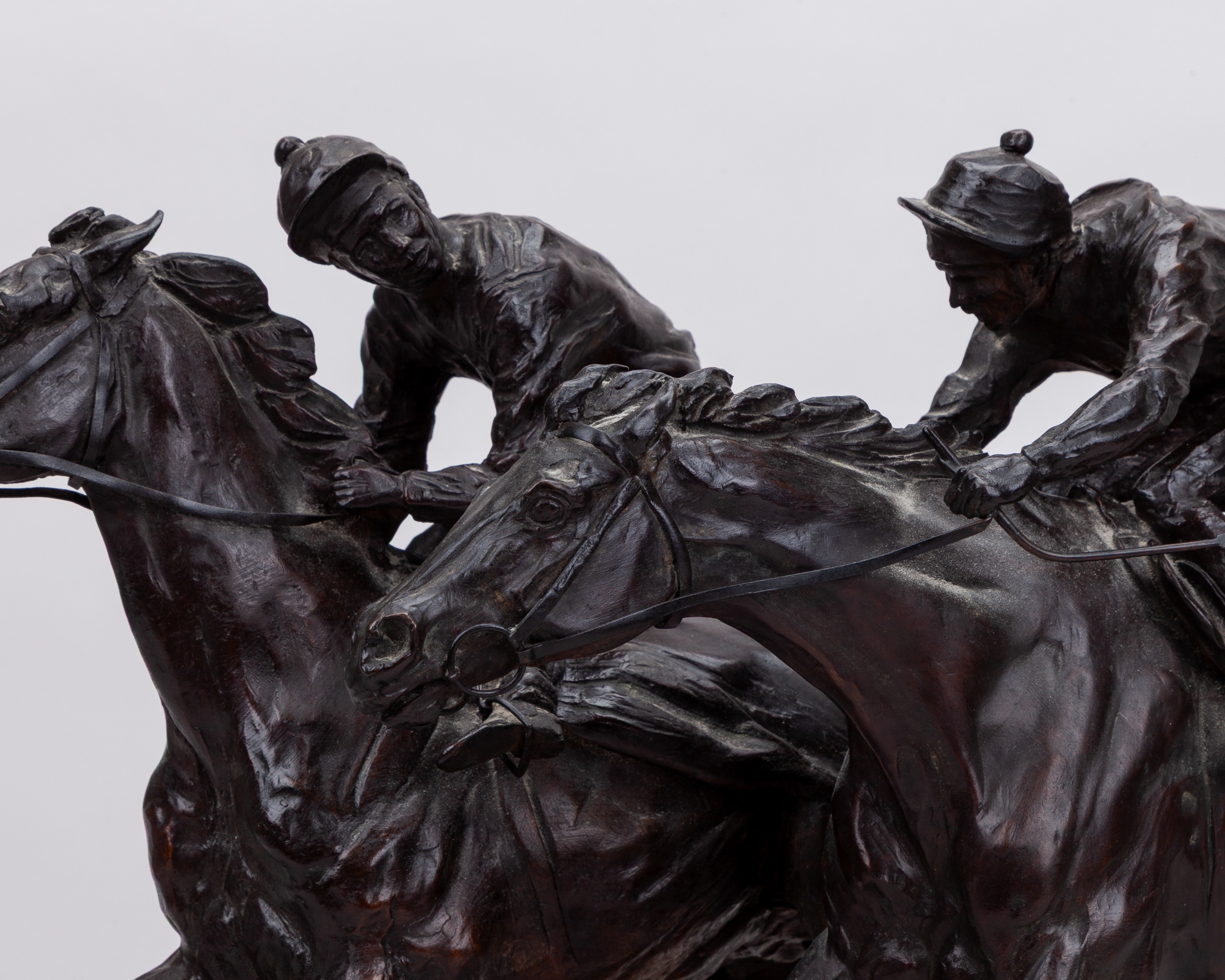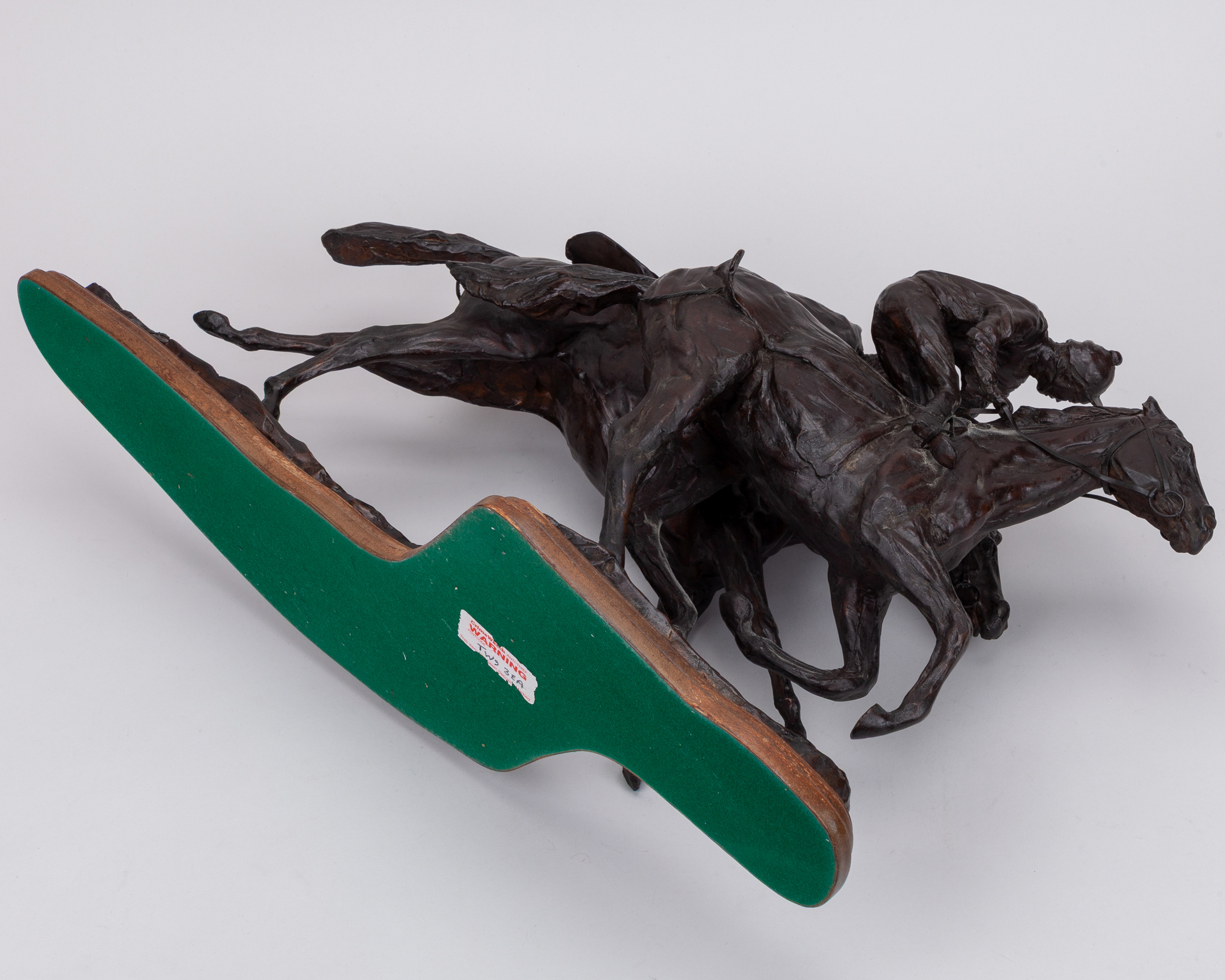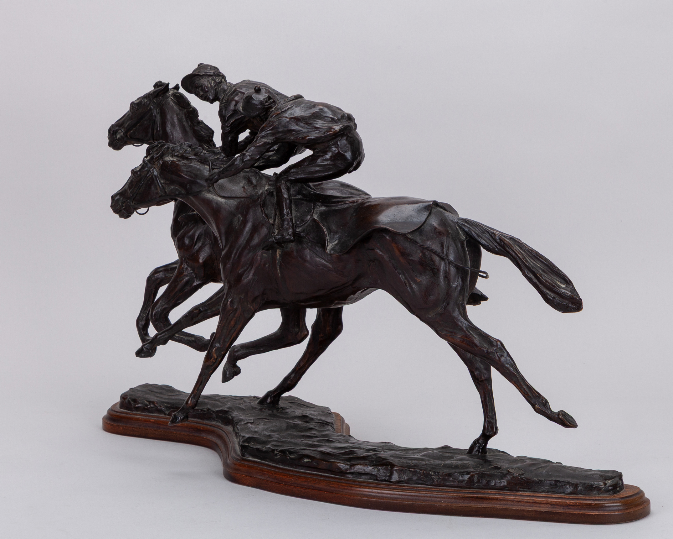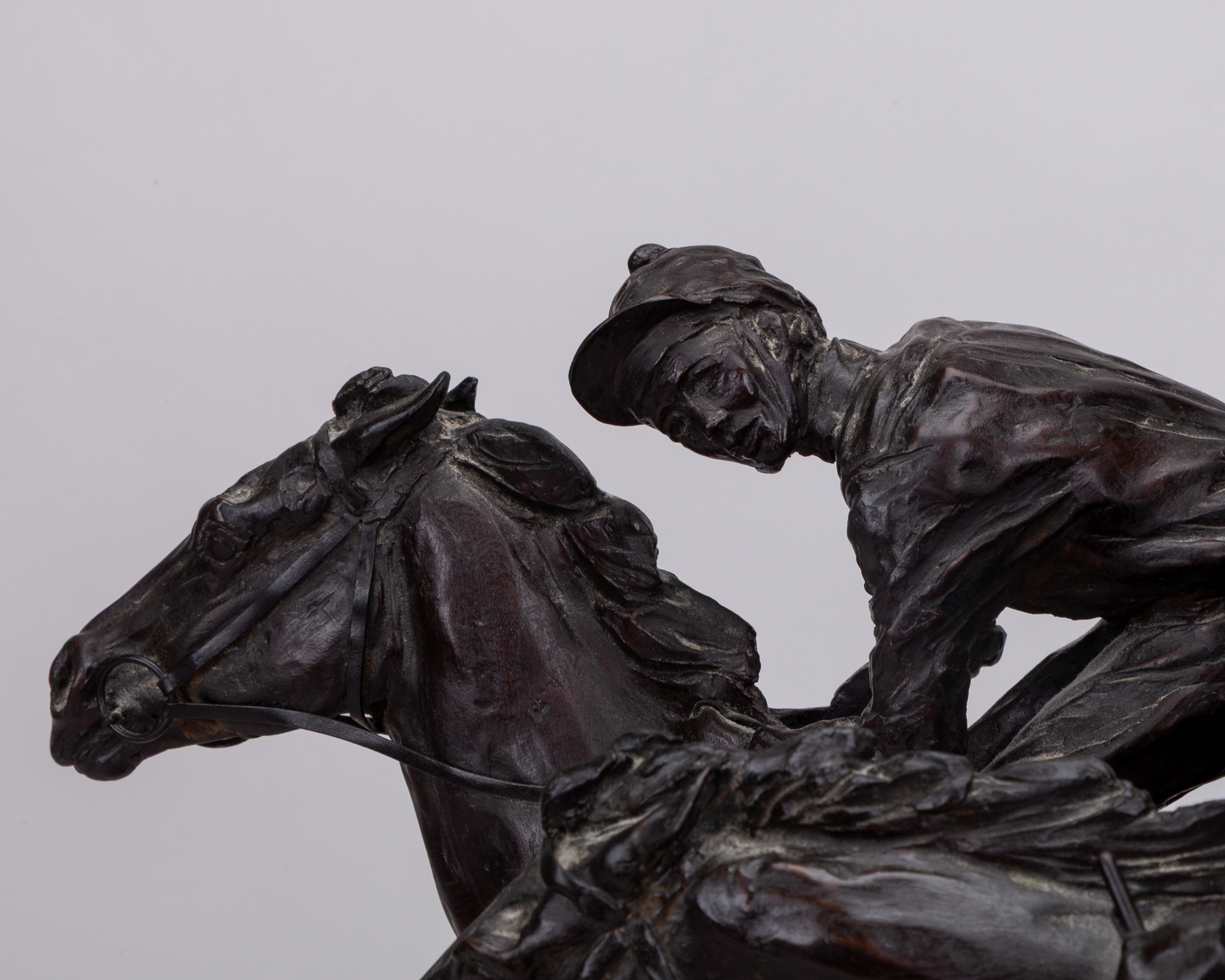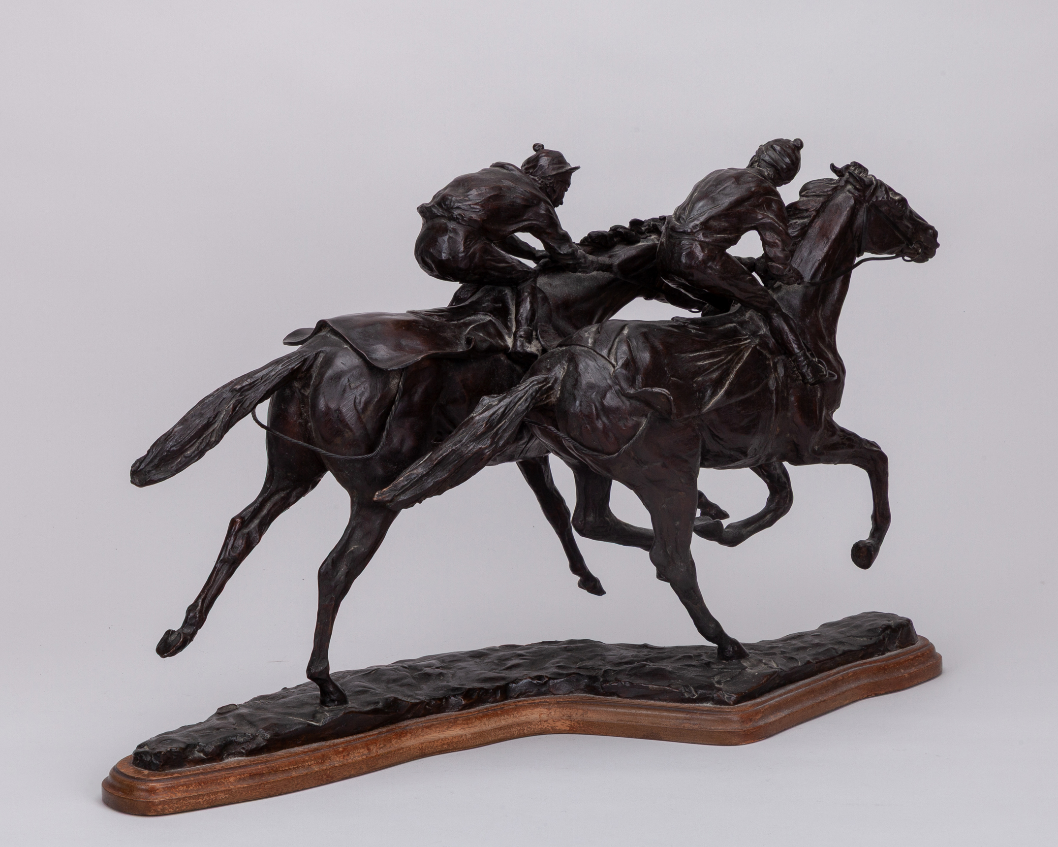 Caroline Wallace (British, contemporary) horse racing bronze “Fast Work”