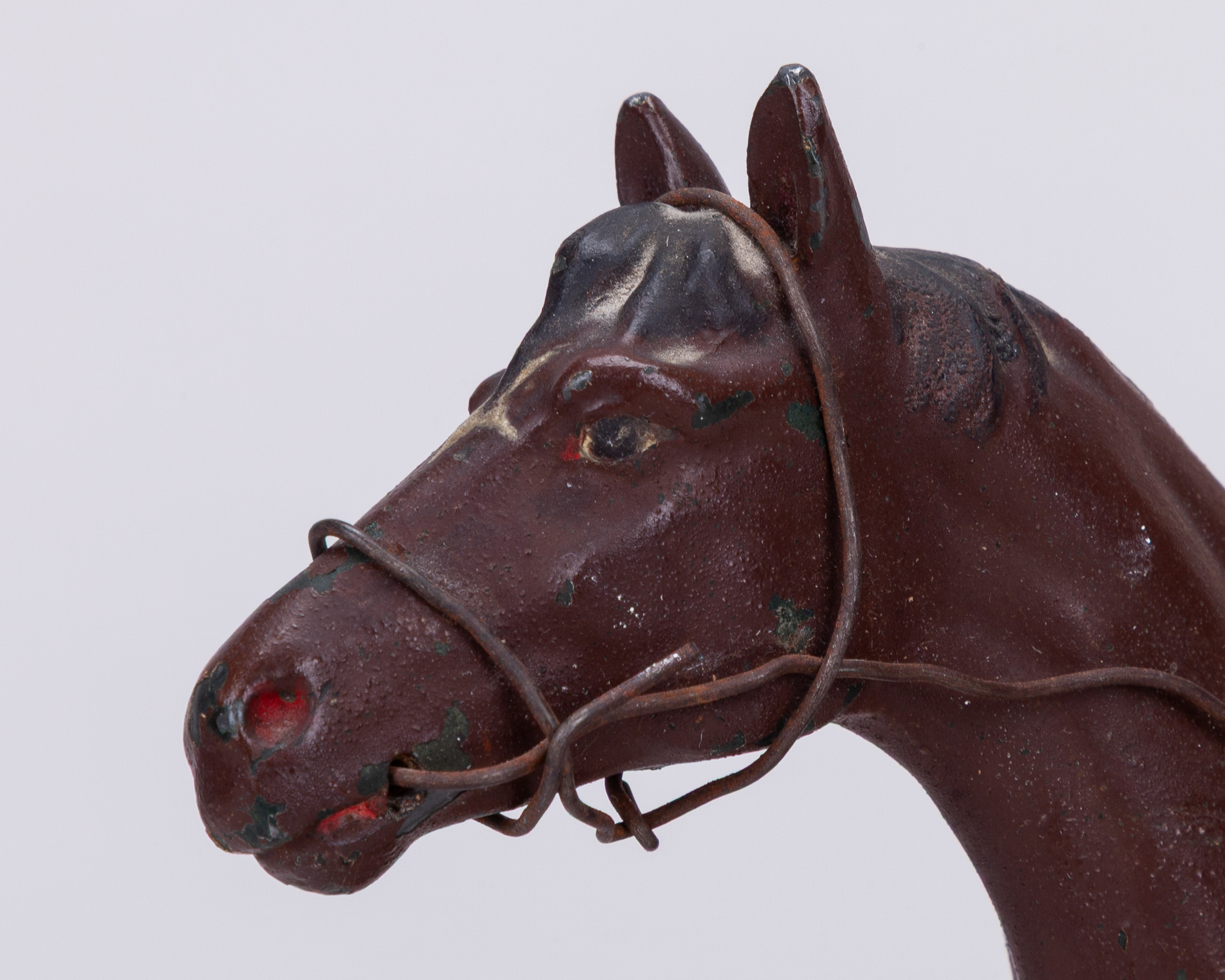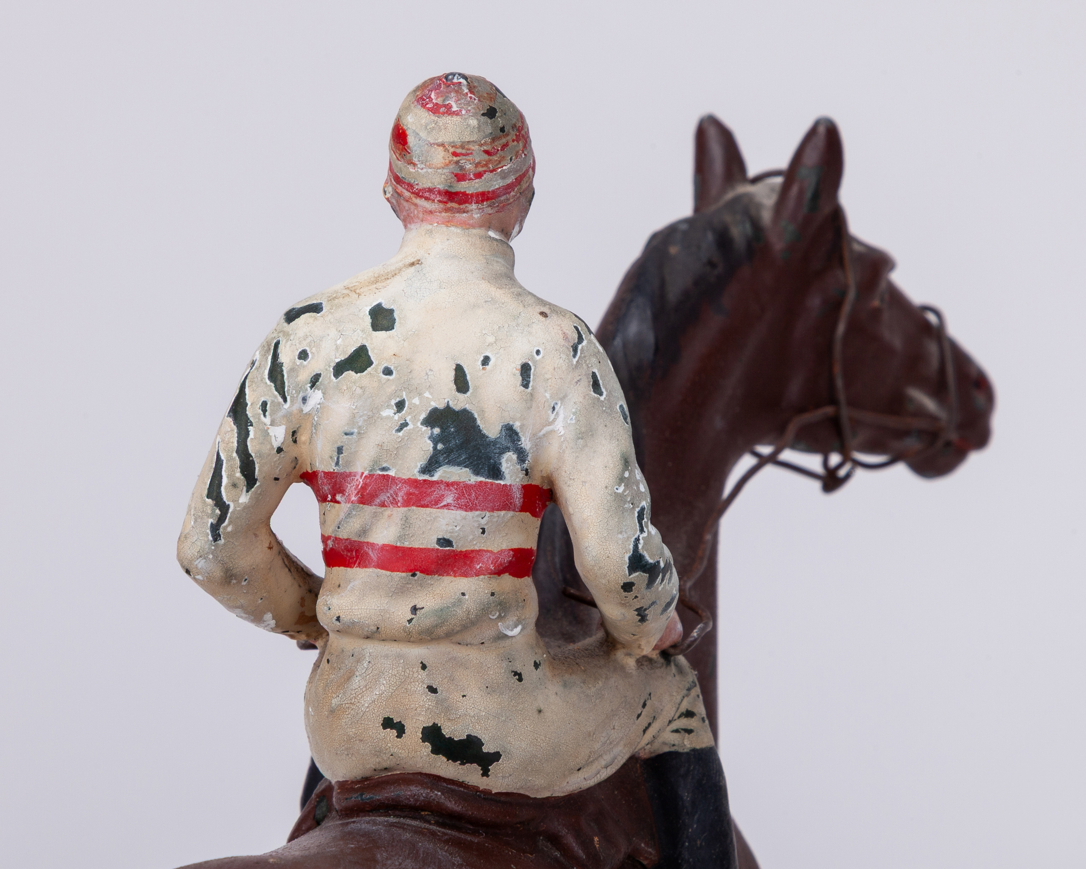 Painted spelter model of the racehorse ‘Melrush’ with jockey up dated 1933