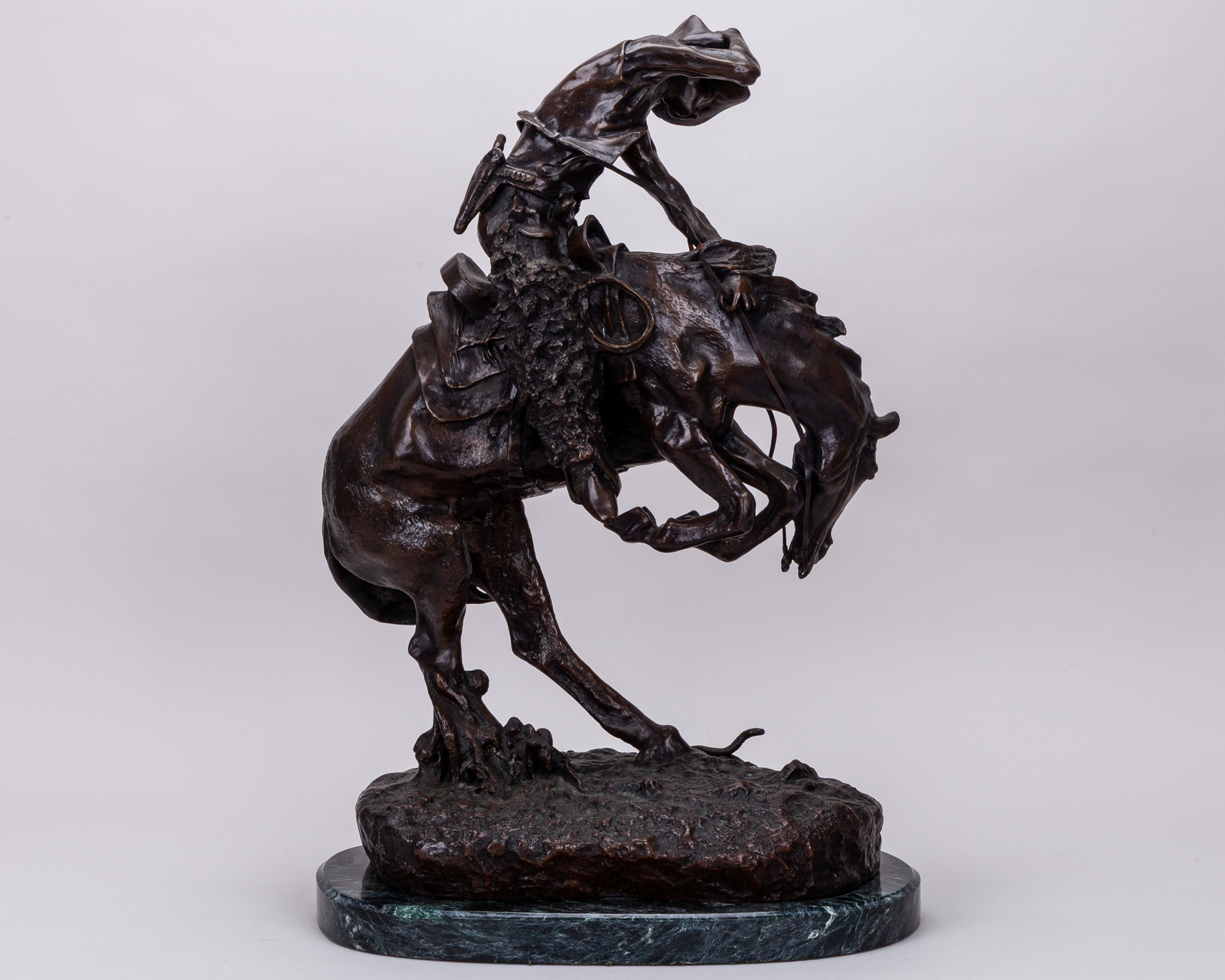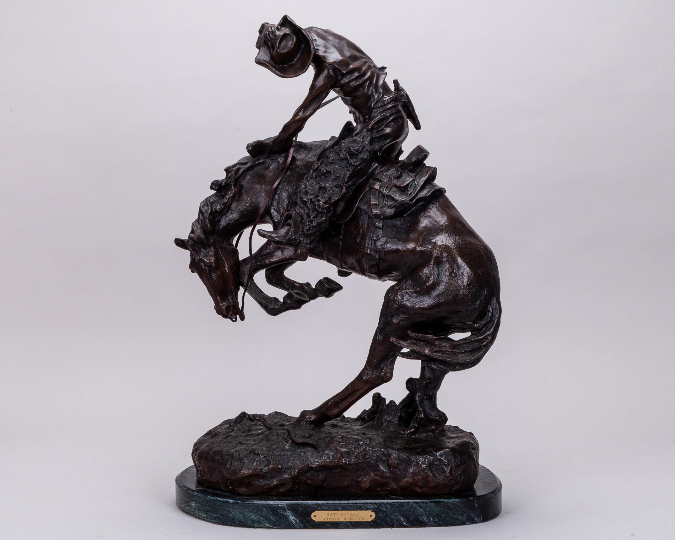 After Frederic Remington's American 19th century equestrian sculpture “Rattlesnake”,