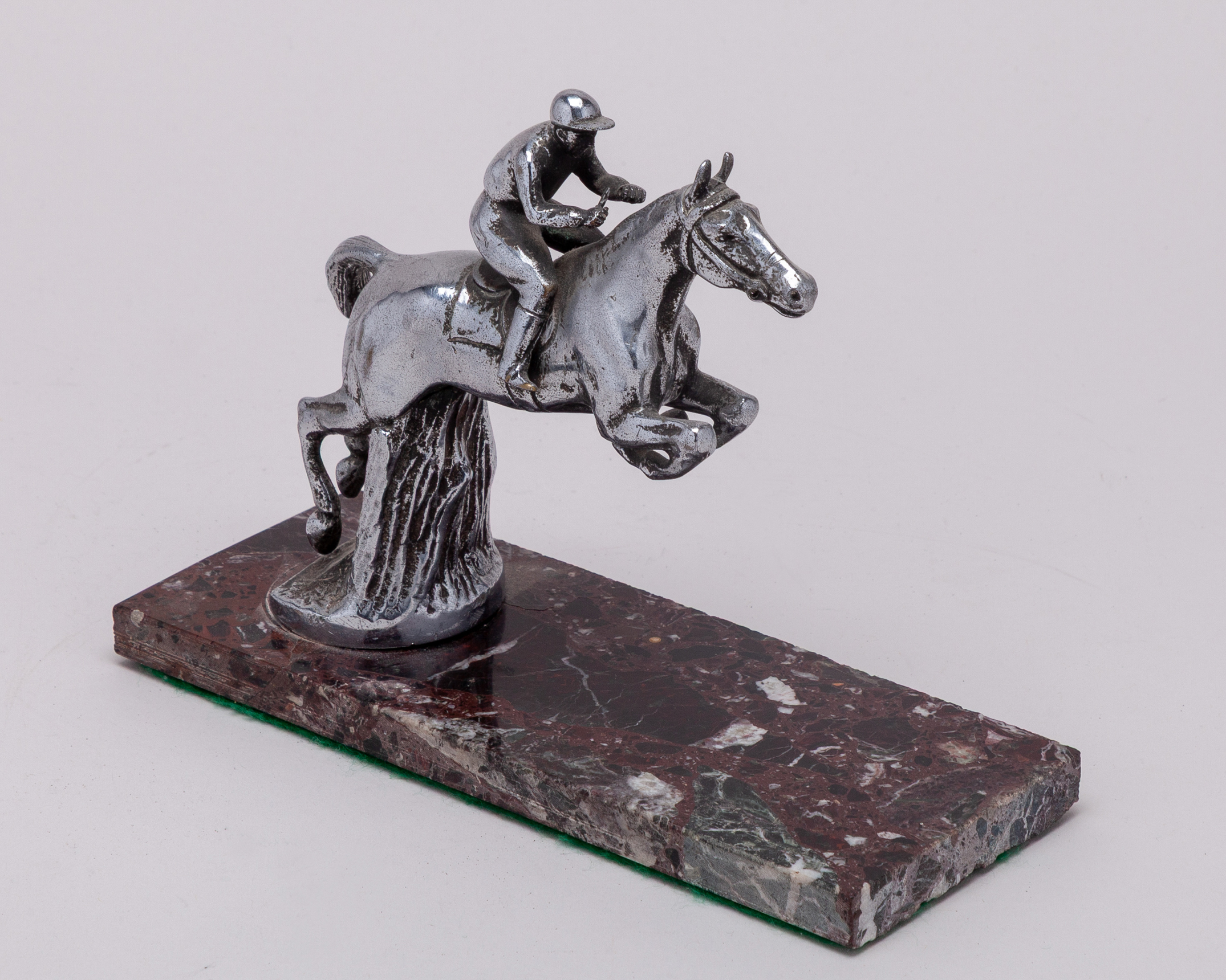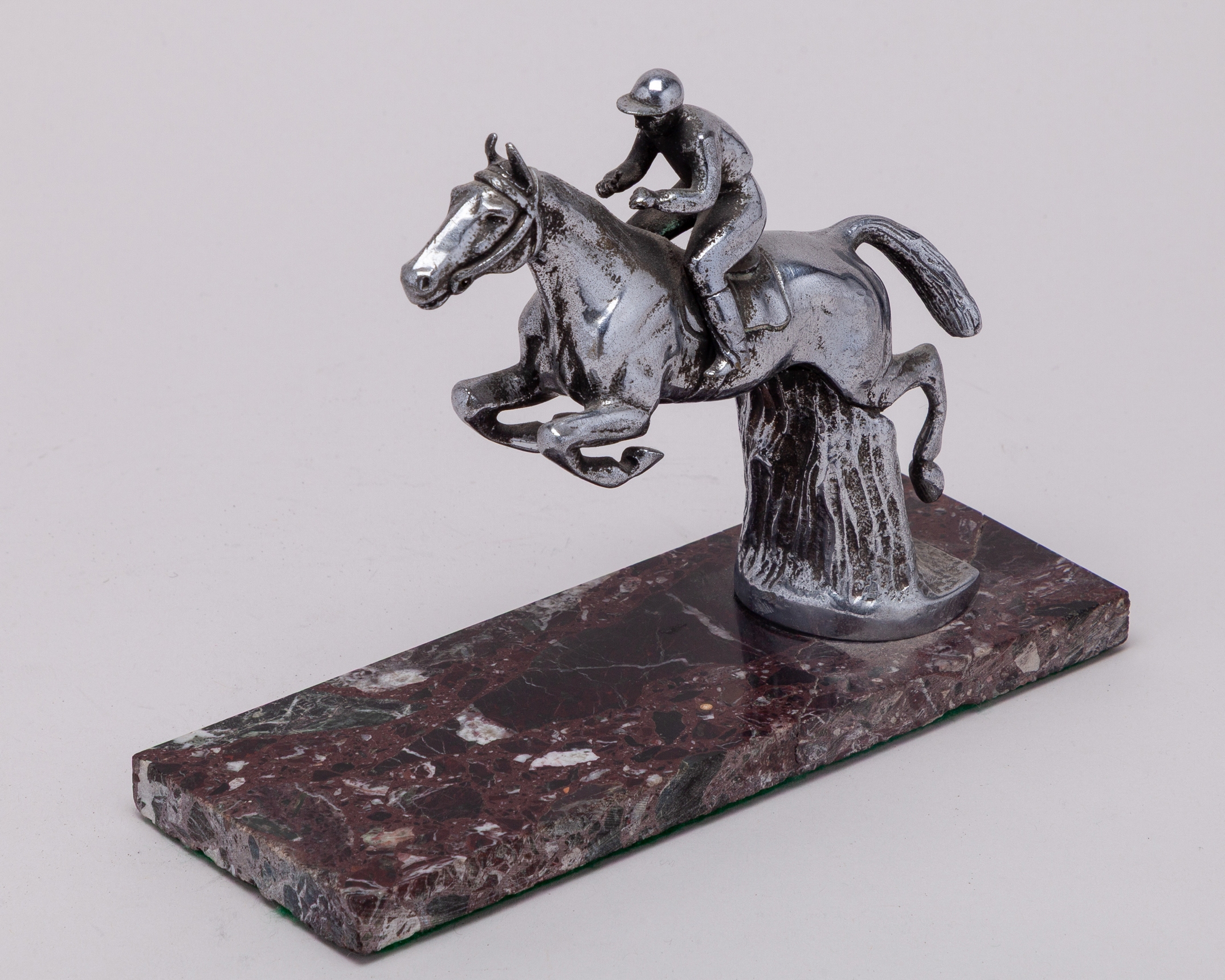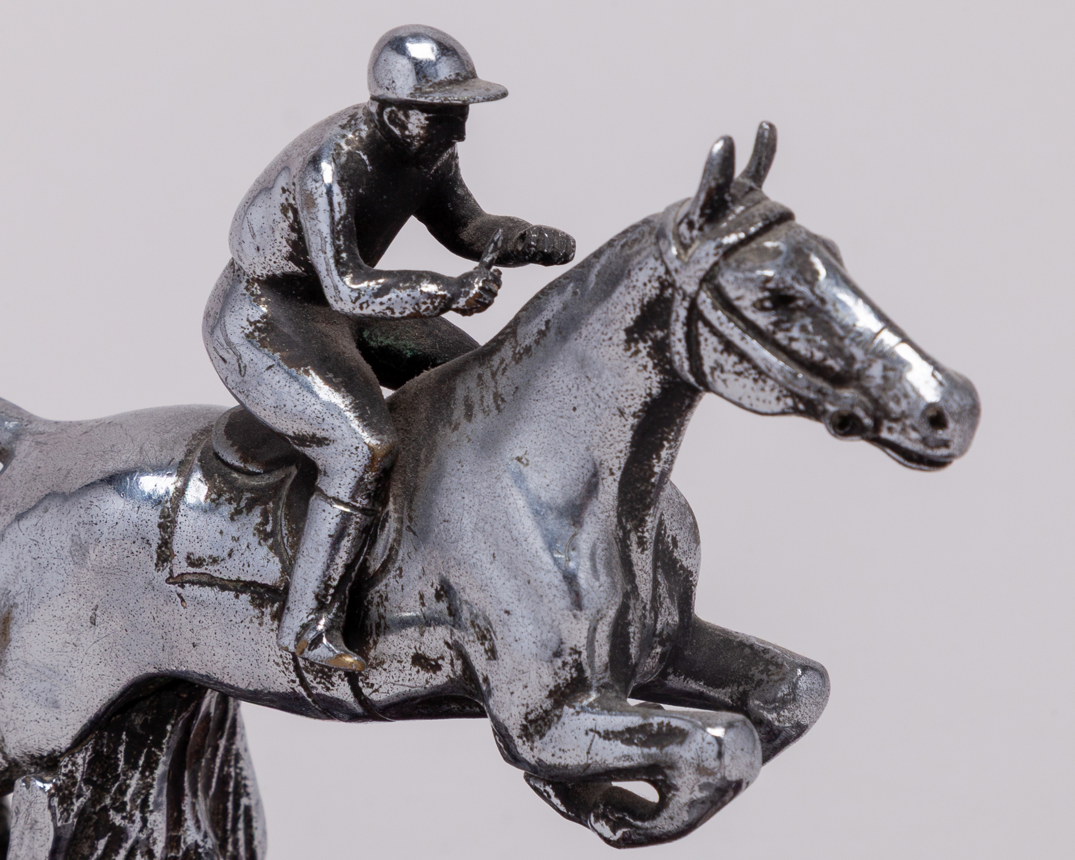 Vintage chromium plated car mascot modelled as a steeplechaser and jockey
