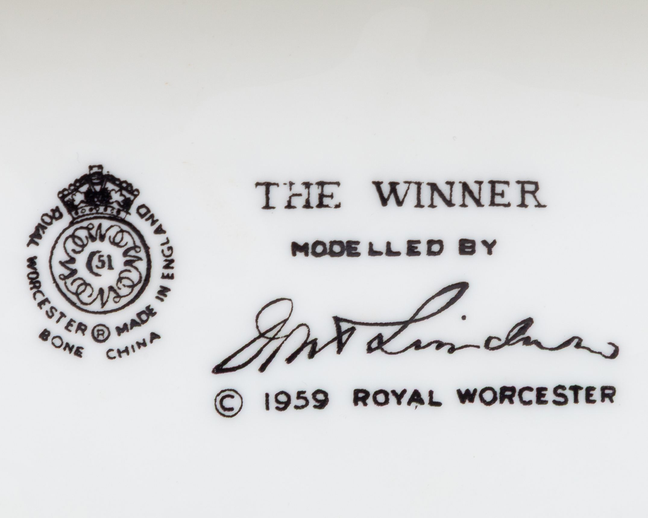Royal Worcester racehorse and jockey modelled by Doris Lindner titled ‘The Winner’,