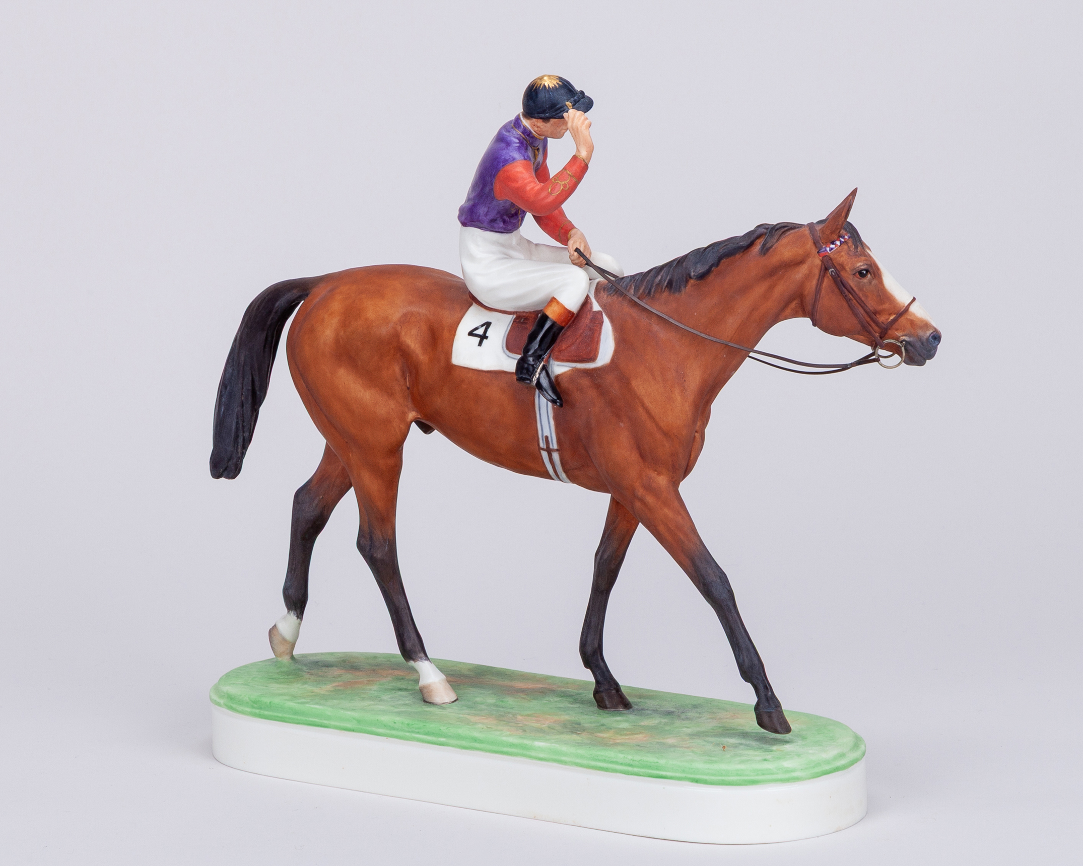 Royal Worcester racehorse and jockey modelled by Doris Lindner titled ‘The Winner’,