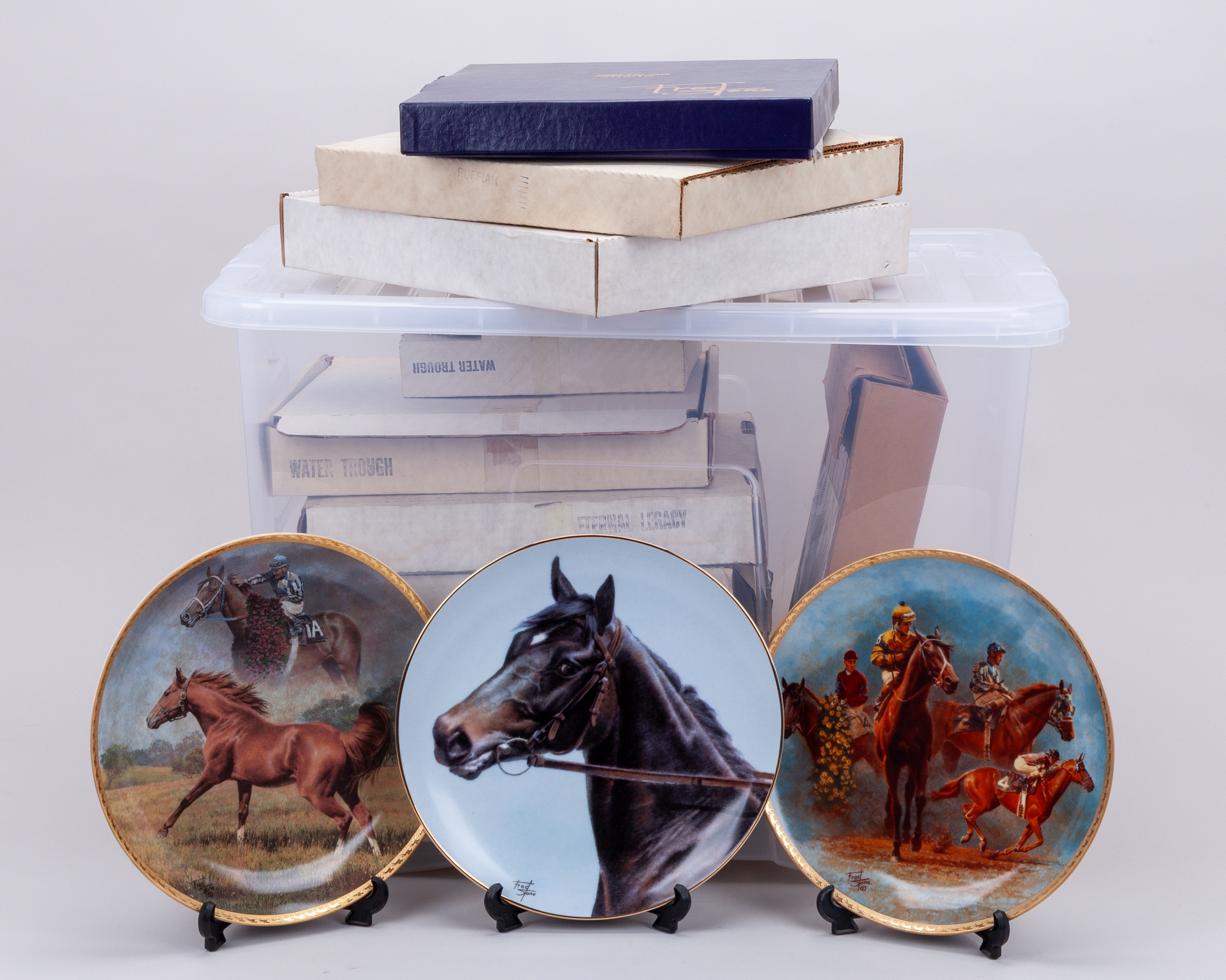 comprising: Lady's Secret (two), The Water Trough (two), Eternal Legacy, Ruffian, The Shoe/John Henry (two), Phar Lap, Alysheba. Sunday Silence, Old Warriors, American Triple Crown Series 1937-1946 and another for 1970-1989, Northern Dancer with Bill Hartack up, A Candle in the Wind (Go For Wand), Secretariat - The Final Tribute 1979-1989 (two), Kentucky Derby - Seattle Slew, Tranquility (three), Genuine Risk, Diamond in the Rough (two), Secreatriat, Kiss for a Winner, Kidnapped, Pasture Pest, Contentment and Arabian Mare & Foal; the lot also including a Royal Doulton Frankie Dettori Magnificent Seven plate (32 plates)