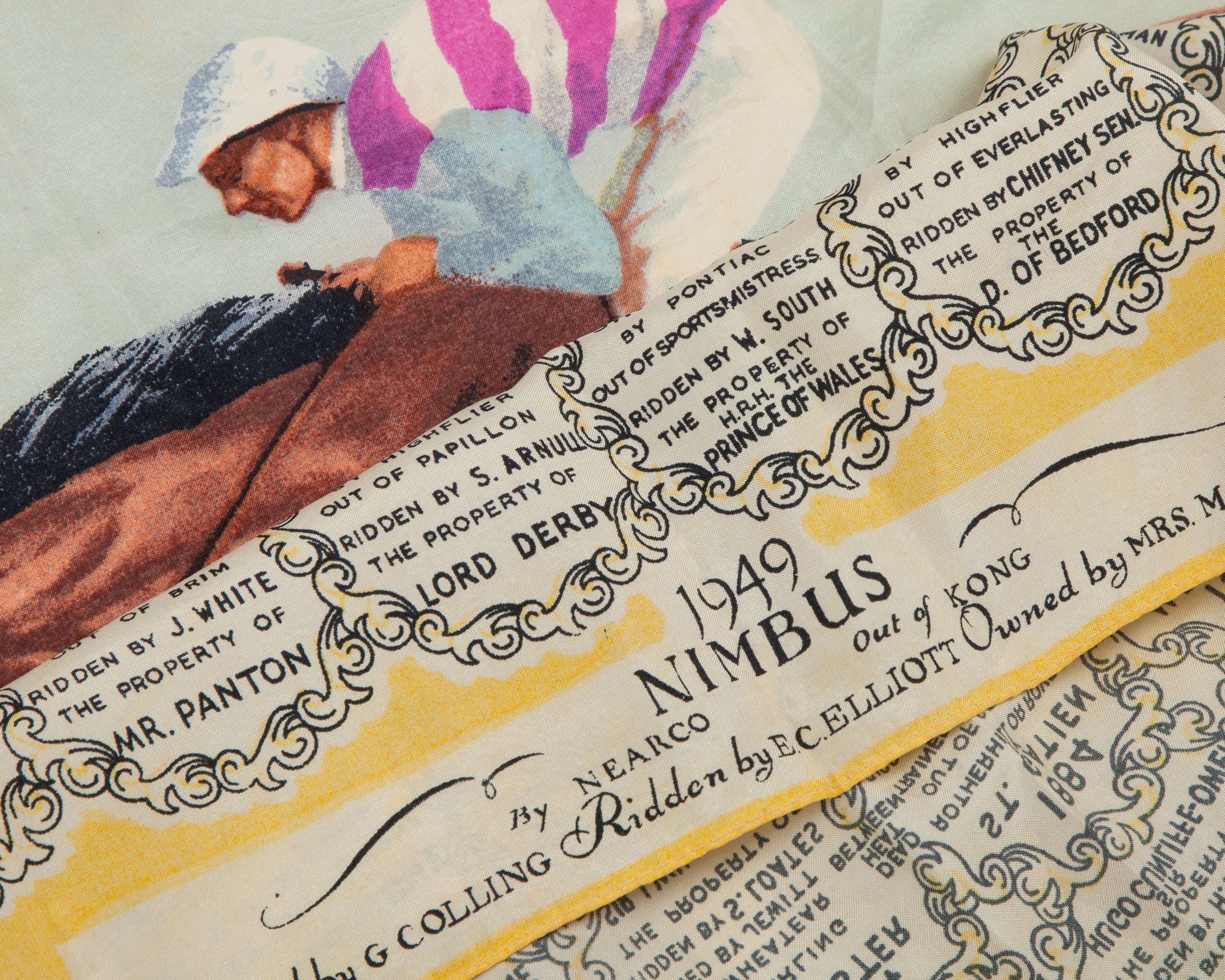 Ladies silk scarf commemorating the victory of Nimbus in the 1949 Derby