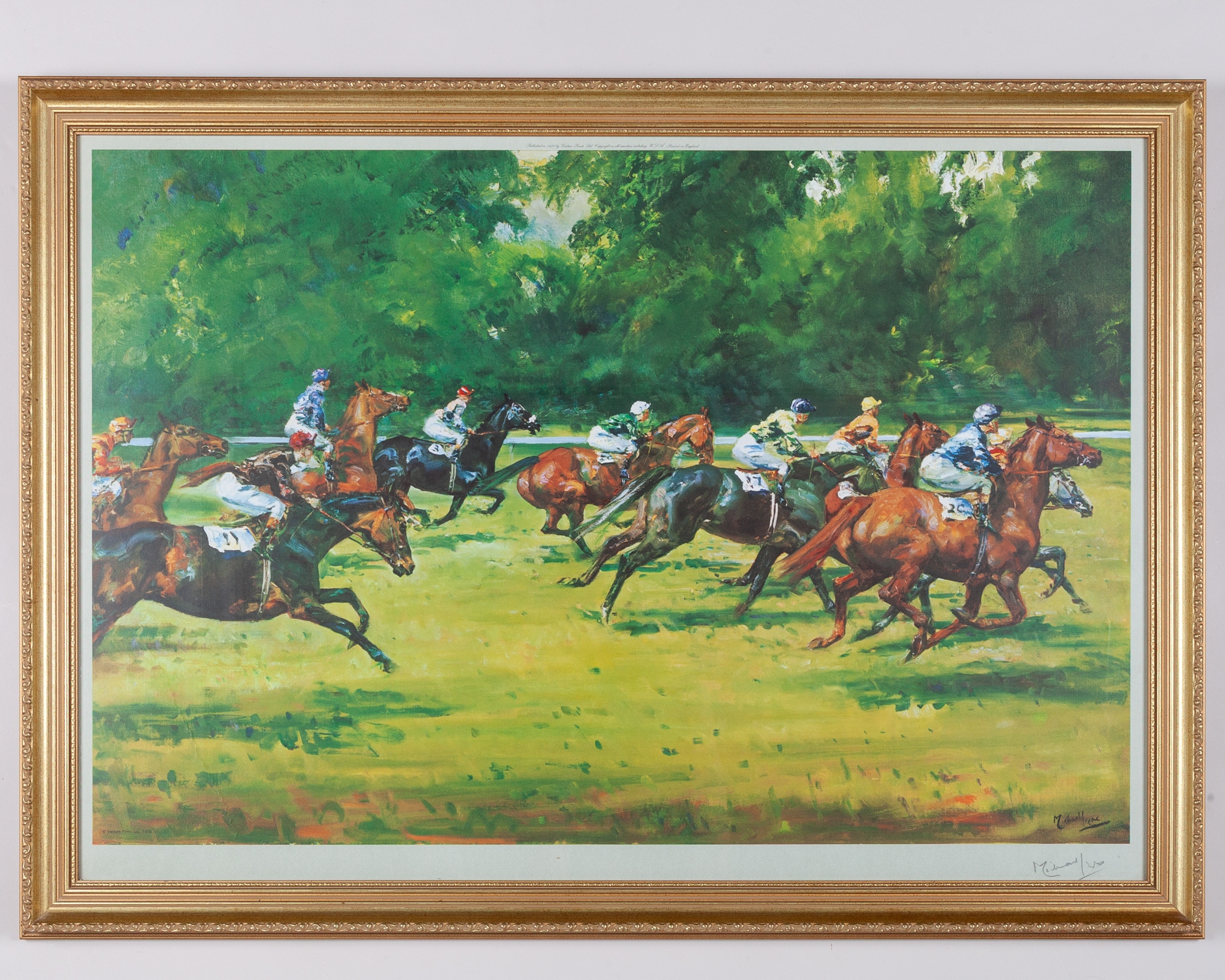 Michael Lyne (British, 1912-1989) large 1970s horse racing print,
