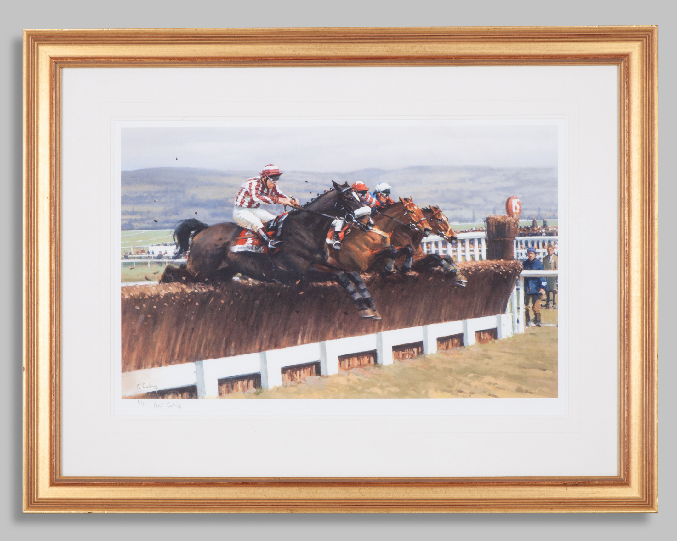 Peter Curling (Irish, b.1955) print of race action at Cheltenham