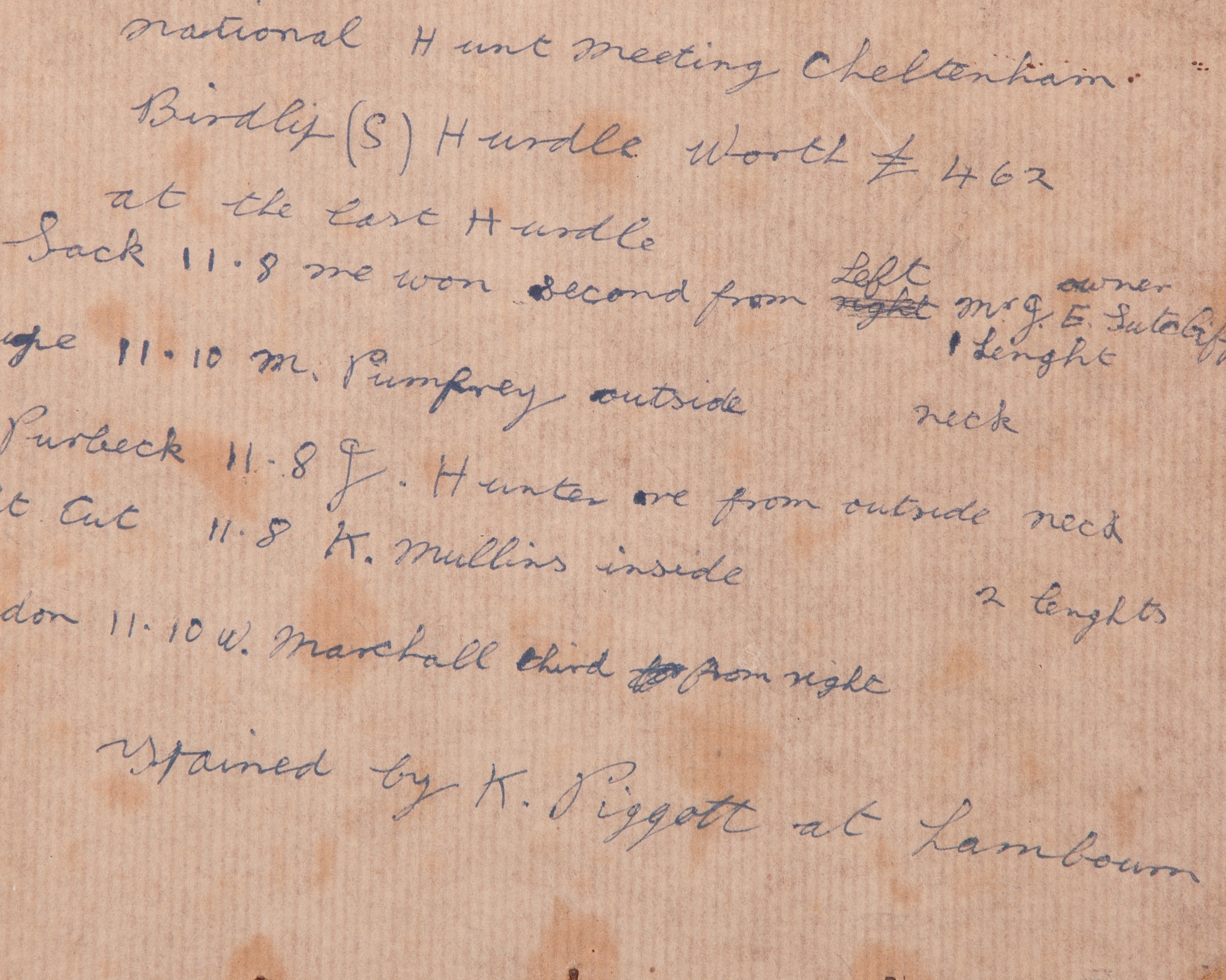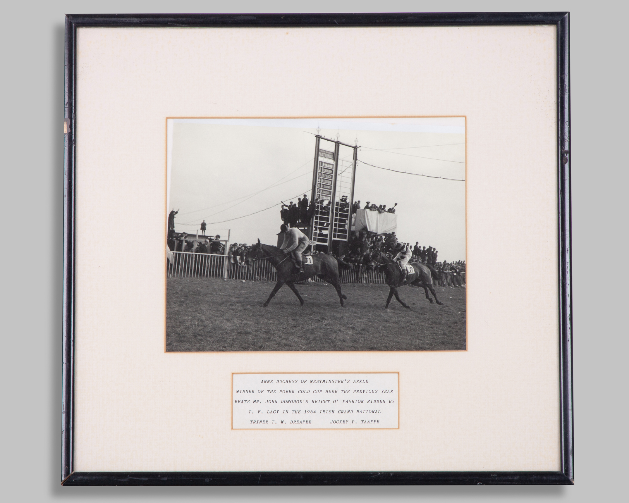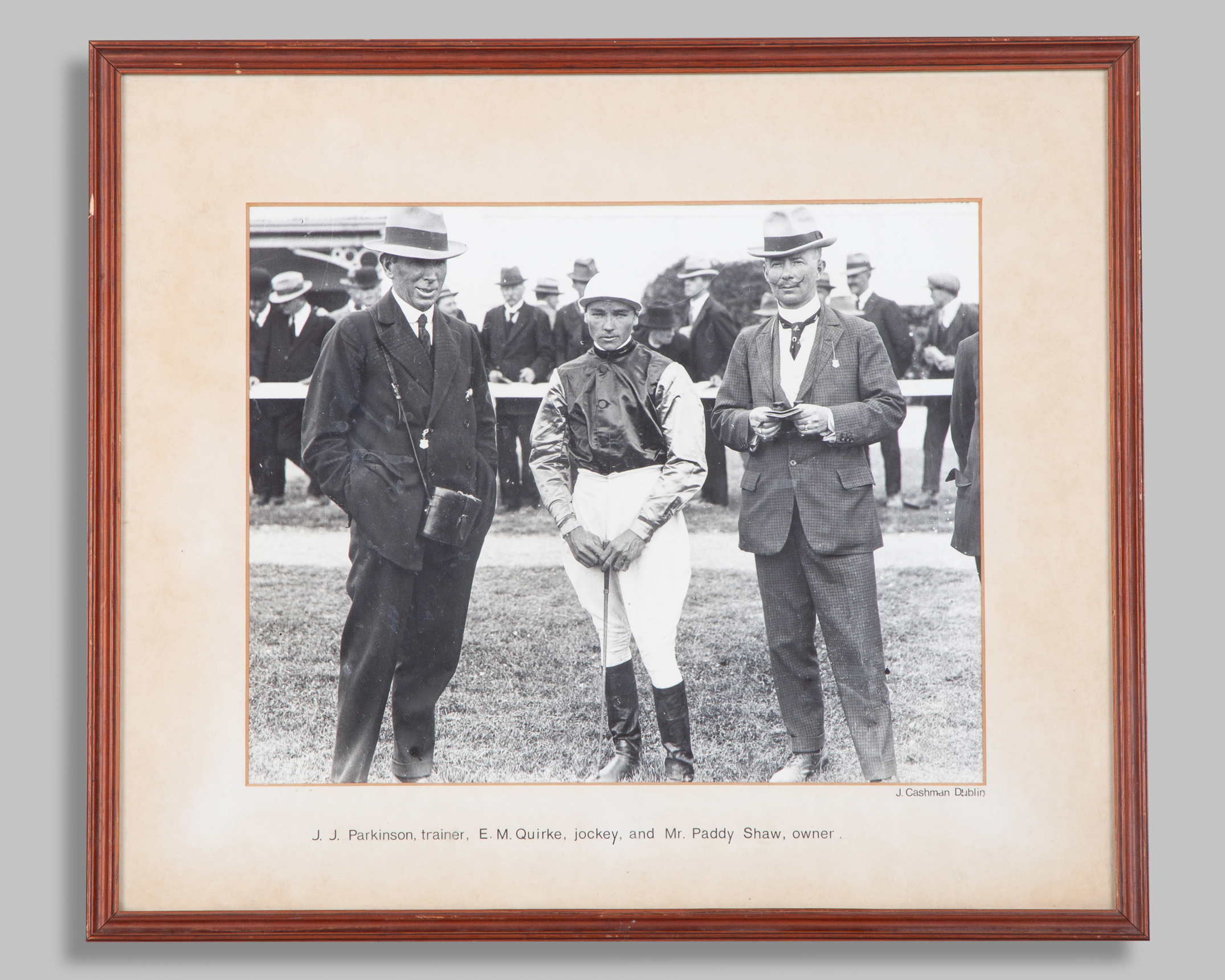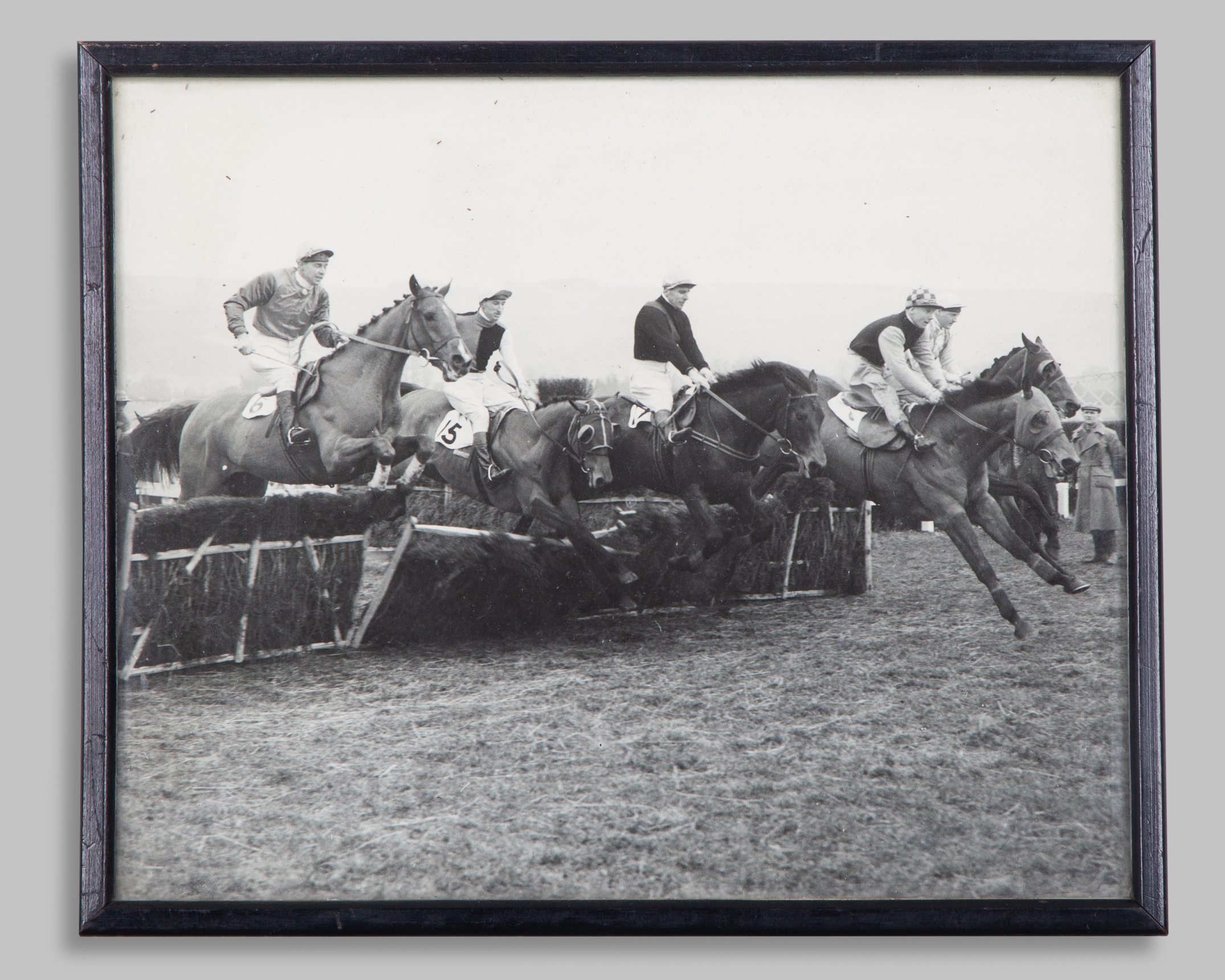 photographs including Barnes Park winning the 1951 Lincoln, a photograph signed by Ken Cundall, Arkle winning the Power Gold Cup, Phil Drake the 1955 Derby winner, Sir Peter O'Sullevan potrait and a group photograph in the paddock of J J Parkinson (trainer), E M Quirke (jockey) and Paddy Shaw (owner), various sizes