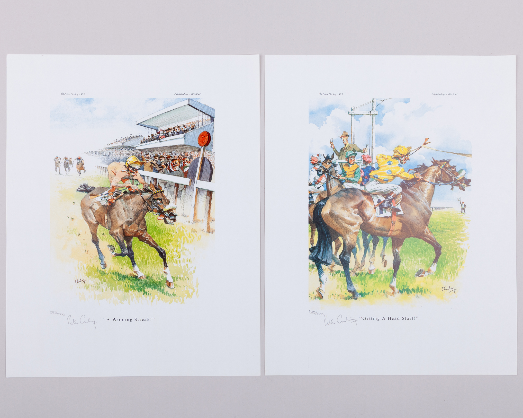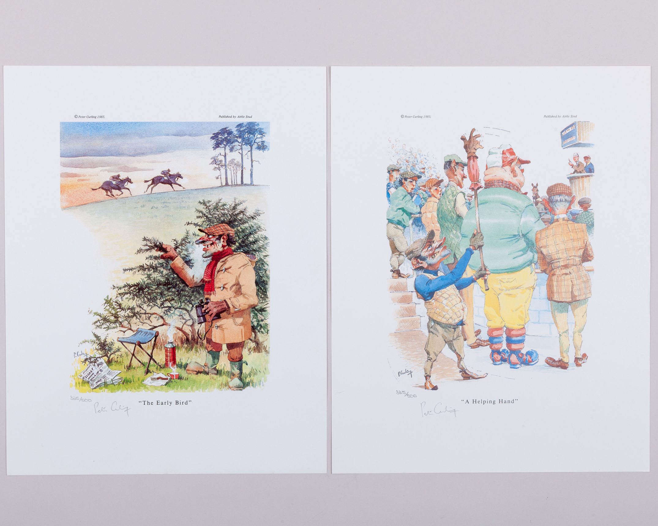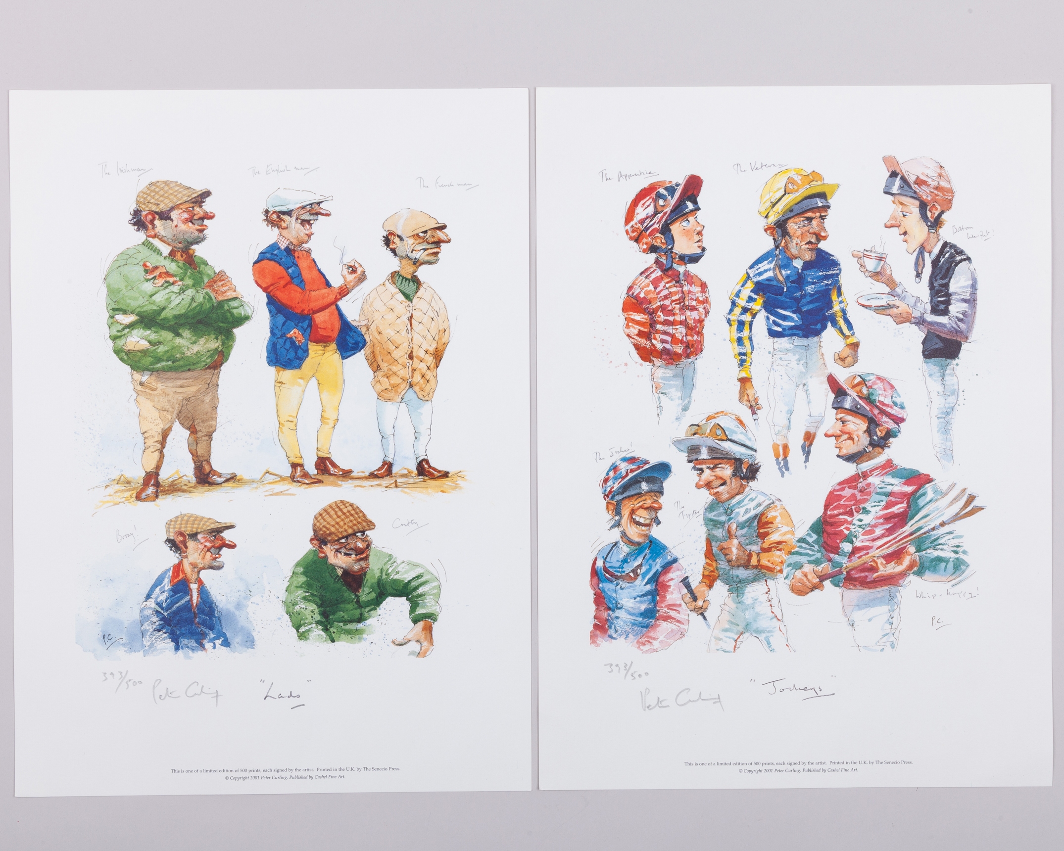 all signed in pencil by the artist, three numbered 325/500 i) A Helping Hand, ii) The Early Bird & iii) A Winning Streak, 37 by 30cm.; the others numbered 393/500, iv) Owners, v) Trainers, vi) jockeys & vii) Lads, 43 by 32cm., unmounted sheets