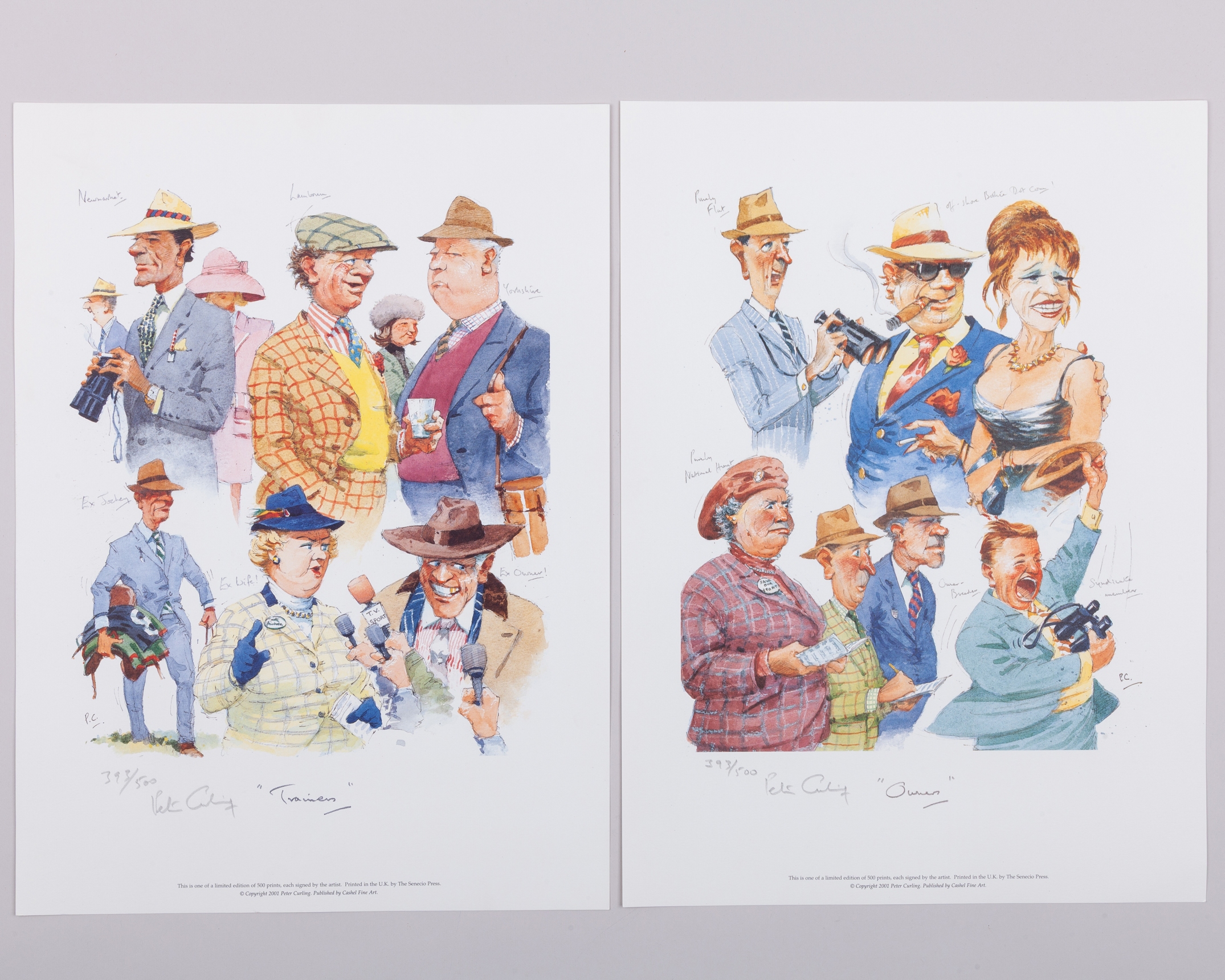 Group of seven Peter Curling (Irish, b.1955) caricature prints,