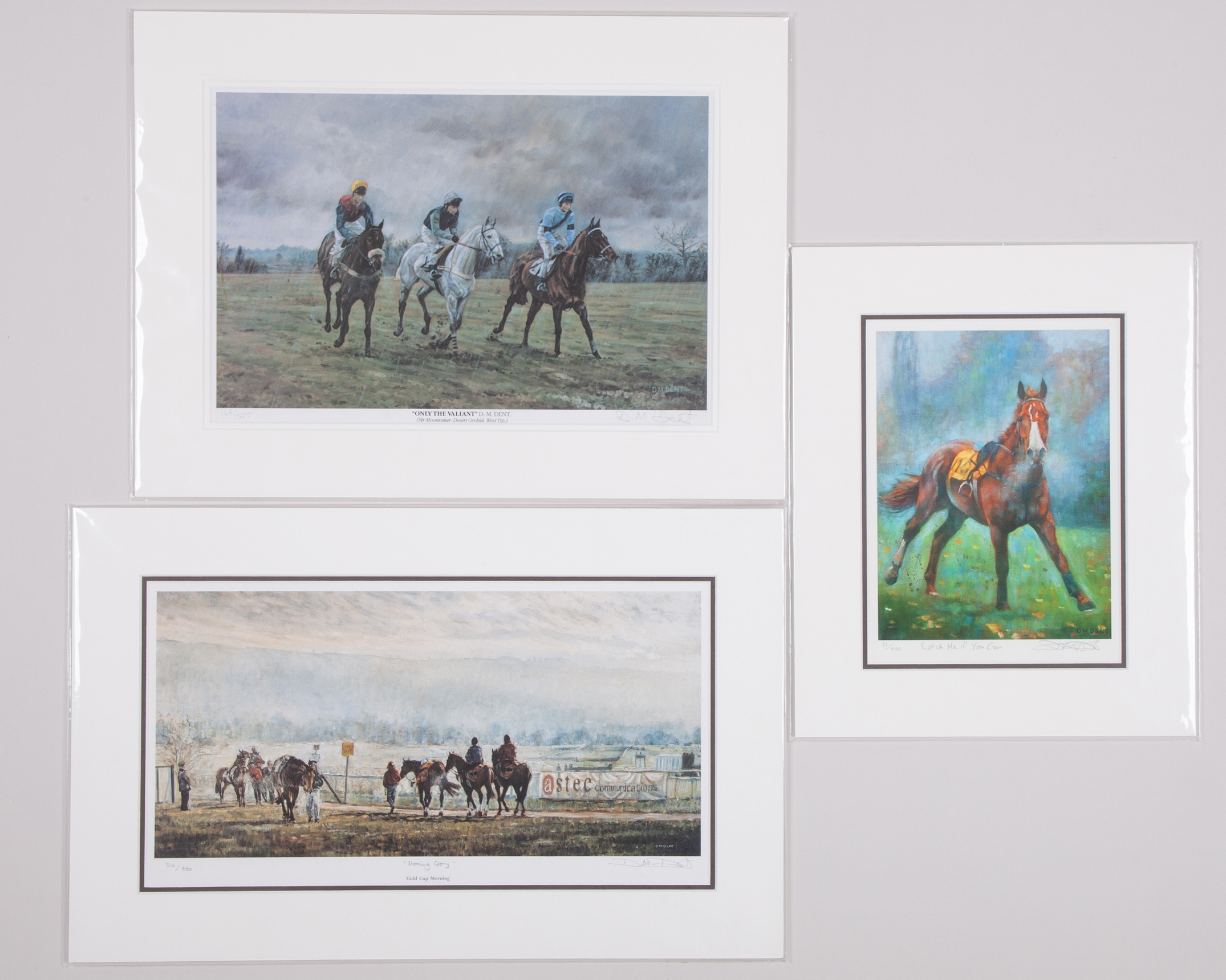 A trio of limited edition horse racing prints by David Dent (British, 1959),