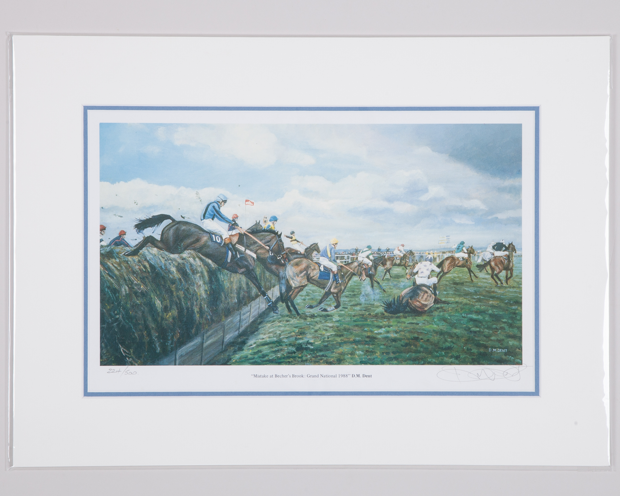 Three limited edition steeplechase horse racing prints by David Dent (British, b.1959),
