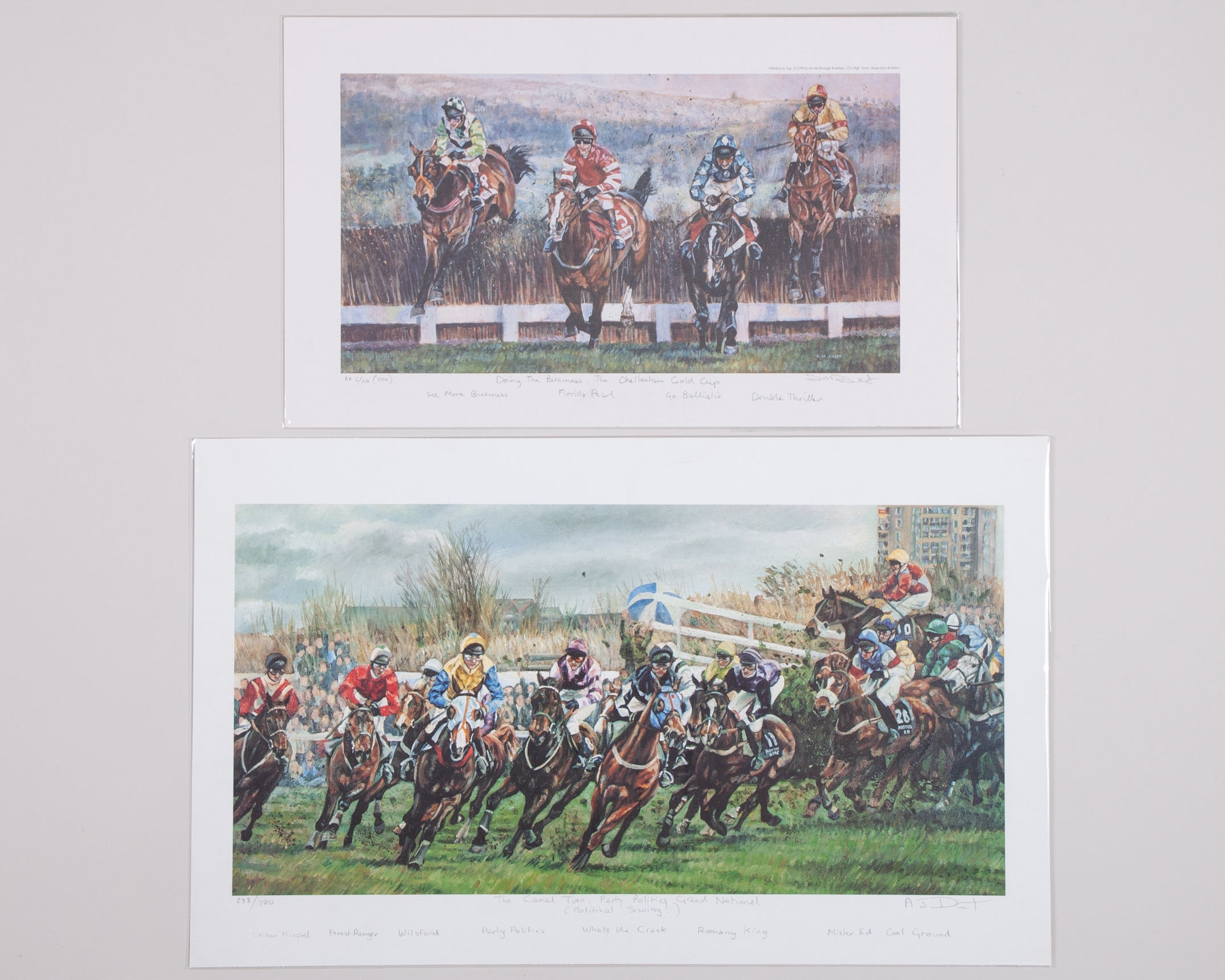 Four horse racing prints by the brothers David Dent (British, b.1959) and Adrian Dent (British, b.1966),