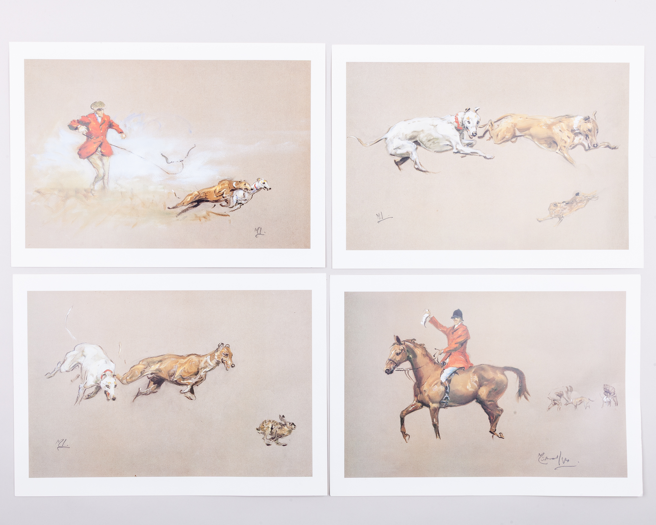 Michael Lyne (British, 1912-1989) folio of four hare coursing prints