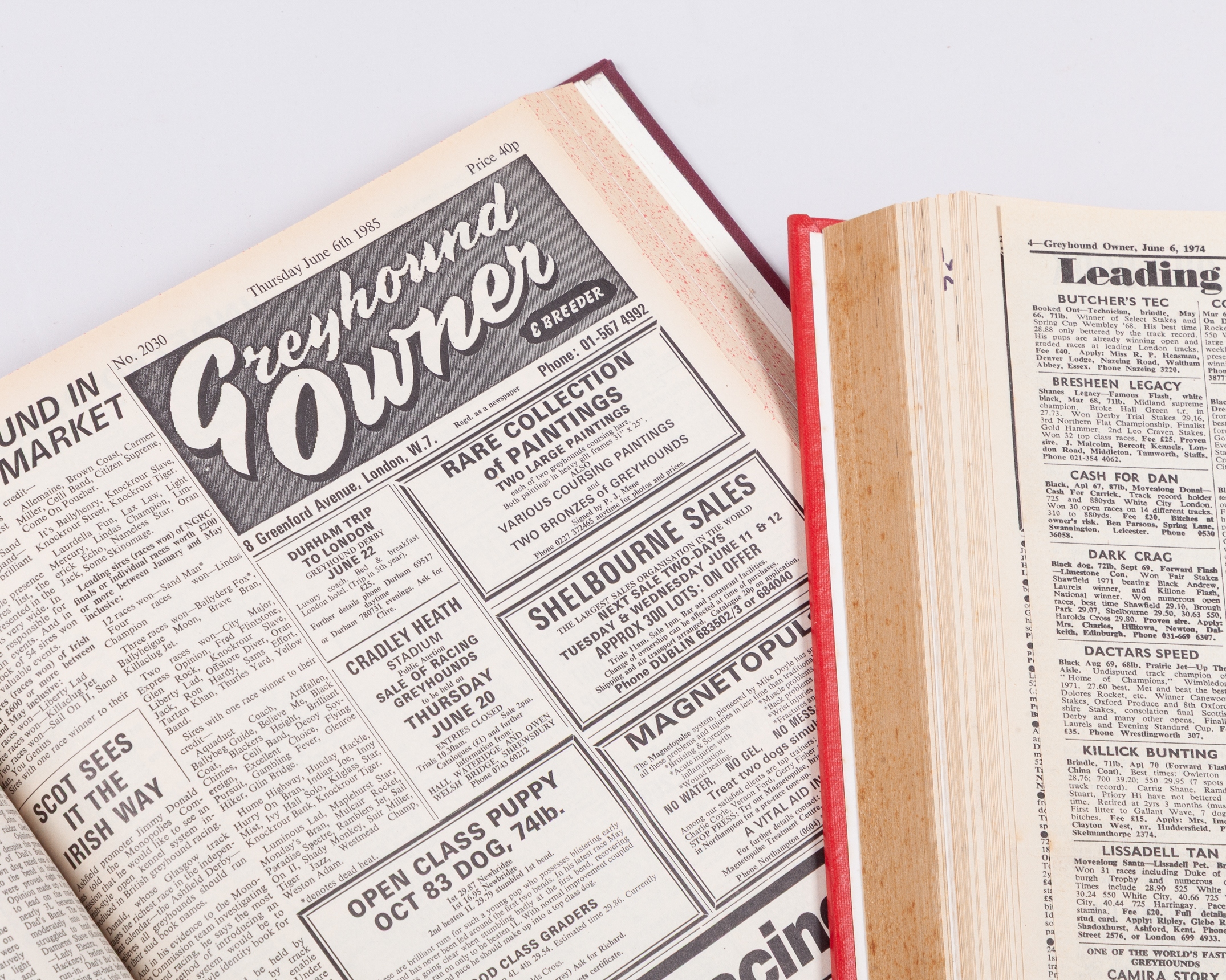 Four bound volumes of Greyhound Owner & Breeder newspapers