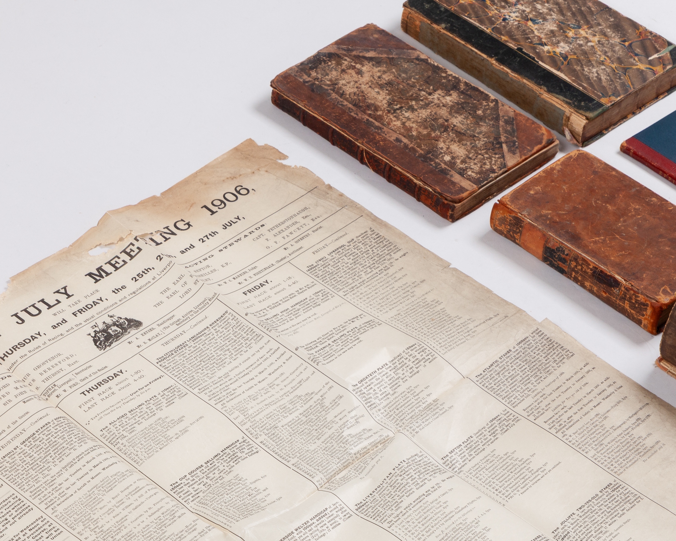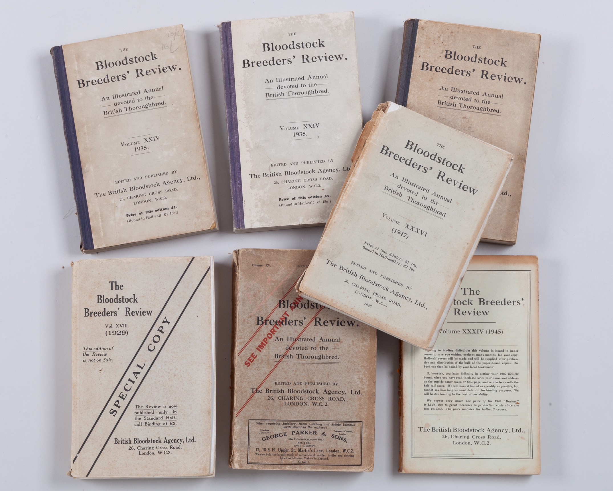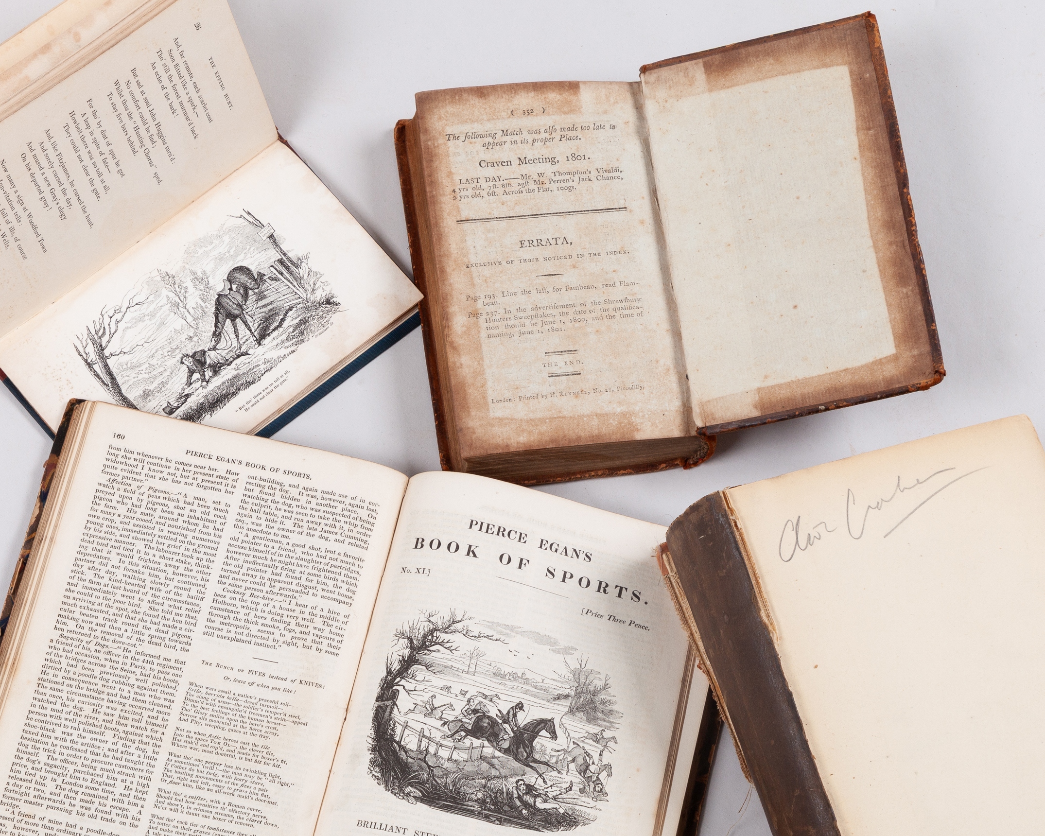 including Genius Genuine by Samuel Chifney of Newmarket, published 1804; Pierce Egan's Book of Sports and Mirror of Life (The Turf, The Chase, The Ring and The Stage), published 1832; The Epping Hunt by Thomas Hood, second edition, 1830; Weatherby's Racing Calendar for 1800; Weatherby's General Stud Book vol XXVI, published 1929, boards detached; sold together with a printed broadsheet for the Liverpool July Meeting 1906; seven volumes of the Bloodstock Breeders' Review 1920s to 1940s; two binders of Stud and Stable magazine, 1969 & 1972; two binders of The British Racehorse magazine, 1949 & 1950; and nine other volumes, mostly on sporting art (25 vols)