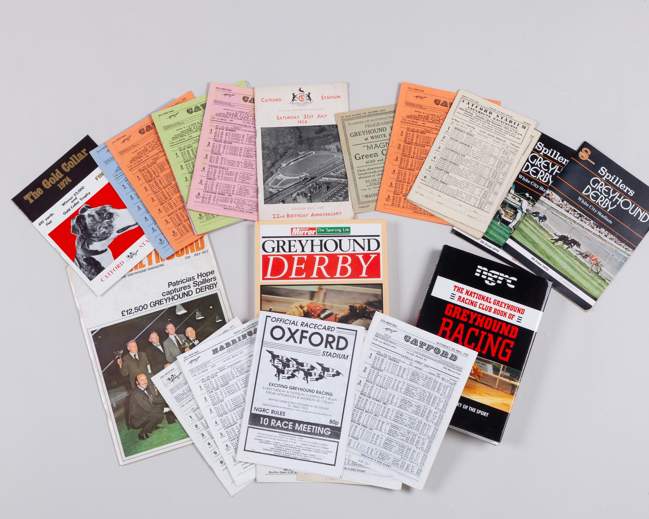 Horse racing books, racecards and souvenir newspapers also greyhound racing content,