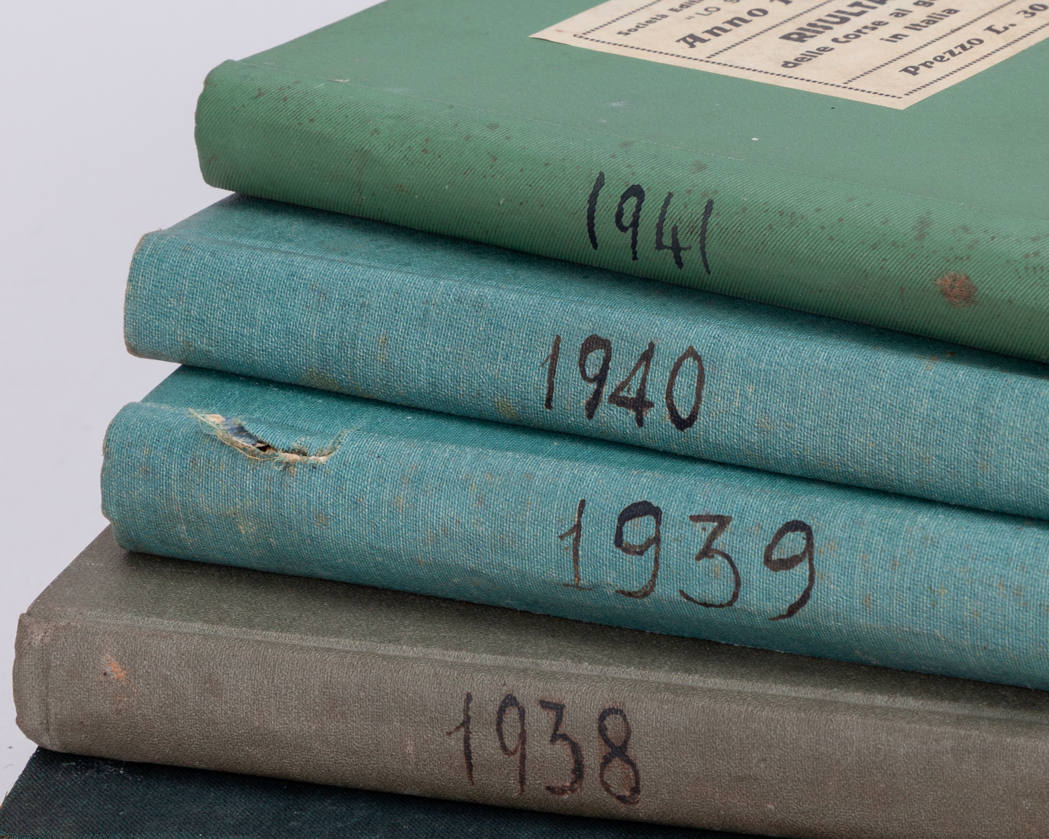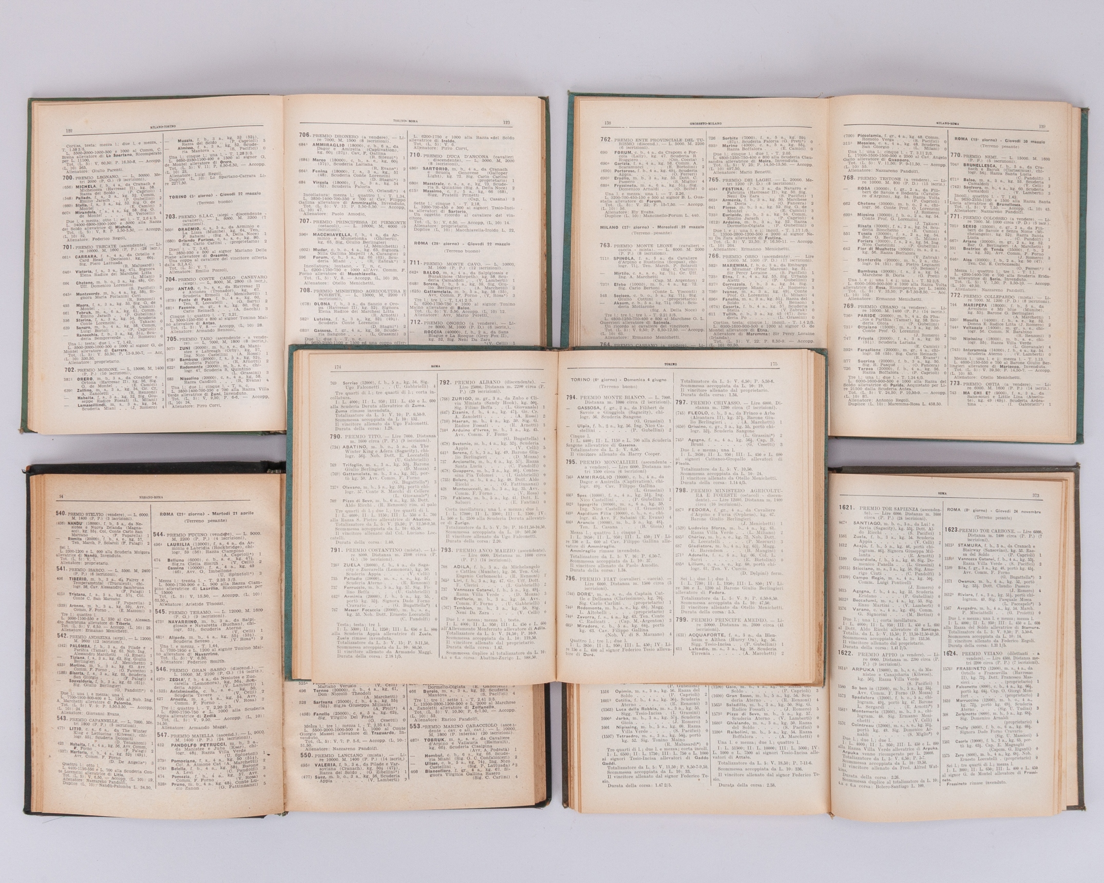 Bollettino Ufficiale del Jockey Club Italian, a run for 1881-82 to 1942-43 in hardback, then in softback 1946, 1946-47, 1947 in hardback, then softback again for 1947-48, 1948 & 1948-49, the run continues in hardback for 1949 to 1969, proceeded by a variety of hardbacks and softbacks for 1972 to 1982; Annuario Ufficiale Delle Corse As Ostacoli, for: 1893-94, 1896-97, 1900-01, 1901-02, 1903-04, 1904-05, 1905-06 & 1910-11 in softback, the leather bound a run from 1911-12 to to 1920-21 inclusive, a further run for 1922-23 to to 1931-32 inclusive, and a run again for 1933-34 to 1939-40 inclusive, and finally 1941-42 & 1942-43; Annuario di Carlandrea for 1891, 1893-94, 1896 & 1897-98; “Lo Sportivo” Risultati delle Corse al Galoppo Italia, hardbacks for 1938 to 1942 inclusive; Stud Book Italiano, 1880 vols 1 & 2, 1911-1920, 1921-24, 1925-29, 1930-33, 1934-37, plus softbacks for 1943, 1948, 1952 & 1956, hardbacks again for Vols. 18-22 inclusive, and softbacks for vols. 21-26 inclusive; Stalloni di Puro Sangue in Italia, vol 1 (1942), 1953, 1957 and two for 1961; Cavalli Di Puro Sangue Importati O Nati in Italia, 1889, 1896, 1900 & 1906-11; Allevamenti Scuderie e Stalloni D'Italia, 1968, 1969 and a run 1972-1975 inc., Elenco Generale Del Cavalli Stalloni p.s.i. e da Trotto, 1971, 1972 (two), 1973 (two), 1974, 1976, 1978 & 1979