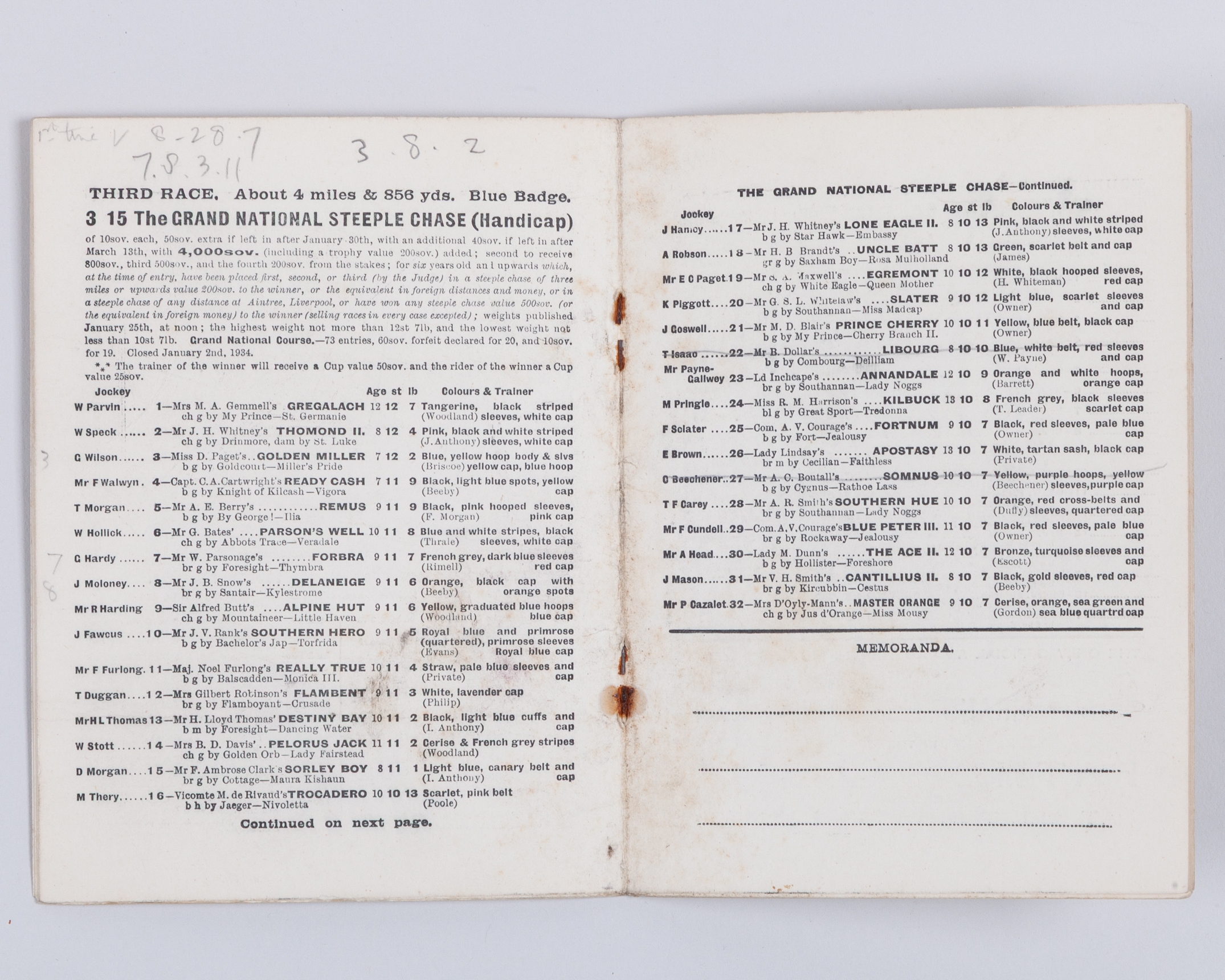 the first won by the Irish steeplechaser Troytown, 26th March 1920; the second by the great Golden Miller 23rd March 1934 who was achieving a unique double having already won the Cheltenham Gold Cup that season