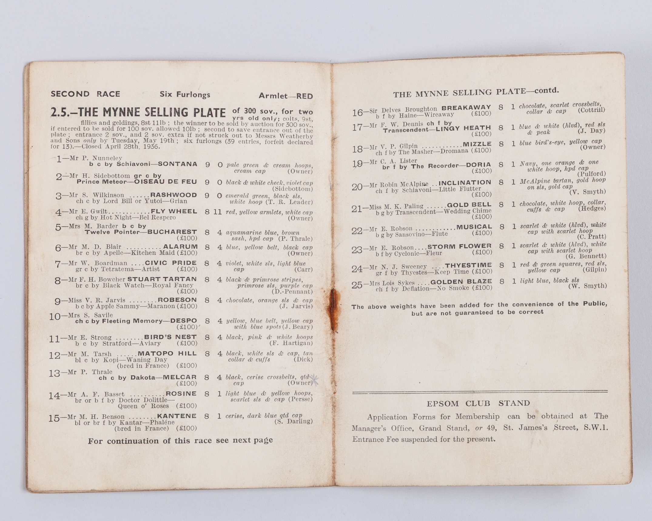 Epsom Derby racecards for 1930 and 1936 both won by H H Aga Khan racehorses,