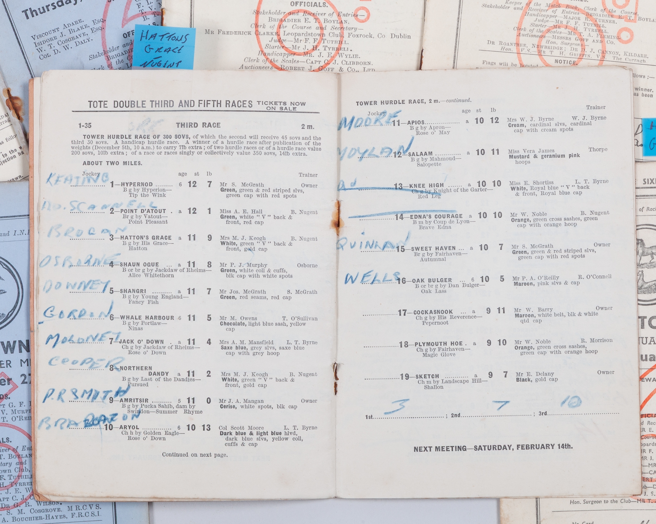 A group of 8 Irish racecards all featuring the triple-Champion Hurdle winner Hatton's Grace,