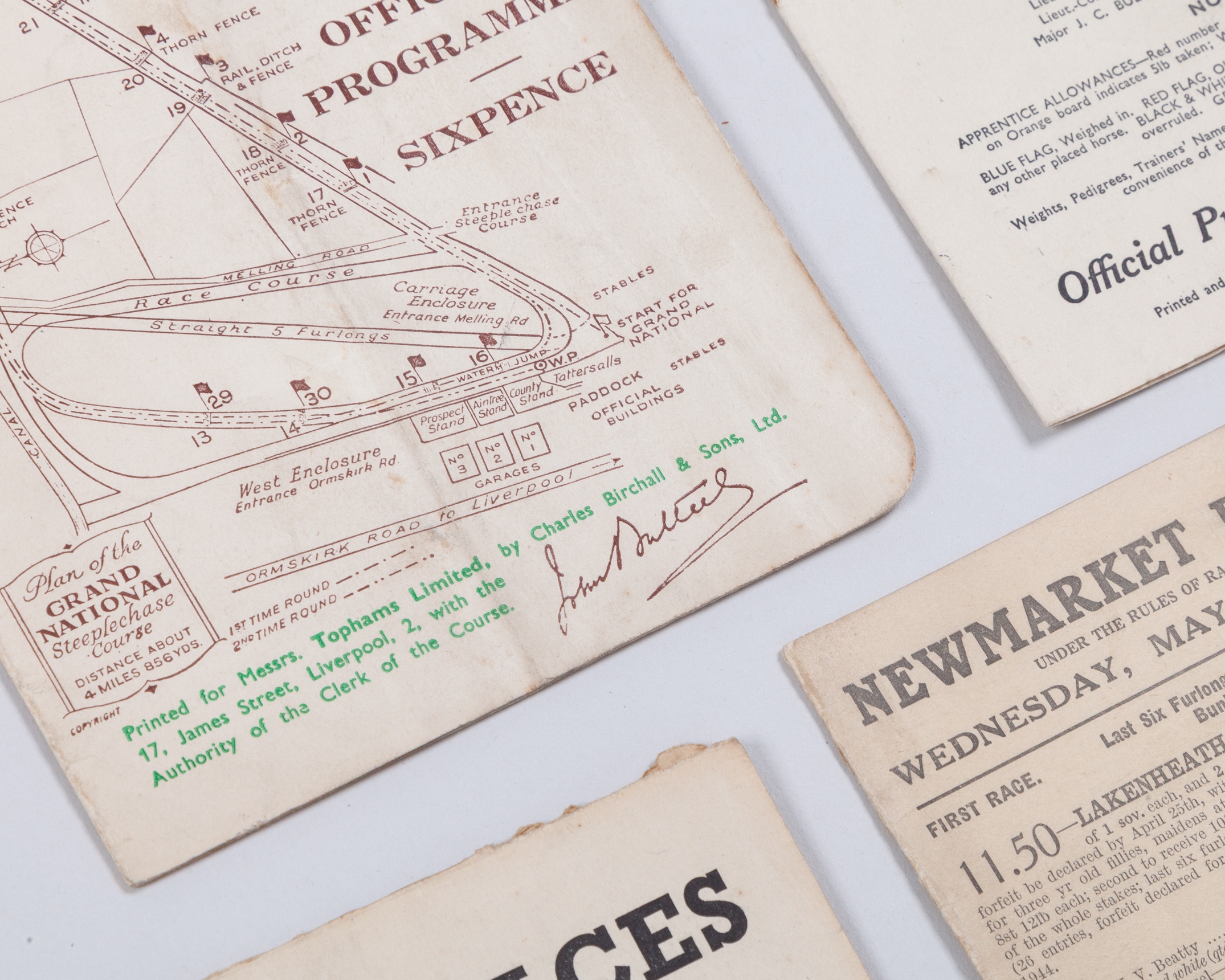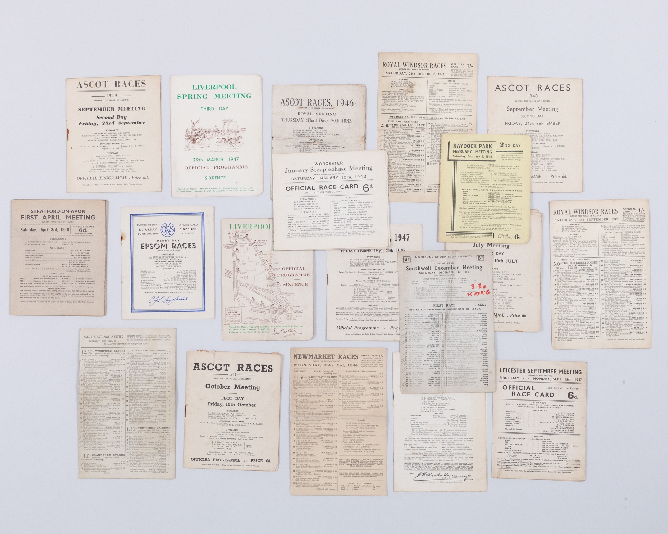 Twenty 1940s racecards including The Derby, Grand National and Royal Ascot