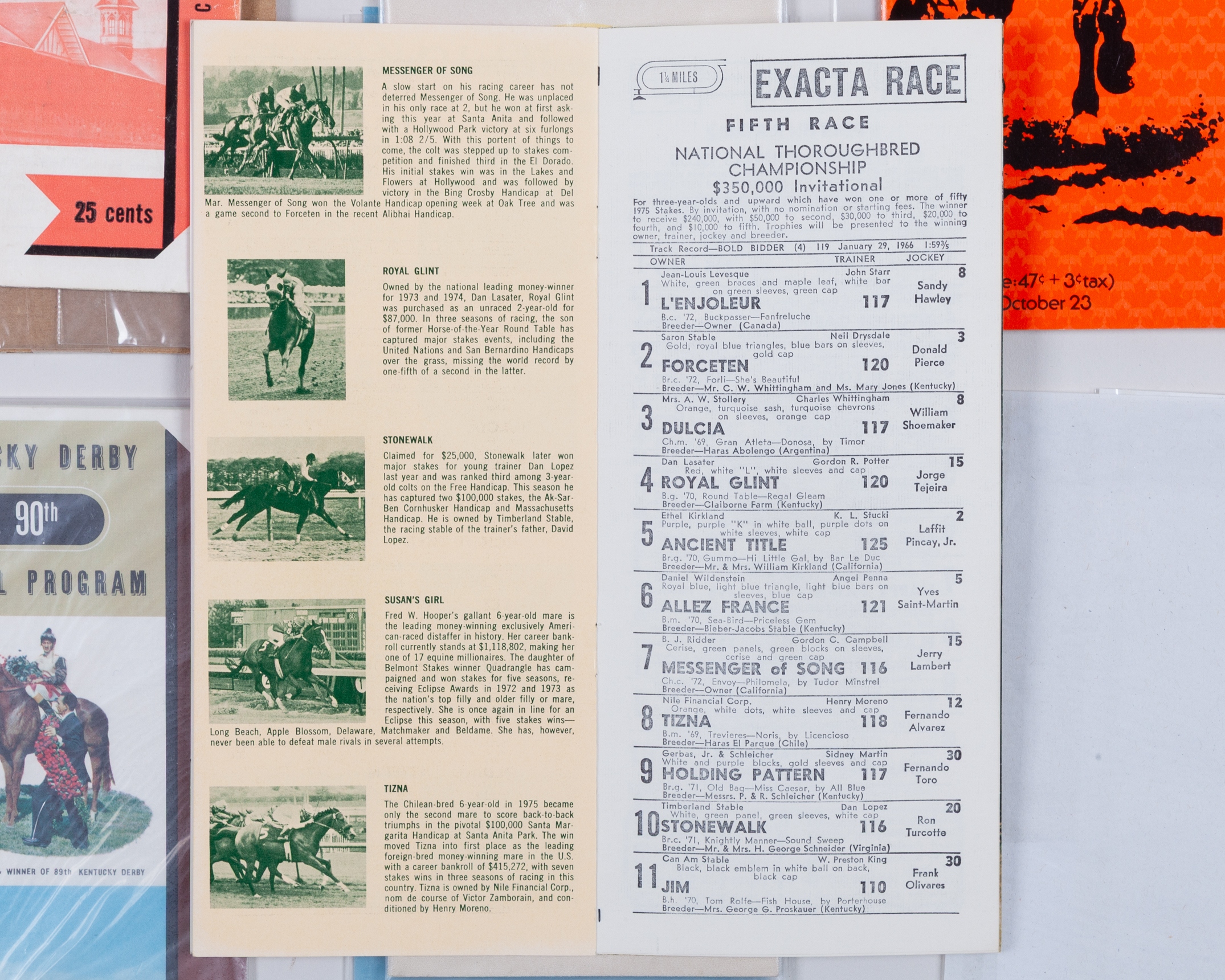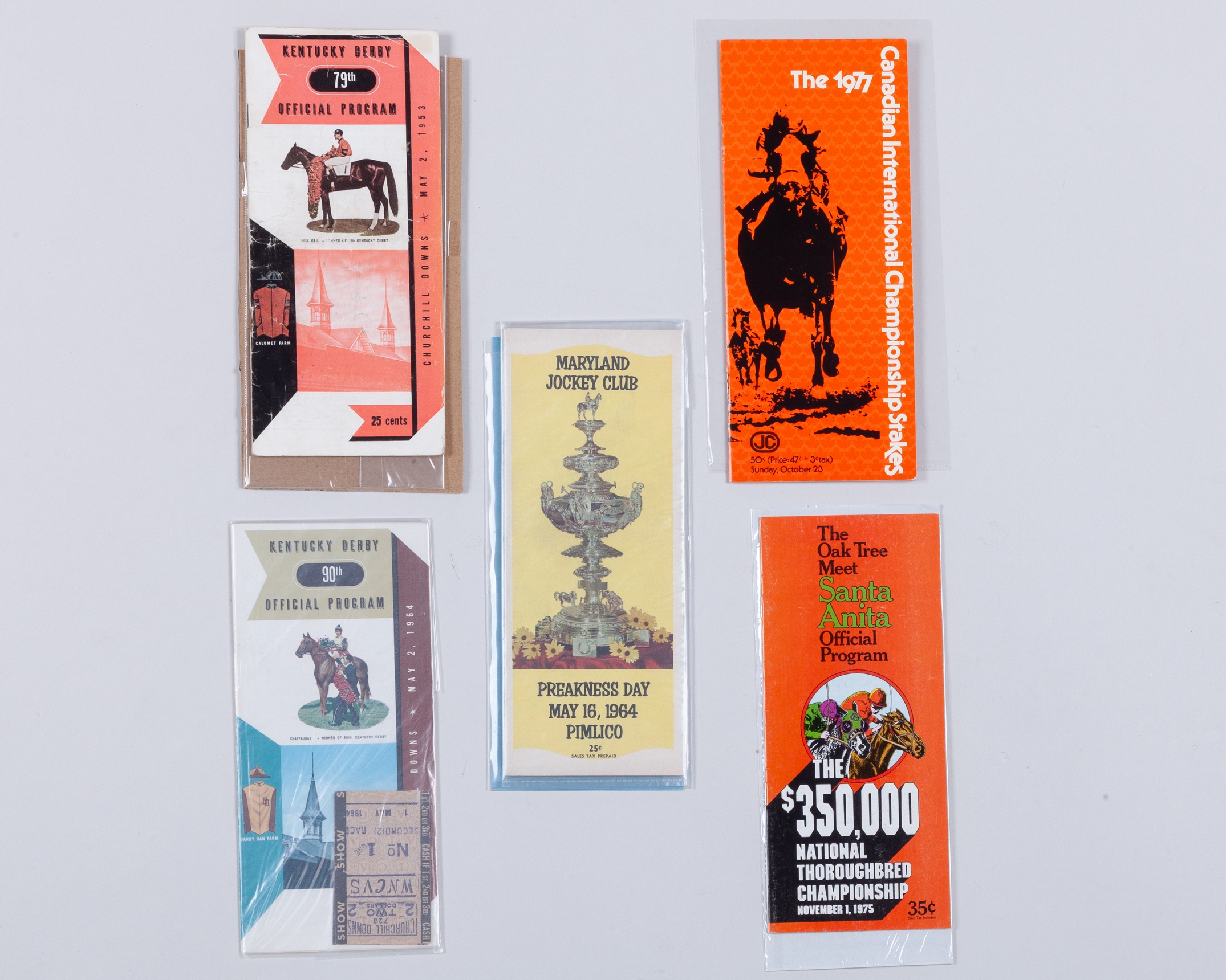 two featuring Northern Dancer, the 1964 Kentucky Derby (with ticket) and Preakness Stakes; also the 1953 Kentucky Derby (Dark Star beating Native Dancer), The National Thoroughbred Championship at Santa Anita 1975 (last race for Allez France) and the 1977 Canadian International Championship Stakes (won by Exceller)