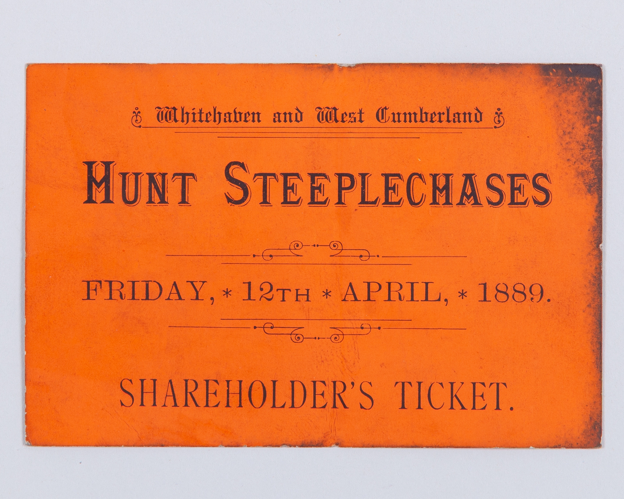 Shareholder's Ticket for Whitehaven and West Cumberland Hunt Steeplechases 1889