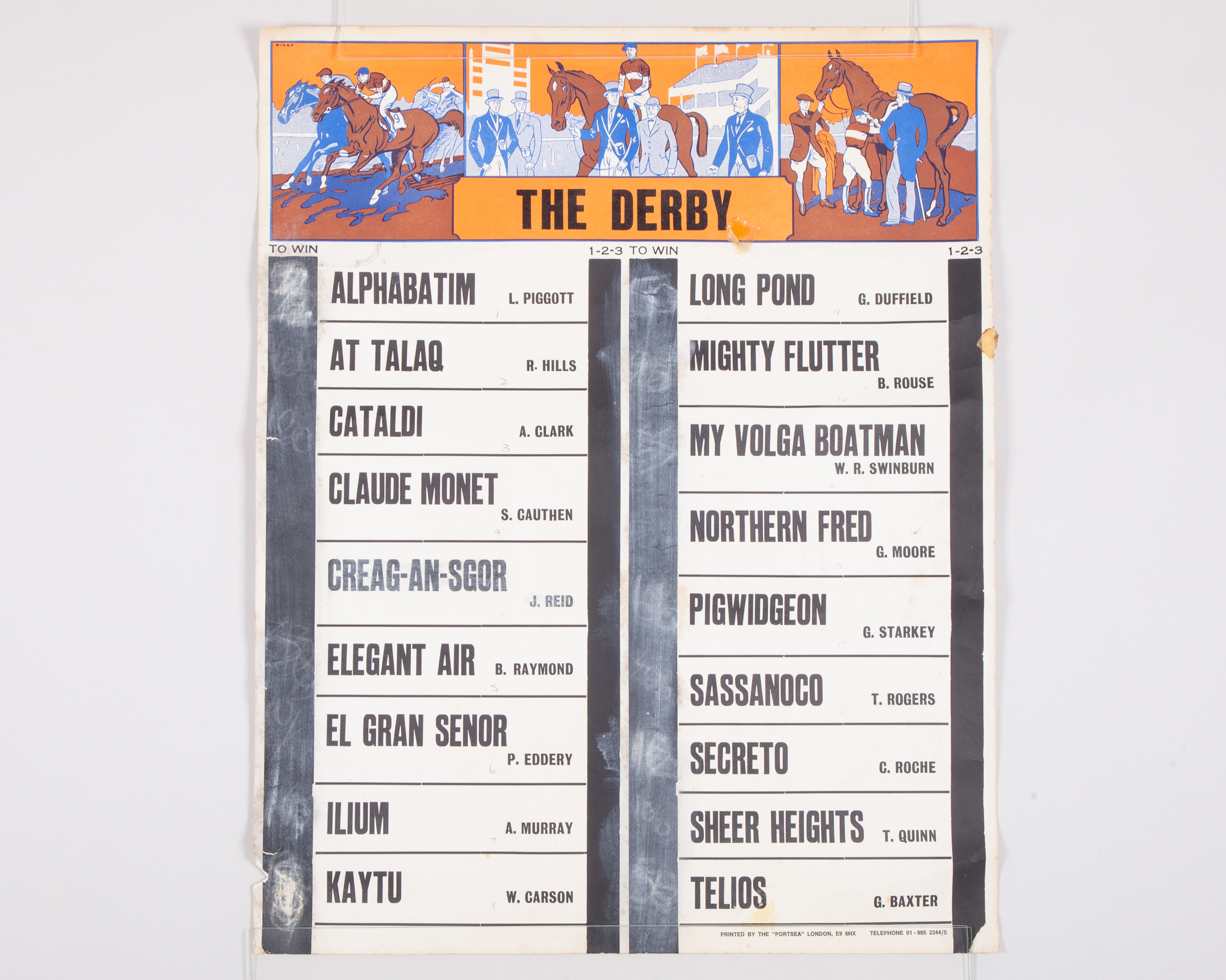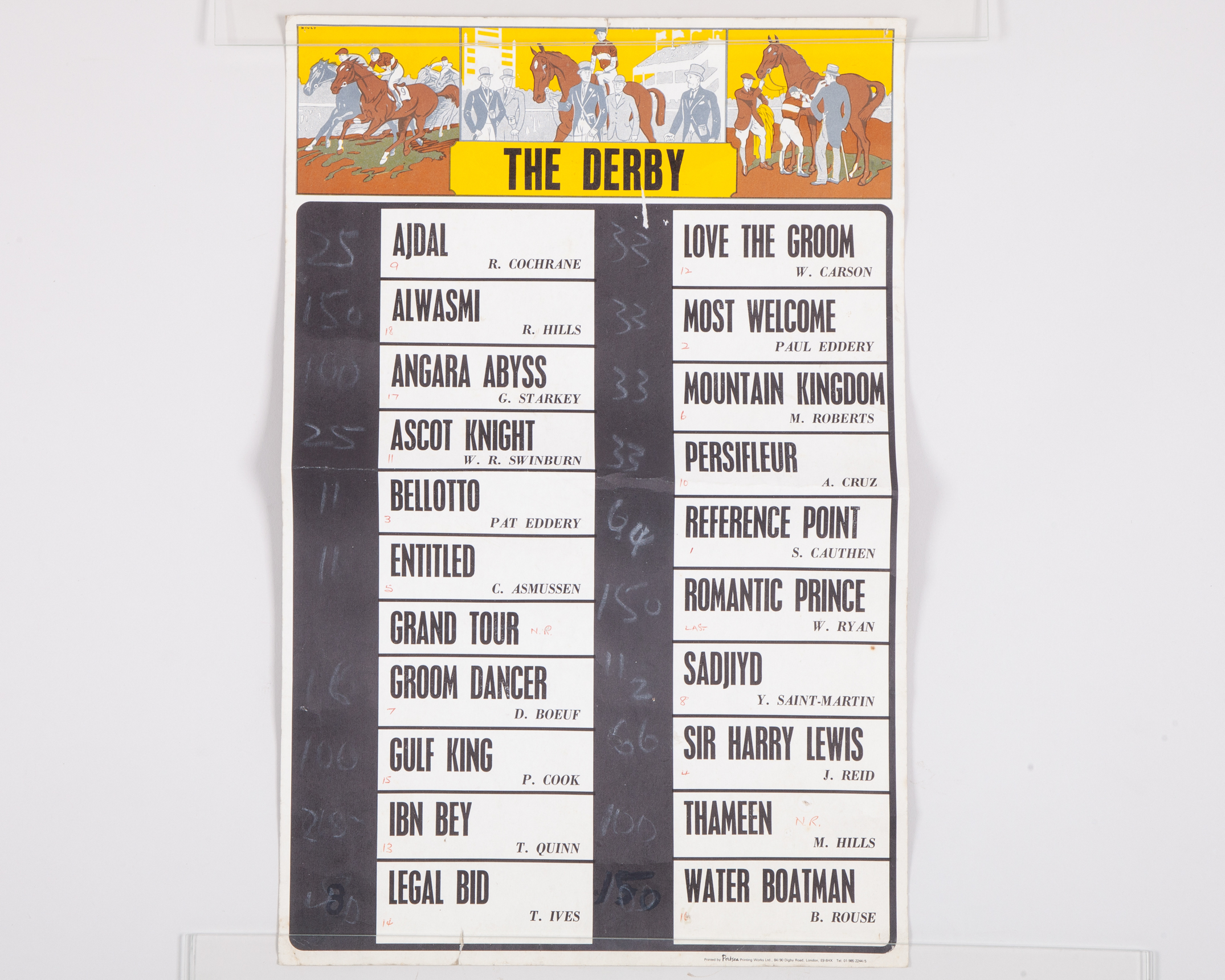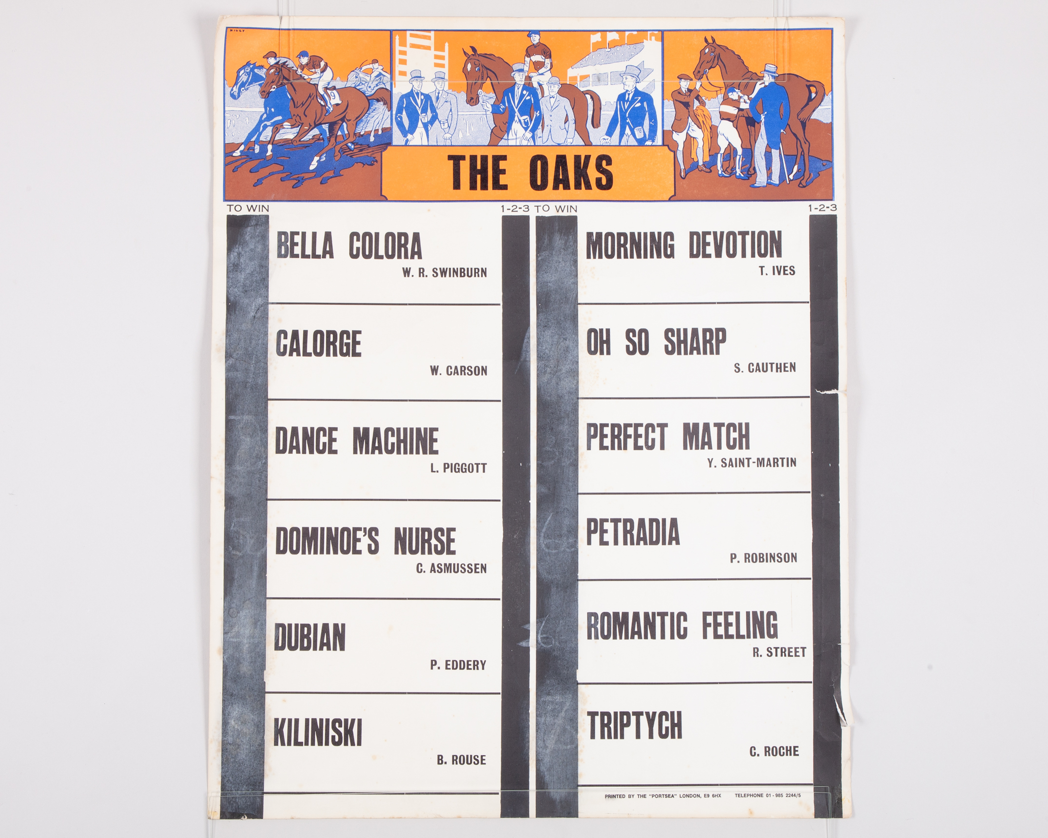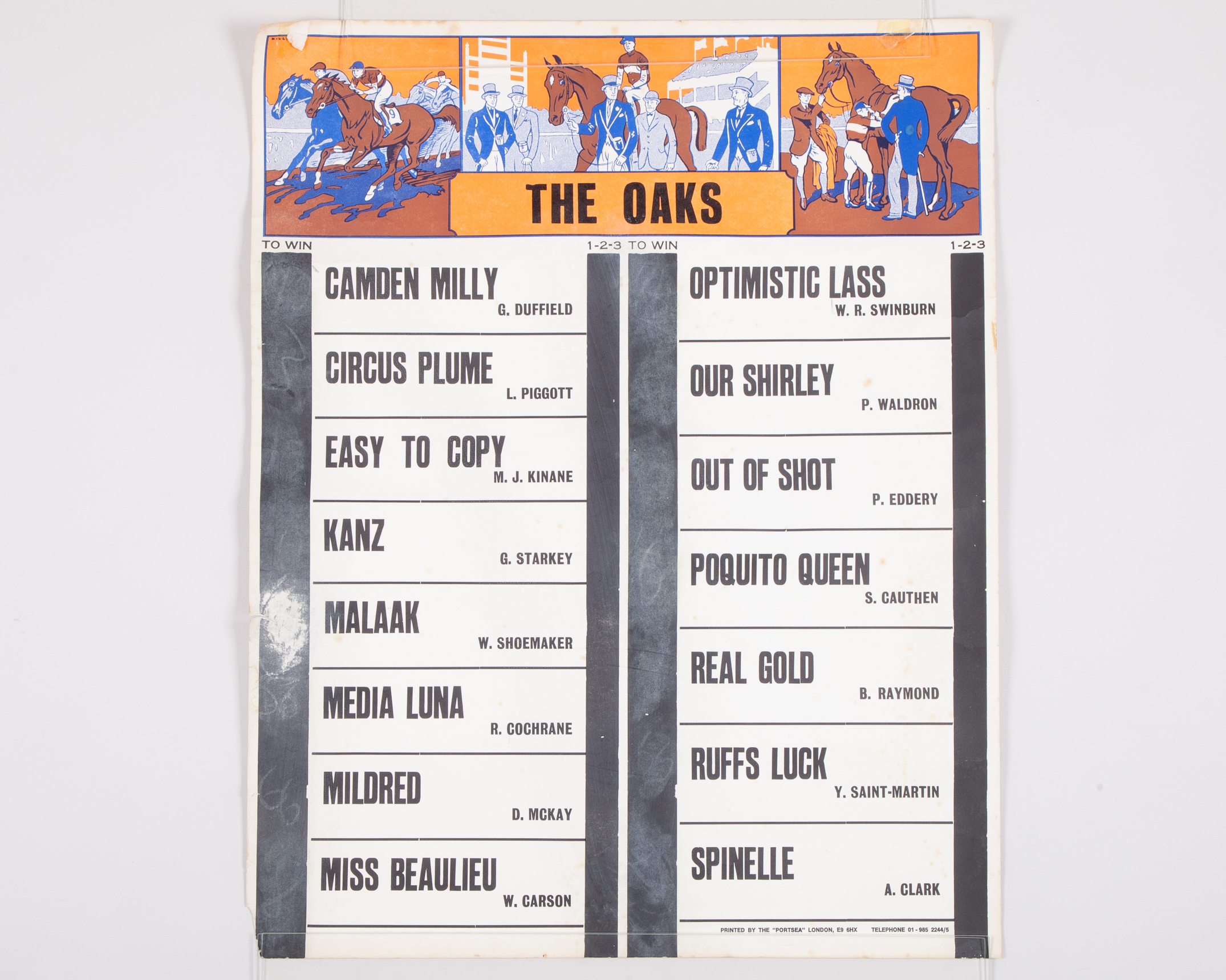 Four bookie board sheets for The Derby and The Oaks at Epsom